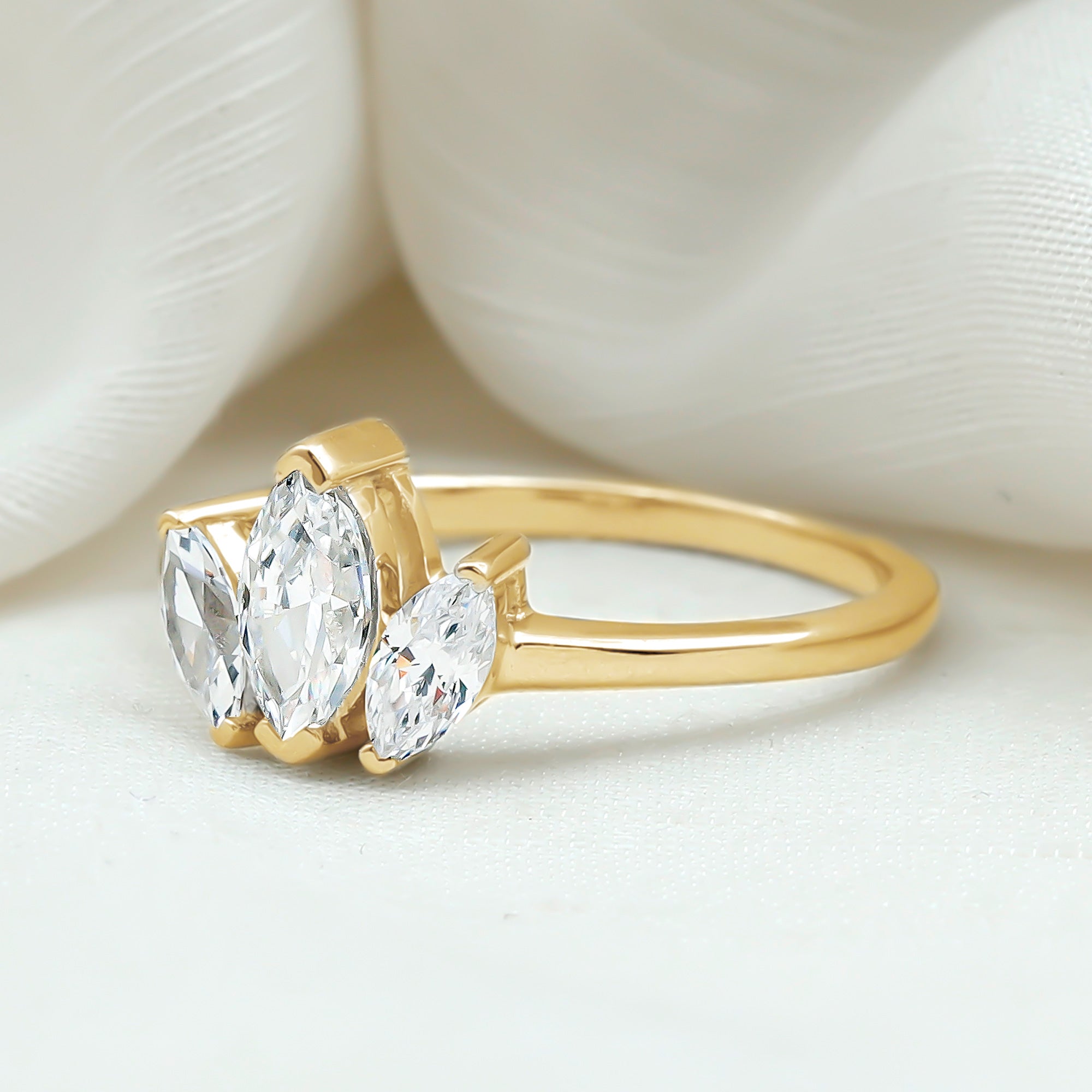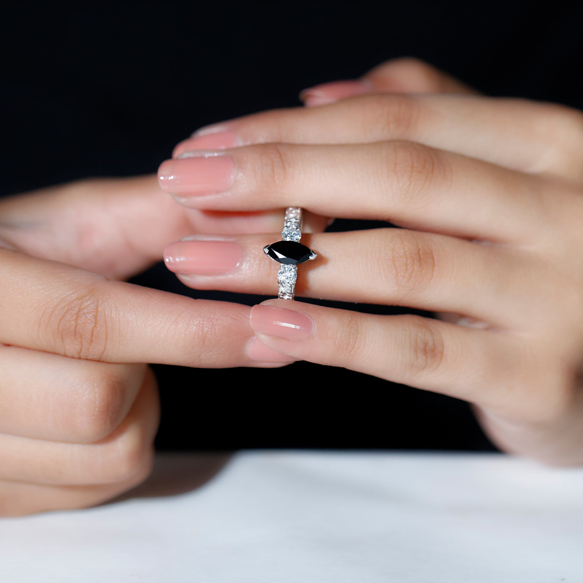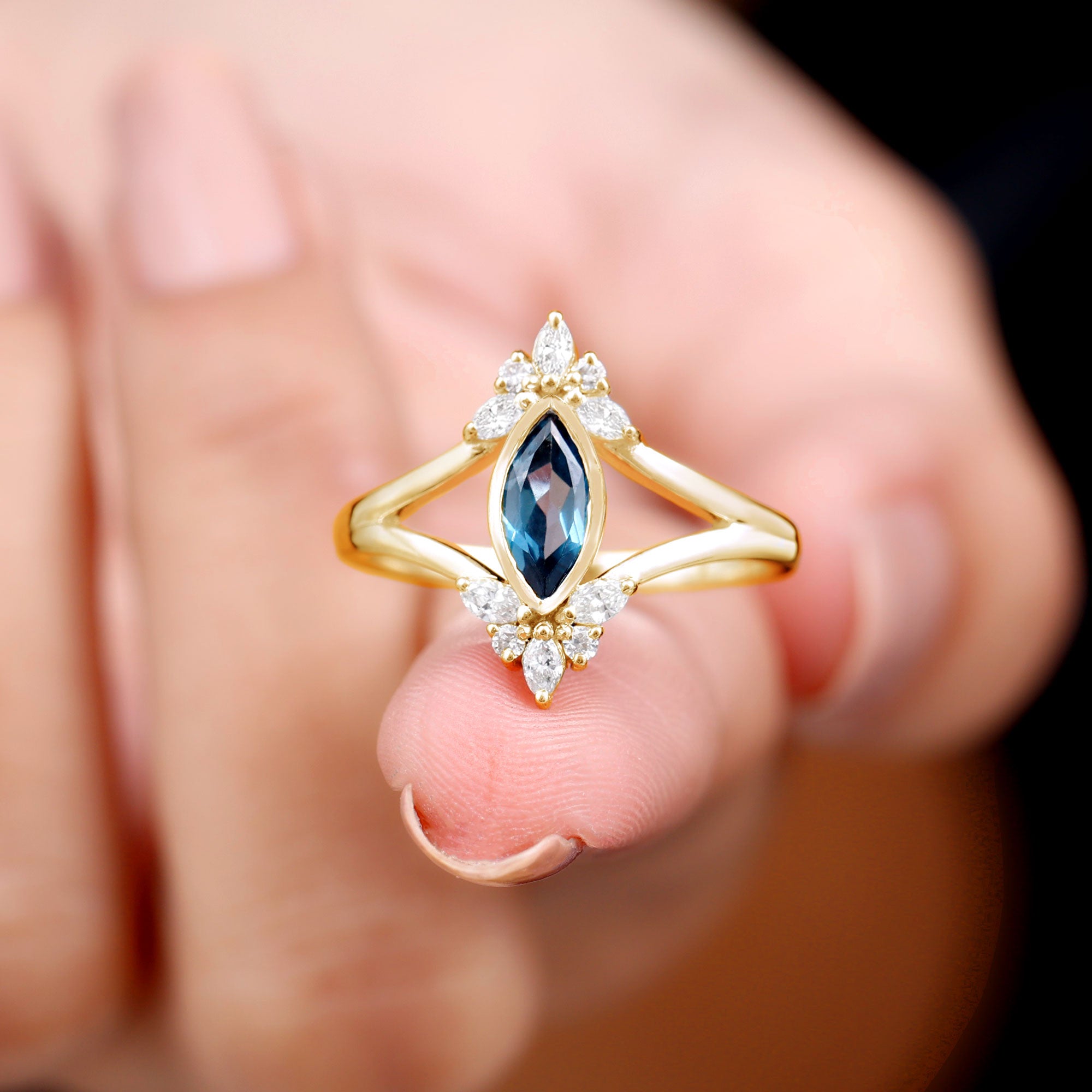 Marquise gemstone rings offer an elongated look to the fingers, with their slimming and lengthening effect. Whether you opt it for a shorter or big finger, they complement all hand types beautifully.