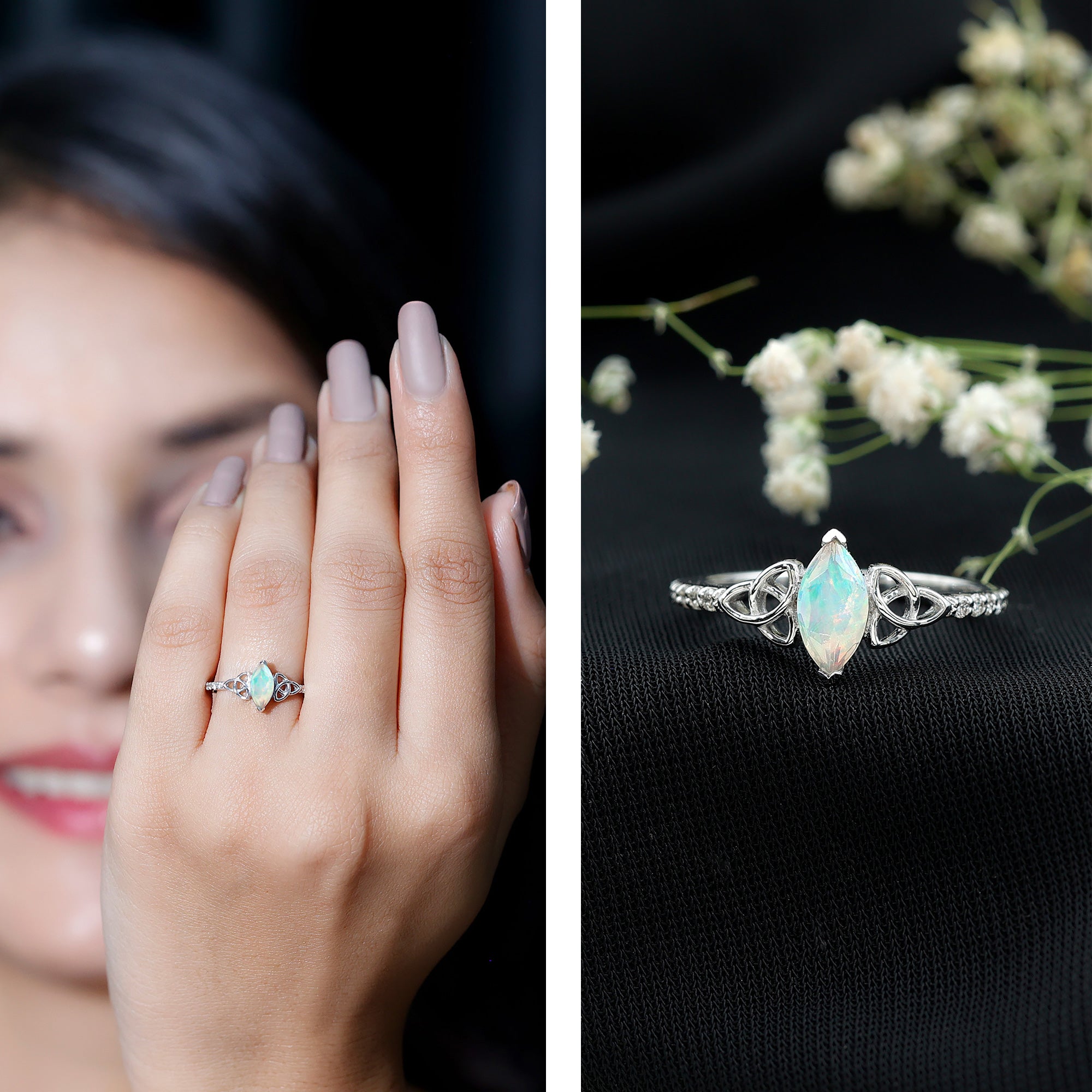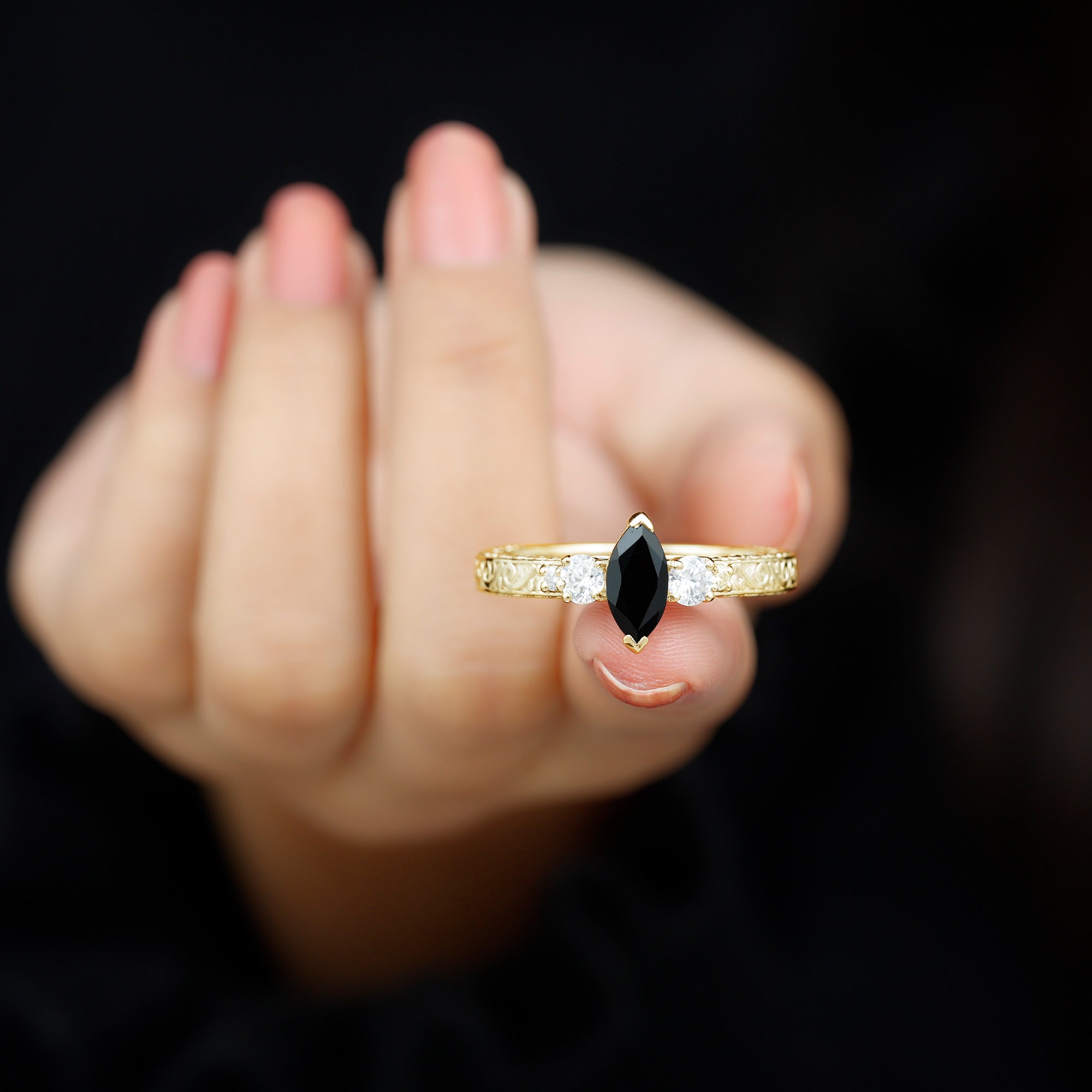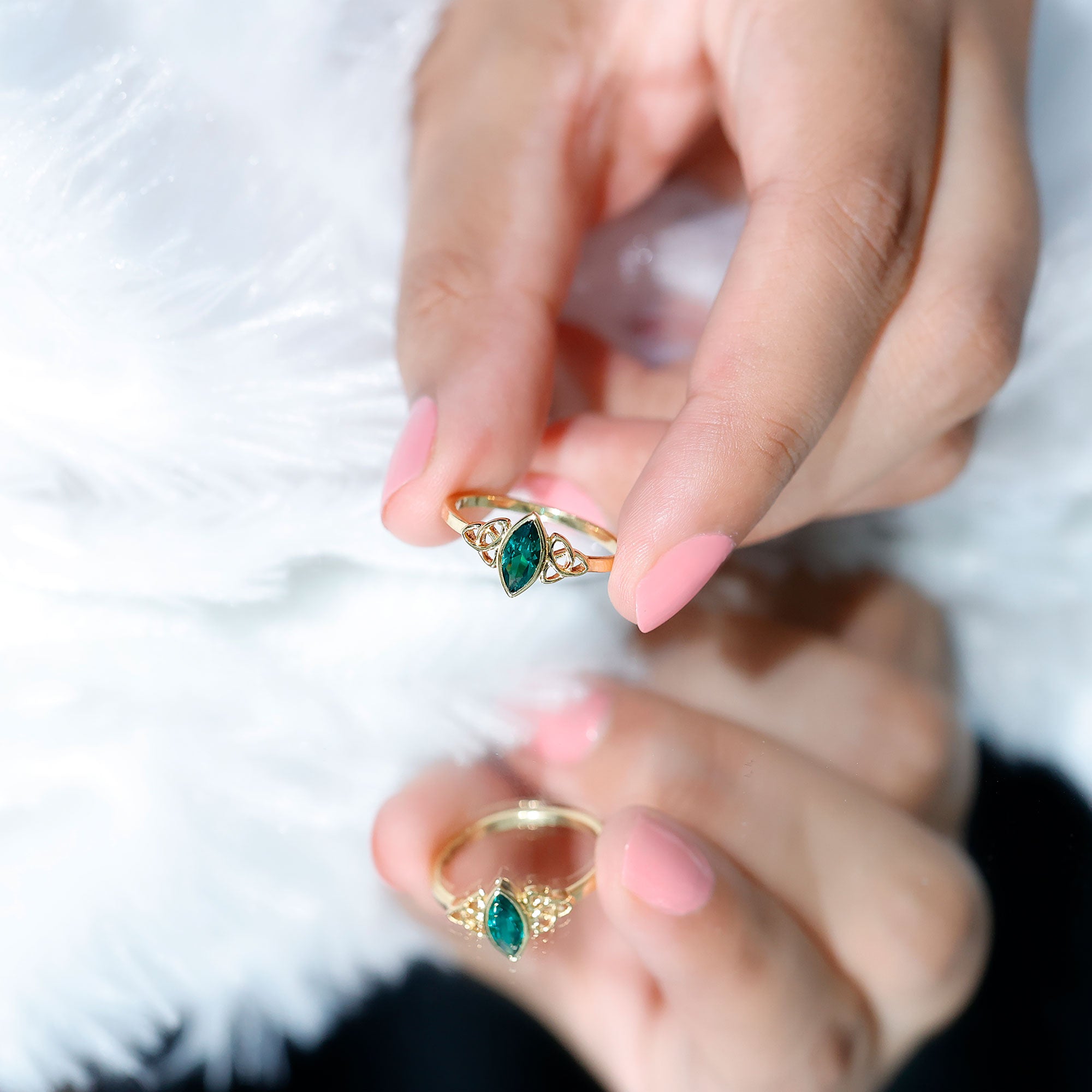 Marquise gemstone rings offer an elongated look to the fingers, with their slimming and lengthening effect. Whether you opt it for a shorter or big finger, they complement all hand types beautifully.