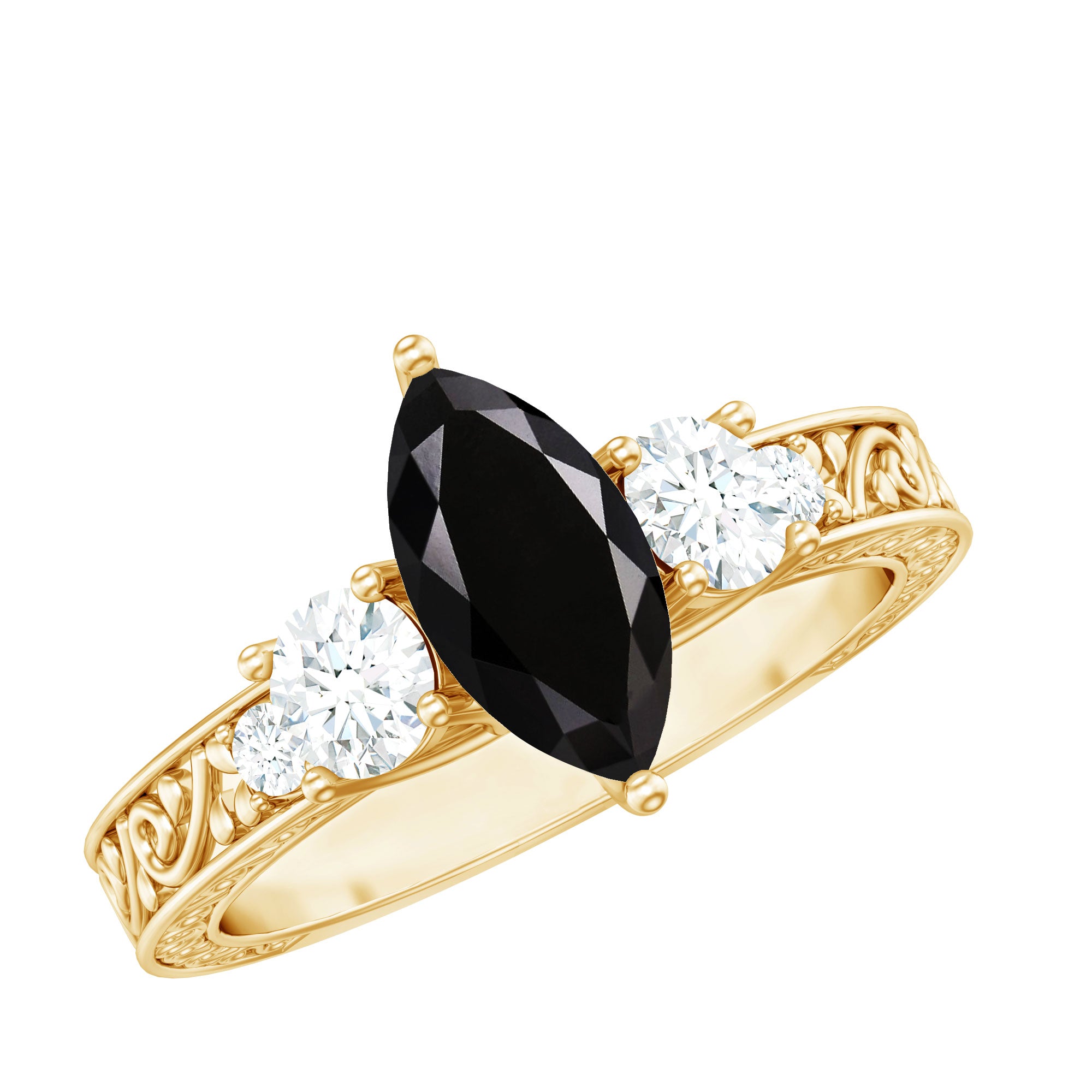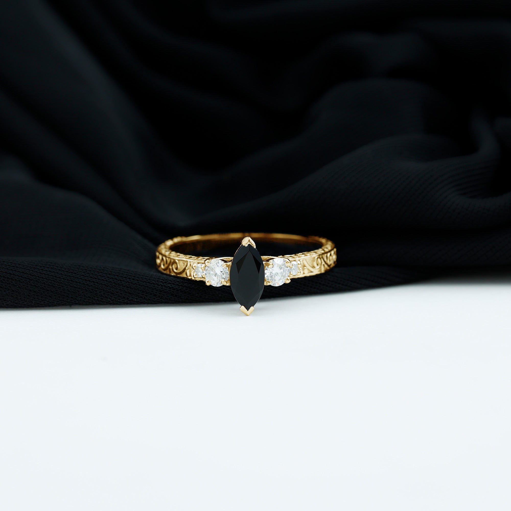 Elongated and elegant shape of the marquise gemstone makes this ring a choice for those who look for alternatives in traditional shapes.