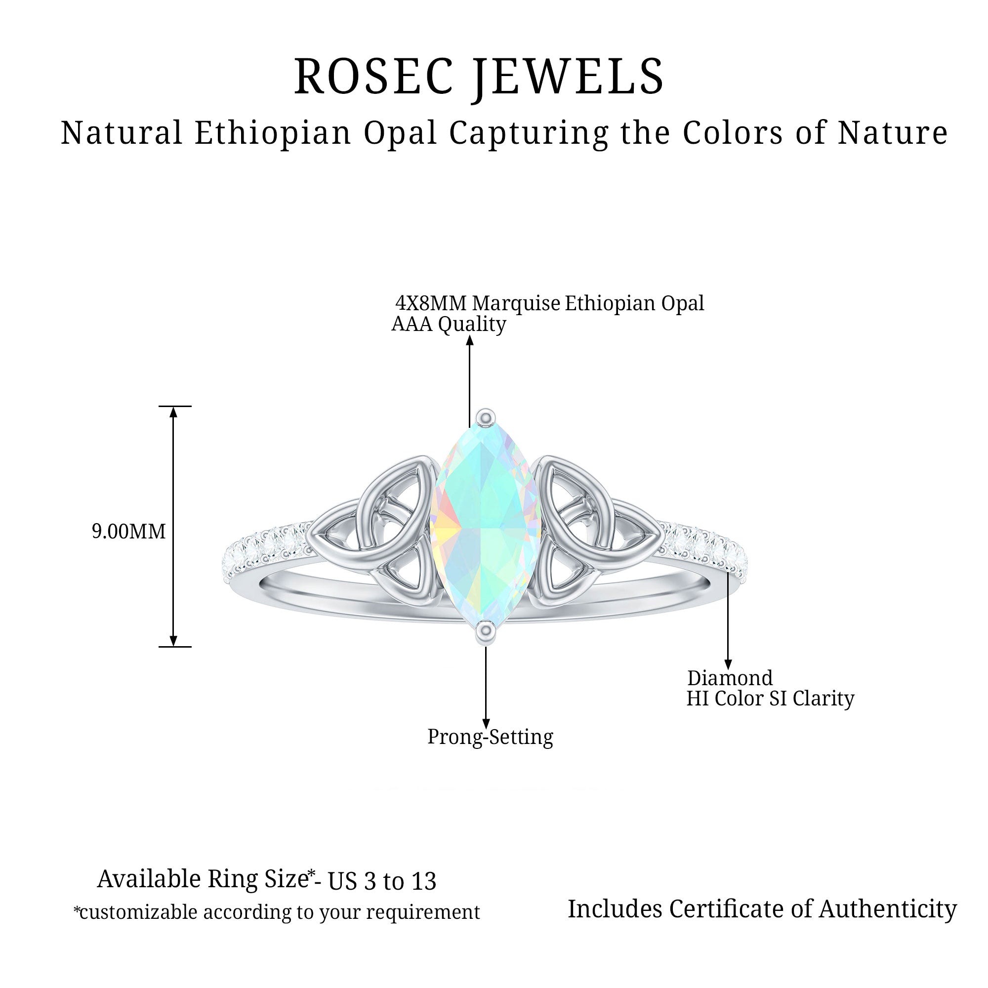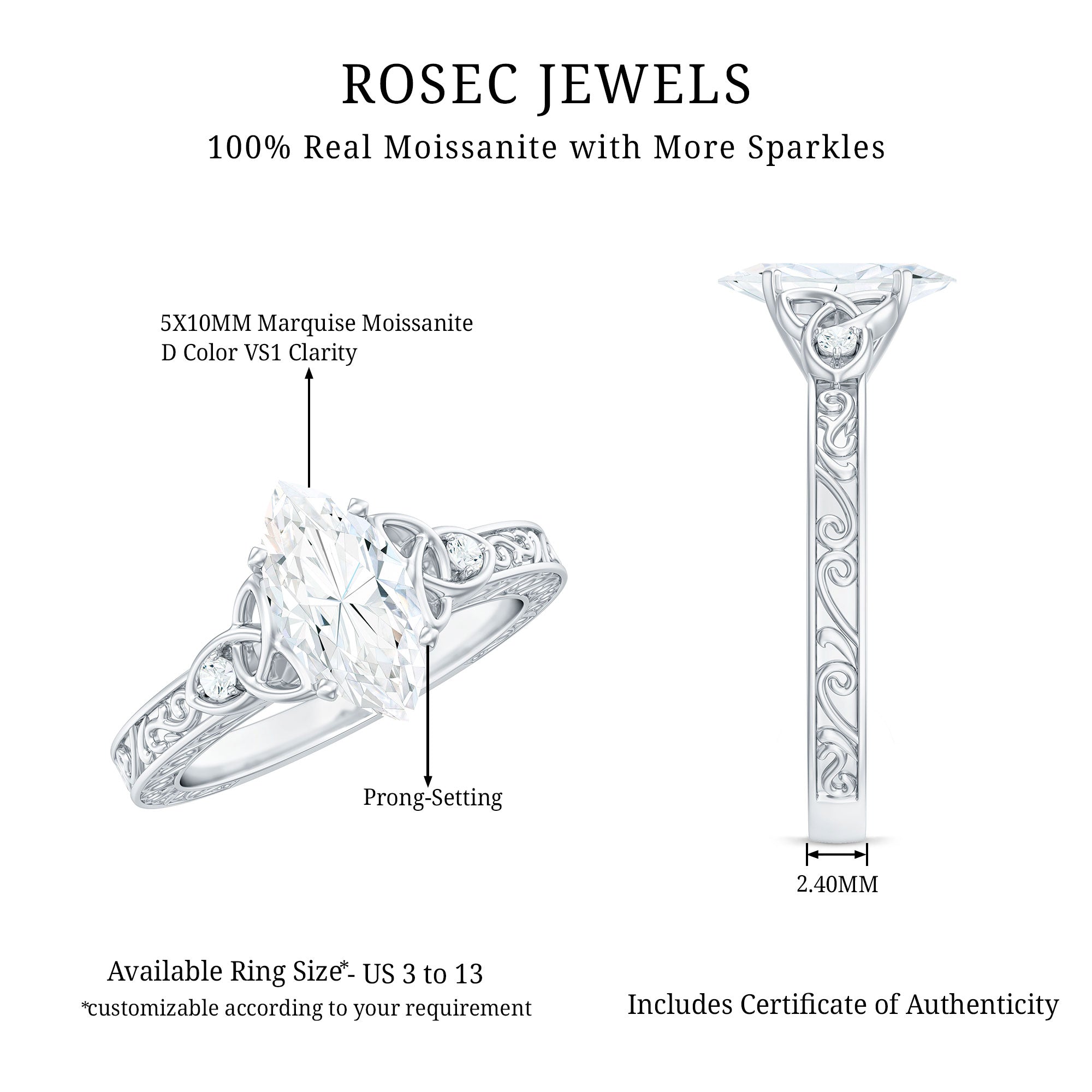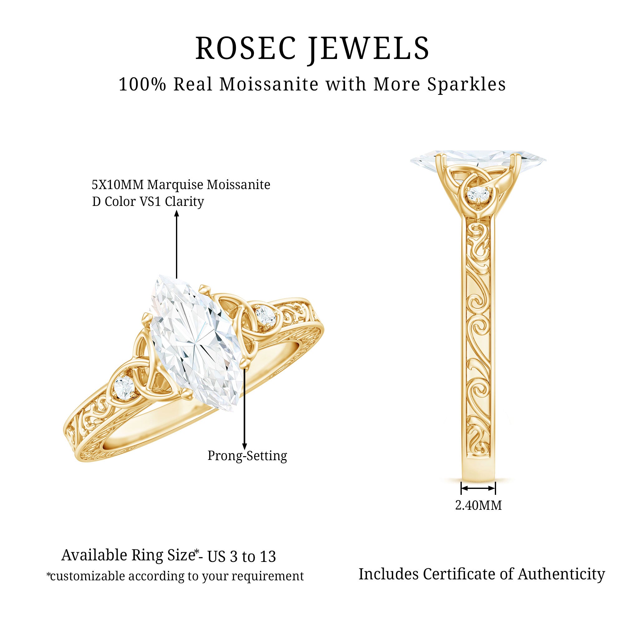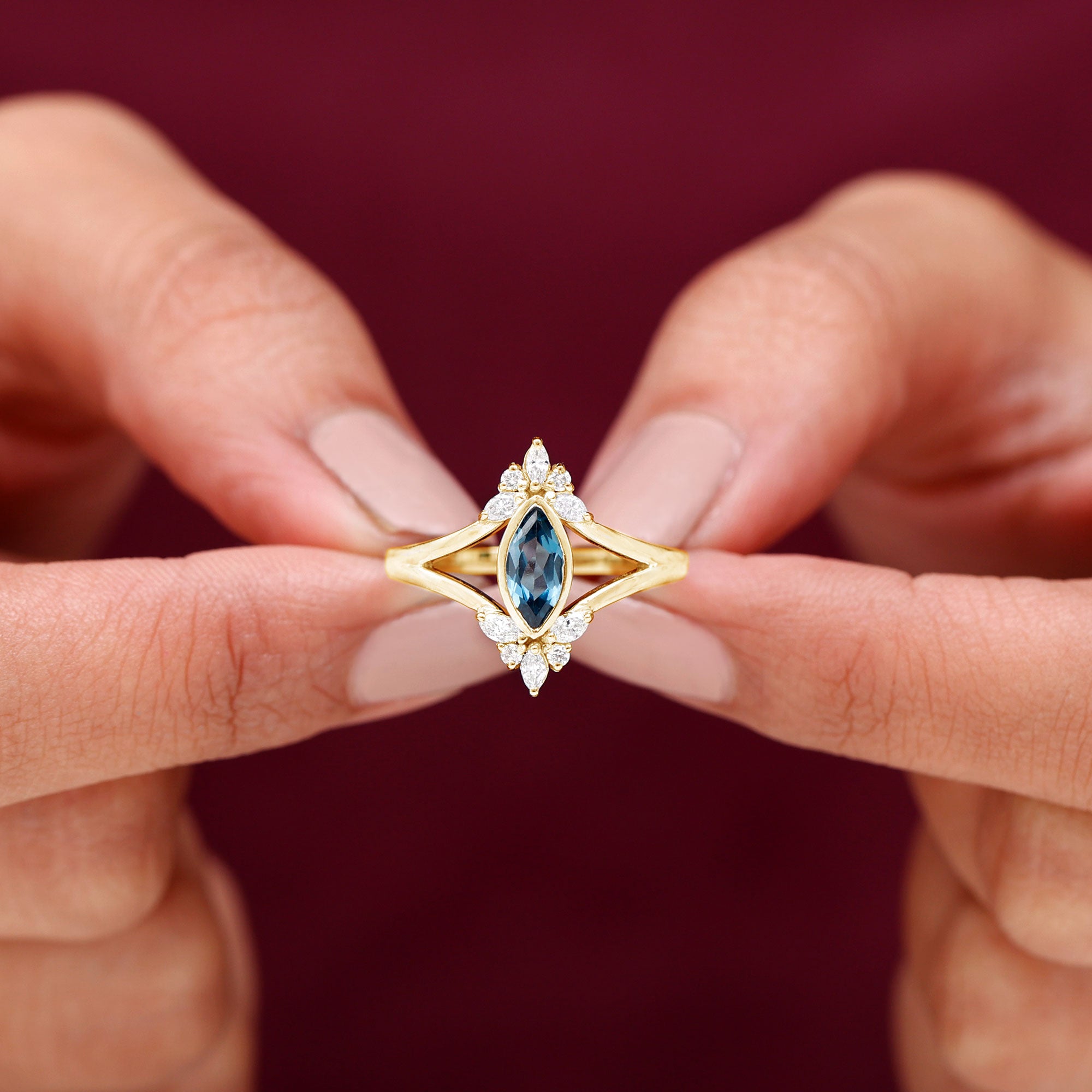 Like every other gemstone engagement ring, 4C’s (Cut, clarity, carat weight and color) should be evaluated before buying any marquise gemstone engagement ring.