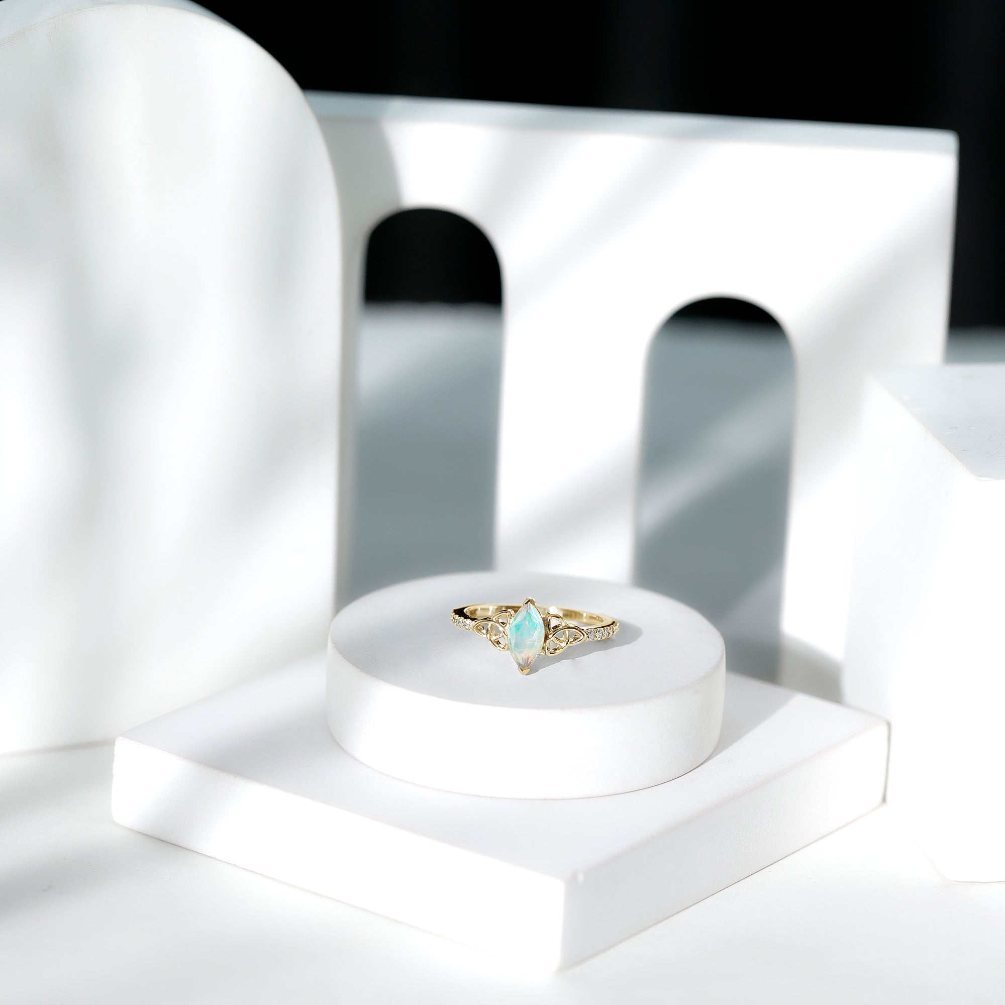 Most of the marquise cut gemstones exhibit this effect, showing a dark shadow across the width of the gemstone in the center of the table. Gemstone appears darker due to this effect. Opt for a high quality marquise cut diamond to minimize its effect in your engagement rings.