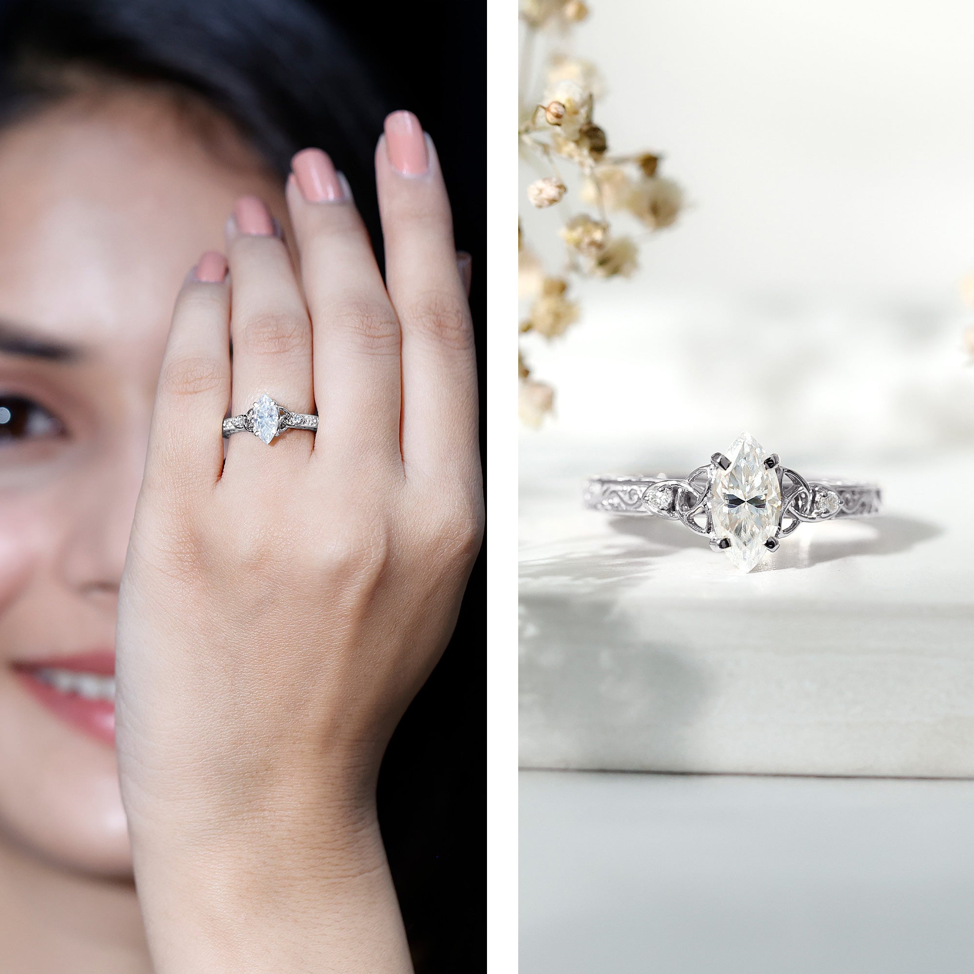 Which ring styles can be considered in marquise engagement rings?