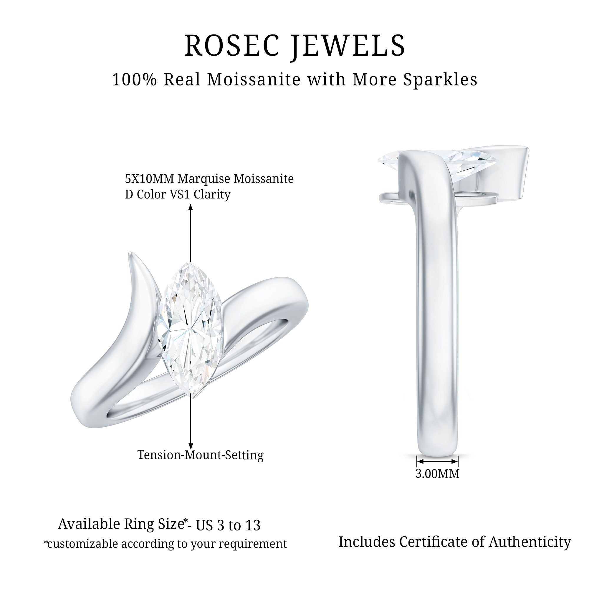 Keep a check on your finger size to ensure a perfect, comfortable fit for your ring. We at Rosec Jewels offer free ring sizer to make the process easier.