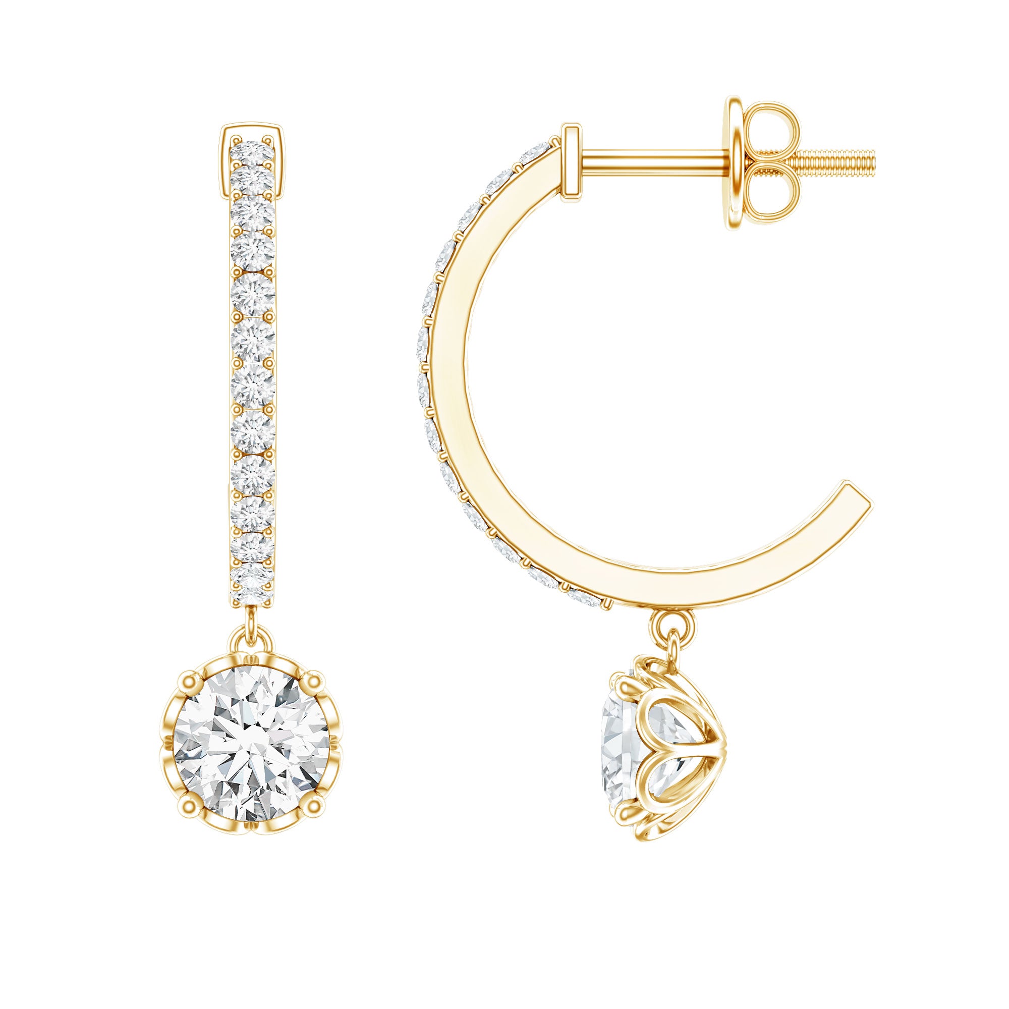 Moissanite Dangle Earrings:- Graced by shiny moissanite stone, these dangle earrings attract attention with their unique beauty. This style of earrings for women gracefully hangs below the earlobe. These are popular choices for special occasions that match any outfit. The dangle earrings feature a winging or swaying movement while drop earrings typically remain in their place, moving only with the wearer's movements.