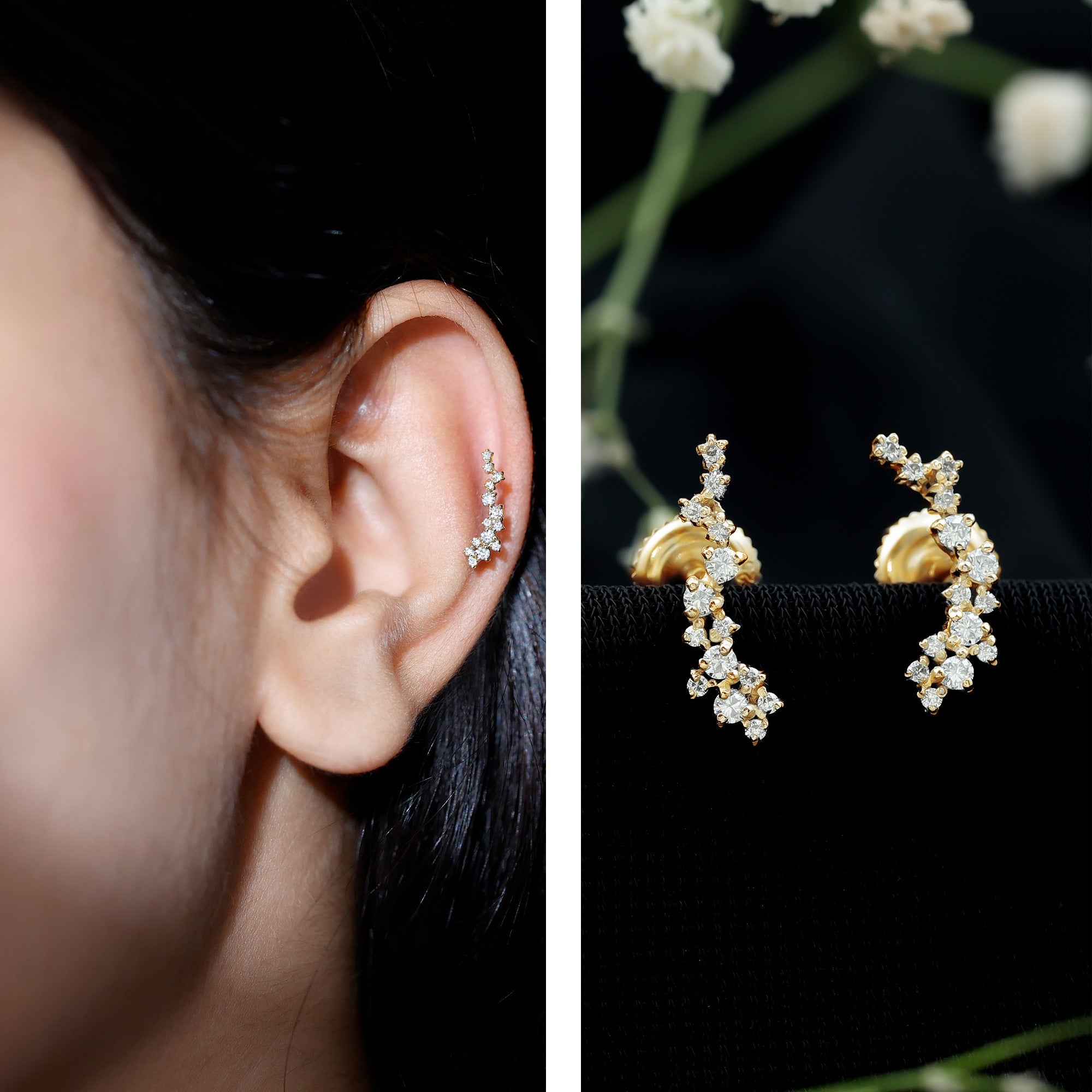 These dazzling earrings match the beauty of diamonds, yet they are an affordable piece of jewelry for those who seek budget-friendly options. Our wide collection of women's moissanite stud or hoop earrings is preciously handcrafted in a wide variety of designs that often bring out who you are with their unmatched beauty. From classic stuff to nature-inspired beauty, simple solitaire, and shimmery halo, you'll surely find something unique, catering to your budget and personality.