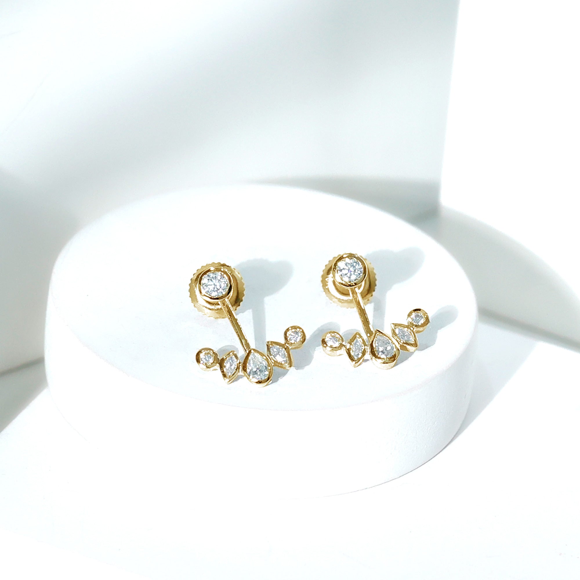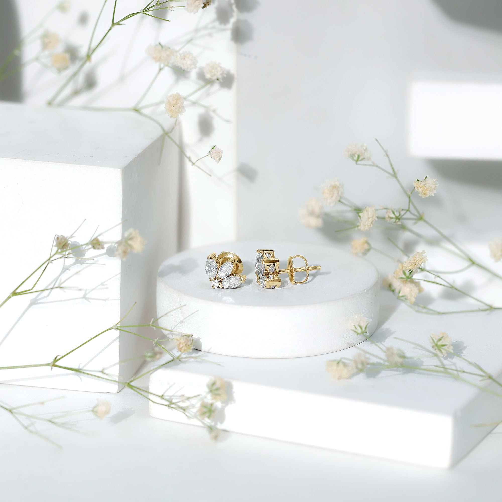 These stud earrings are available in various kind of shapes from simple round cuts to enchanting emerald, princess, or cushion cuts, they suit different personalities and tastes. For a contemporary flair, you can also go for the oval, pear, or marquise stud earrings, which effortlessly uplift your style. -