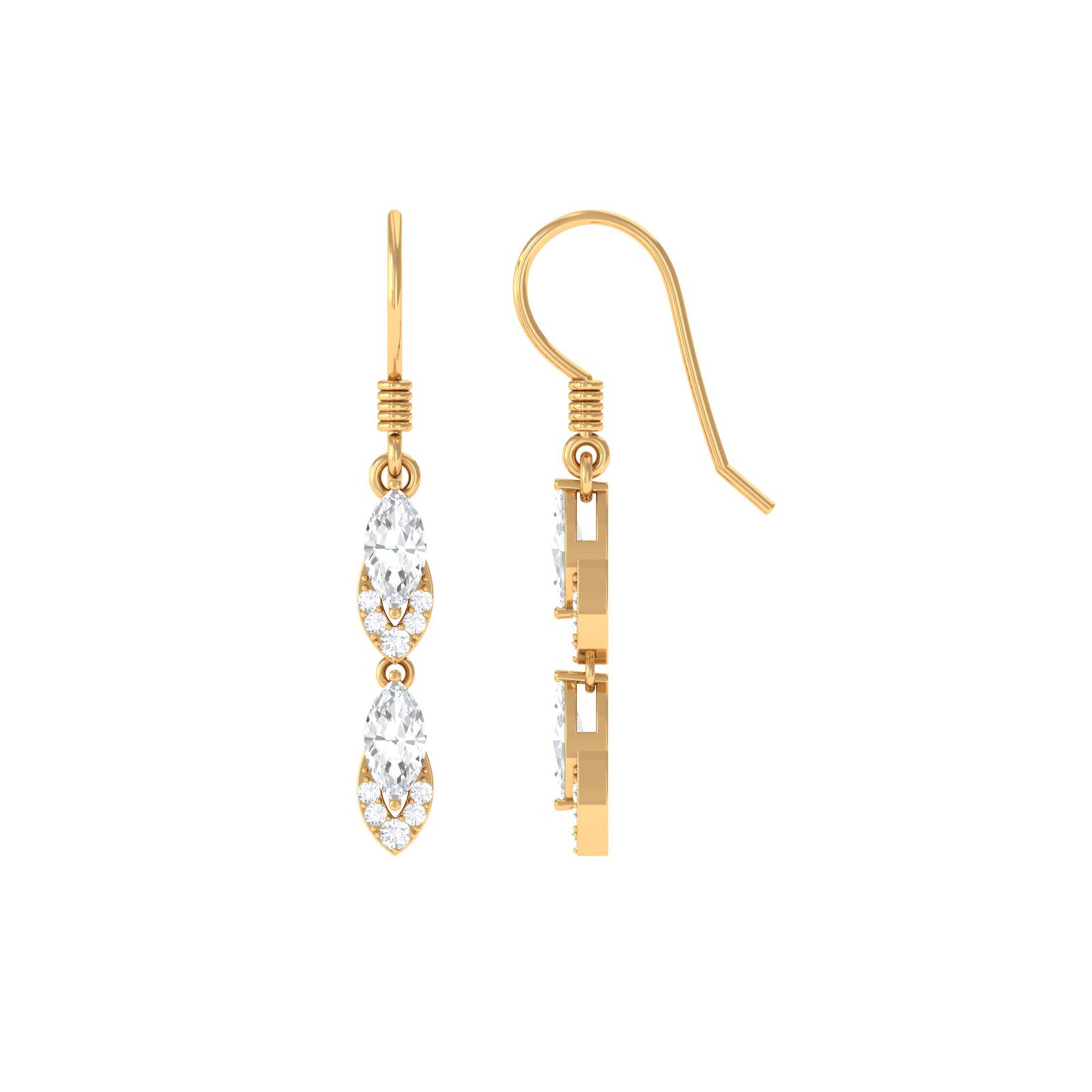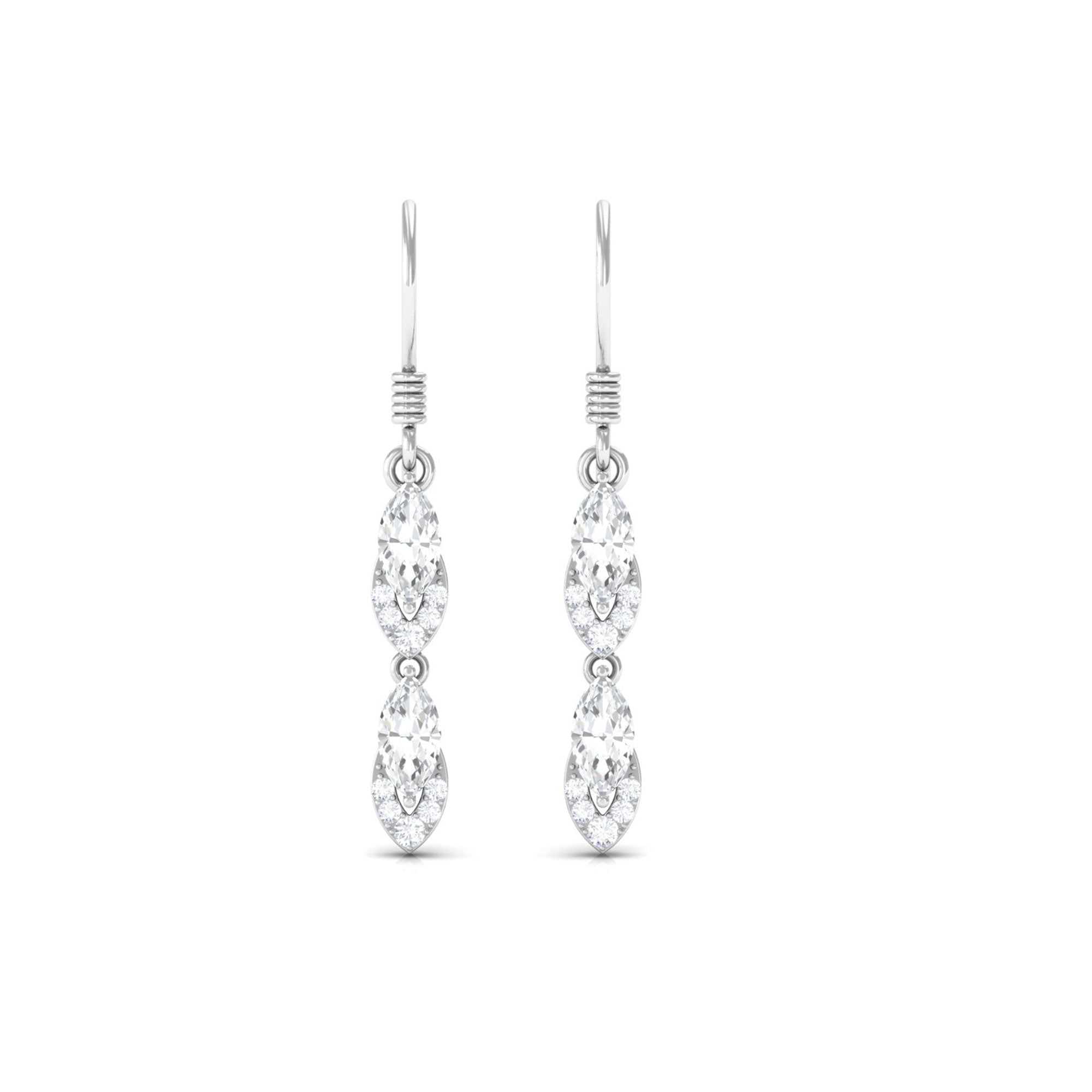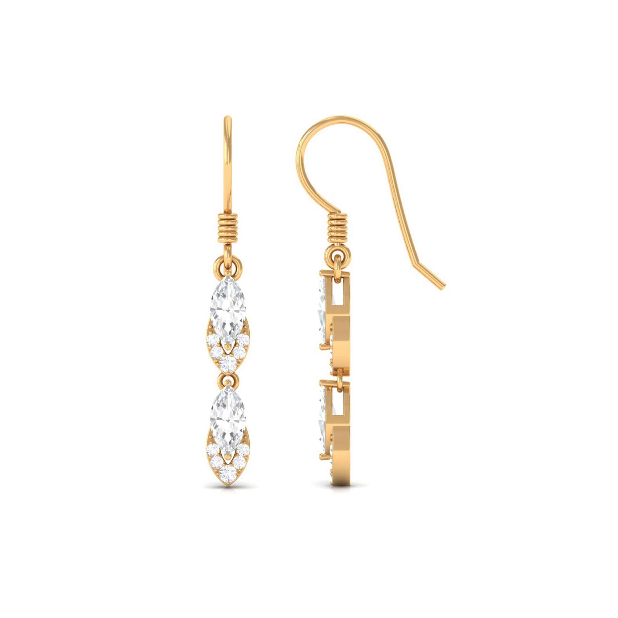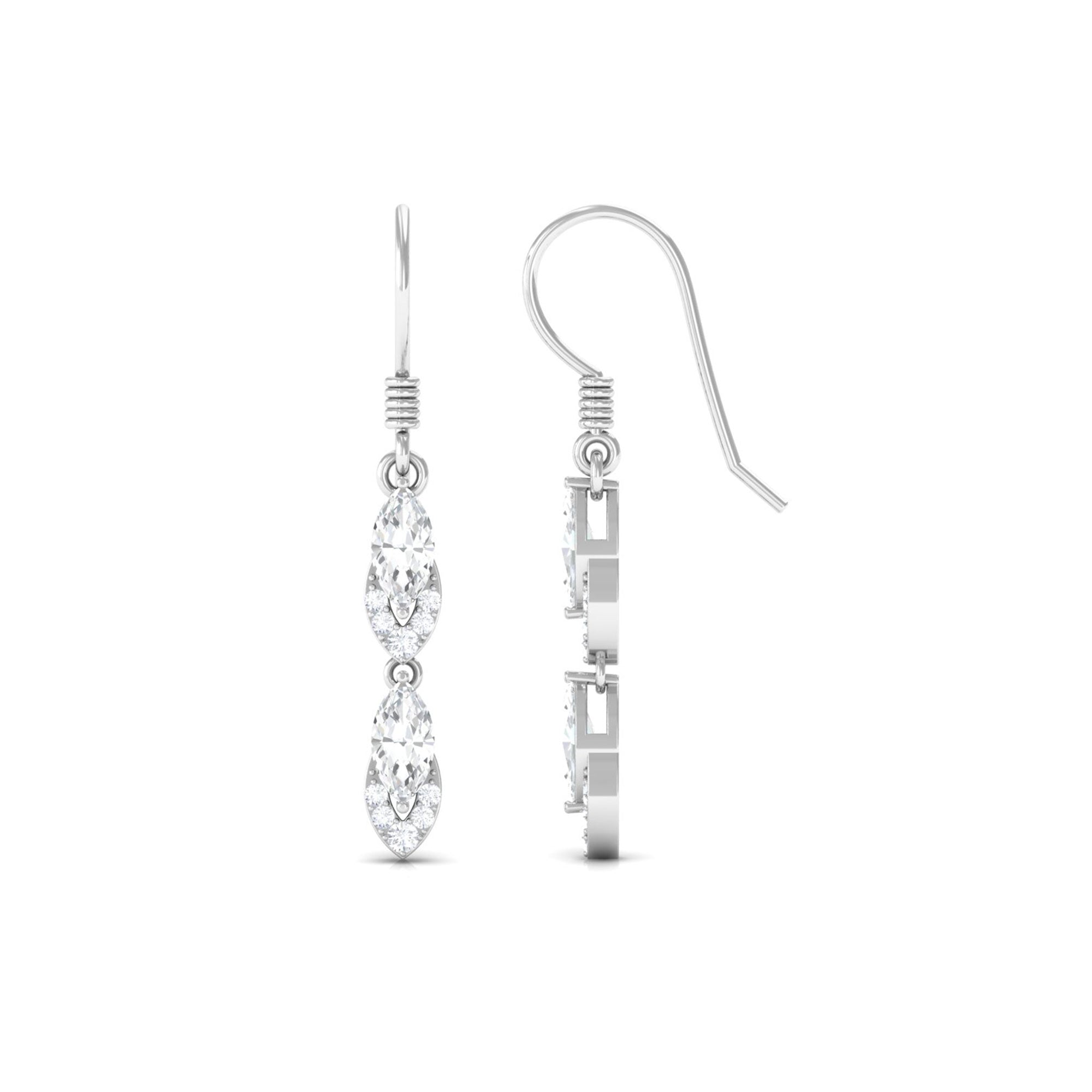 Moissanite Dangle Earrings:- Graced by shiny moissanite stone, these dangle earrings attract attention with their unique beauty. This style of earrings for women gracefully hangs below the earlobe. These are popular choices for special occasions that match any outfit. The dangle earrings feature a winging or swaying movement while drop earrings typically remain in their place, moving only with the wearer's movements.