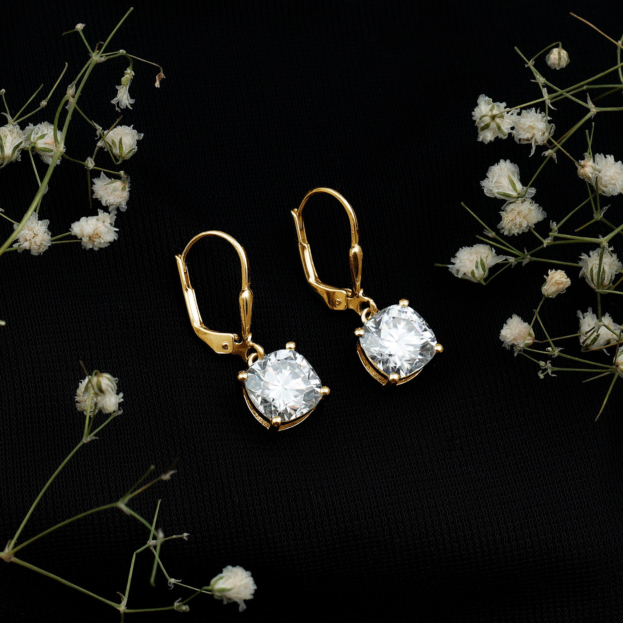 Our D color VS1 quality moissanite gems are of the highest quality, carefully selected for their amazing clarity and brilliance. Each pair of our high-quality moissanite earrings is crafted to ensure maximum fire and sparkle, providing a stunning look like the beauty of diamonds, but at a fraction of the cost.