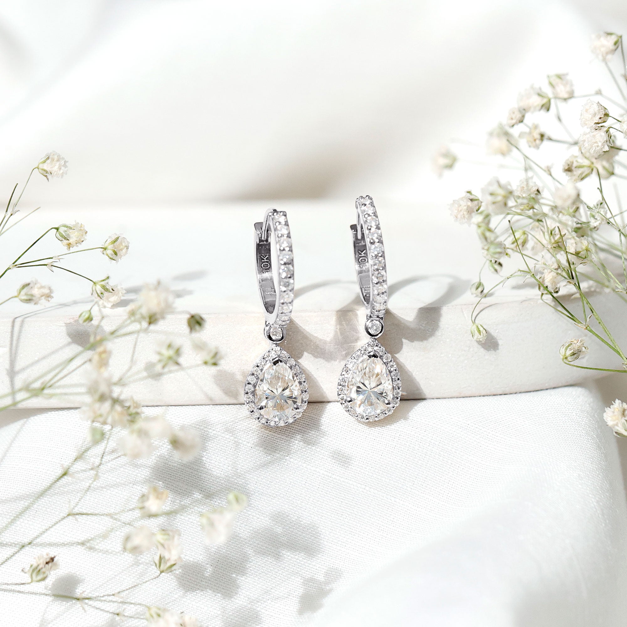Moissanite is an excellent choice for earrings due to its exceptional durability. It ranks 9.25 on the Mohs hardness scale, making mossanite one of the hardest gemstones available in the market, second only to diamonds. This toughness ensures moissanite is resistant to any scratches and everyday wear, which makes them a perfect choice for earrings as they are subjected to everyday wear and exposure.