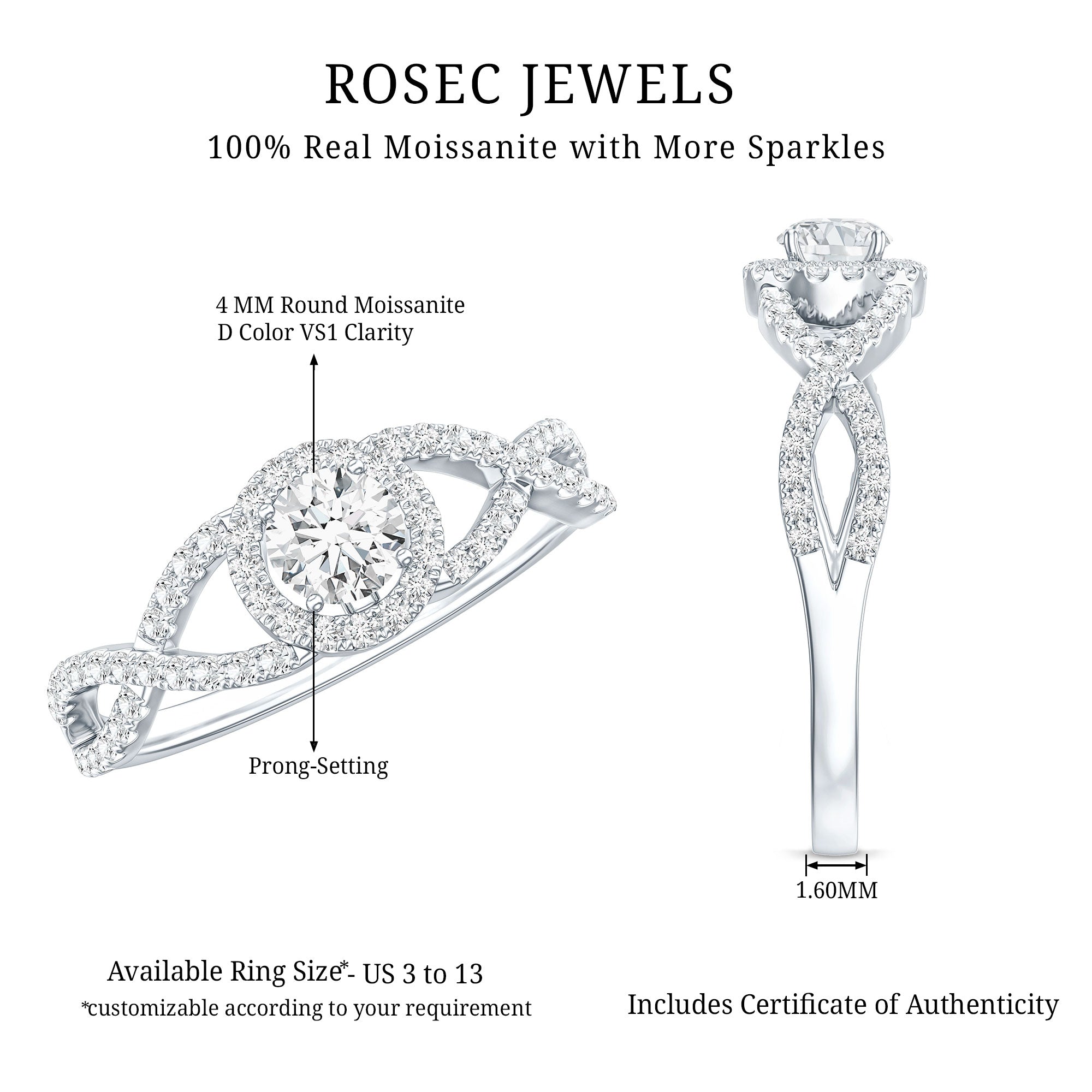 - Classic proposal ring: solitaire moissanite engagement rings.
