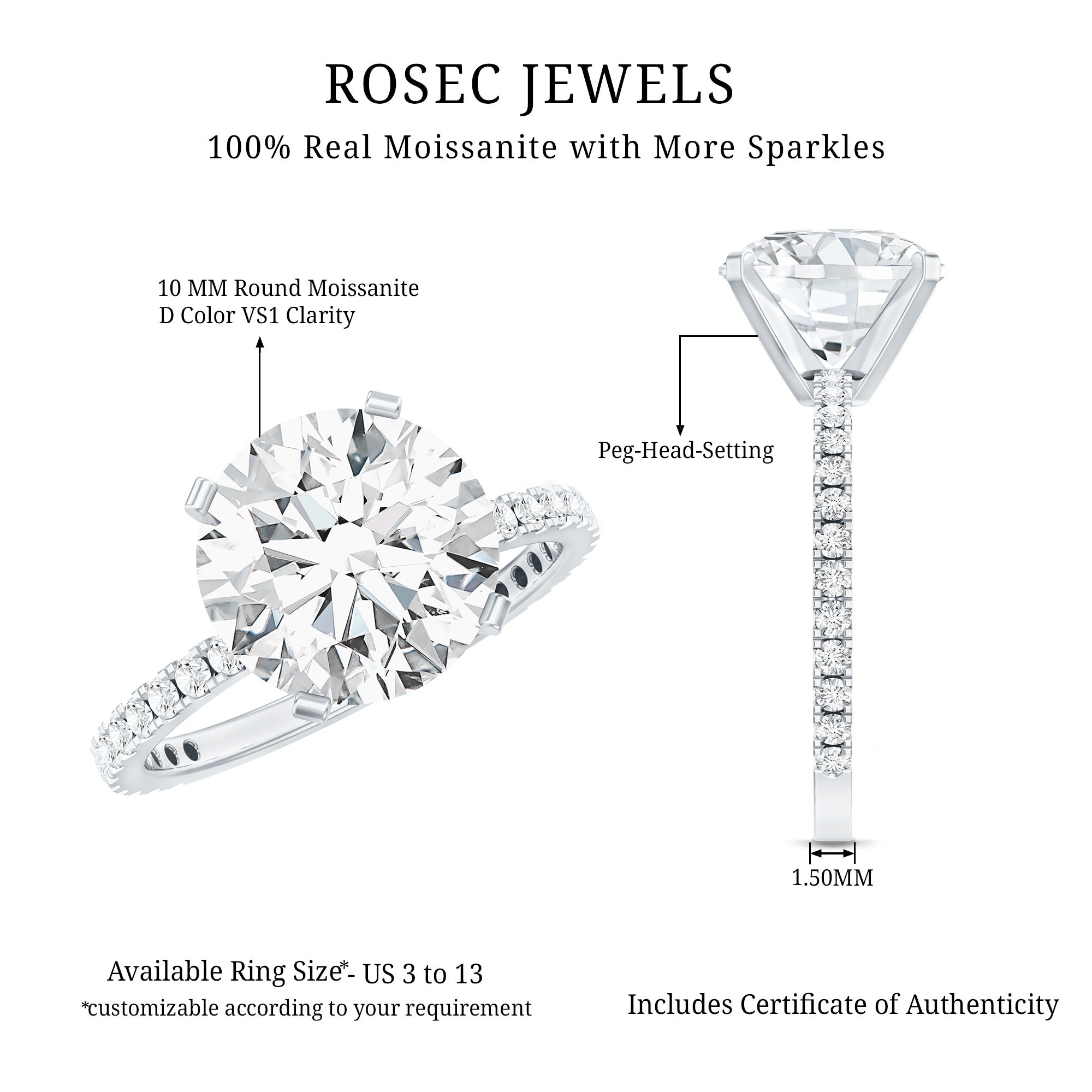 We take pride in announcing that Rosec Jewels is steadily making its place as the ultimate one-stop destination to buy the very best Moissanite Engagement Rings online. Keep reading to be convinced of that.