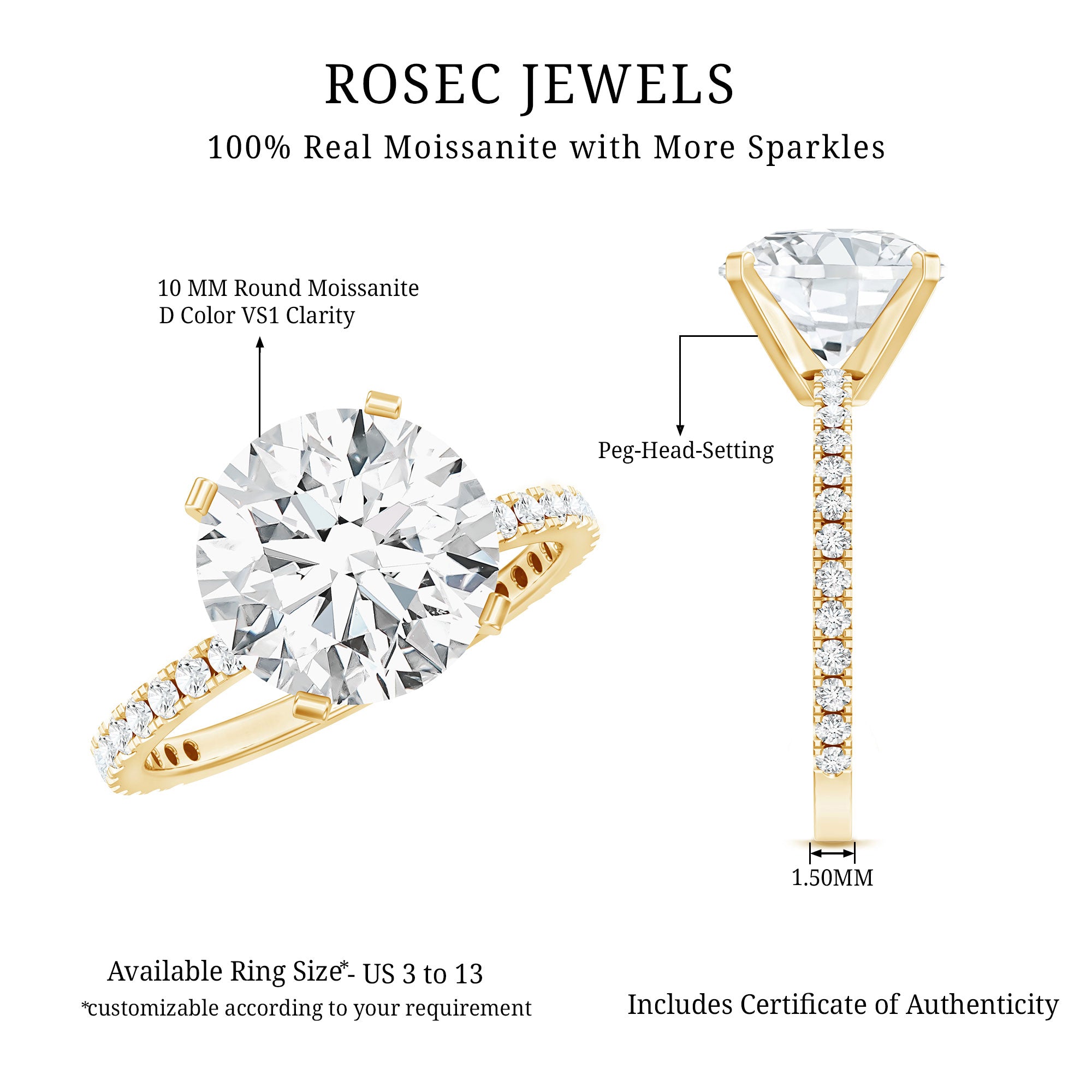 We understand if you can’t wait to pop the question with them but are still wondering “Where to buy Moissanite Engagement Rings that are nothing short of perfect?" Well, the good news is- Rosec Jewels has just what you’ve been looking for! Fashioned in a fusion of styles that are timeless, trendy, and everything in between, we carry a range of Moissanite Gold Engagement Rings that are sure to speak to all kinds of couples.