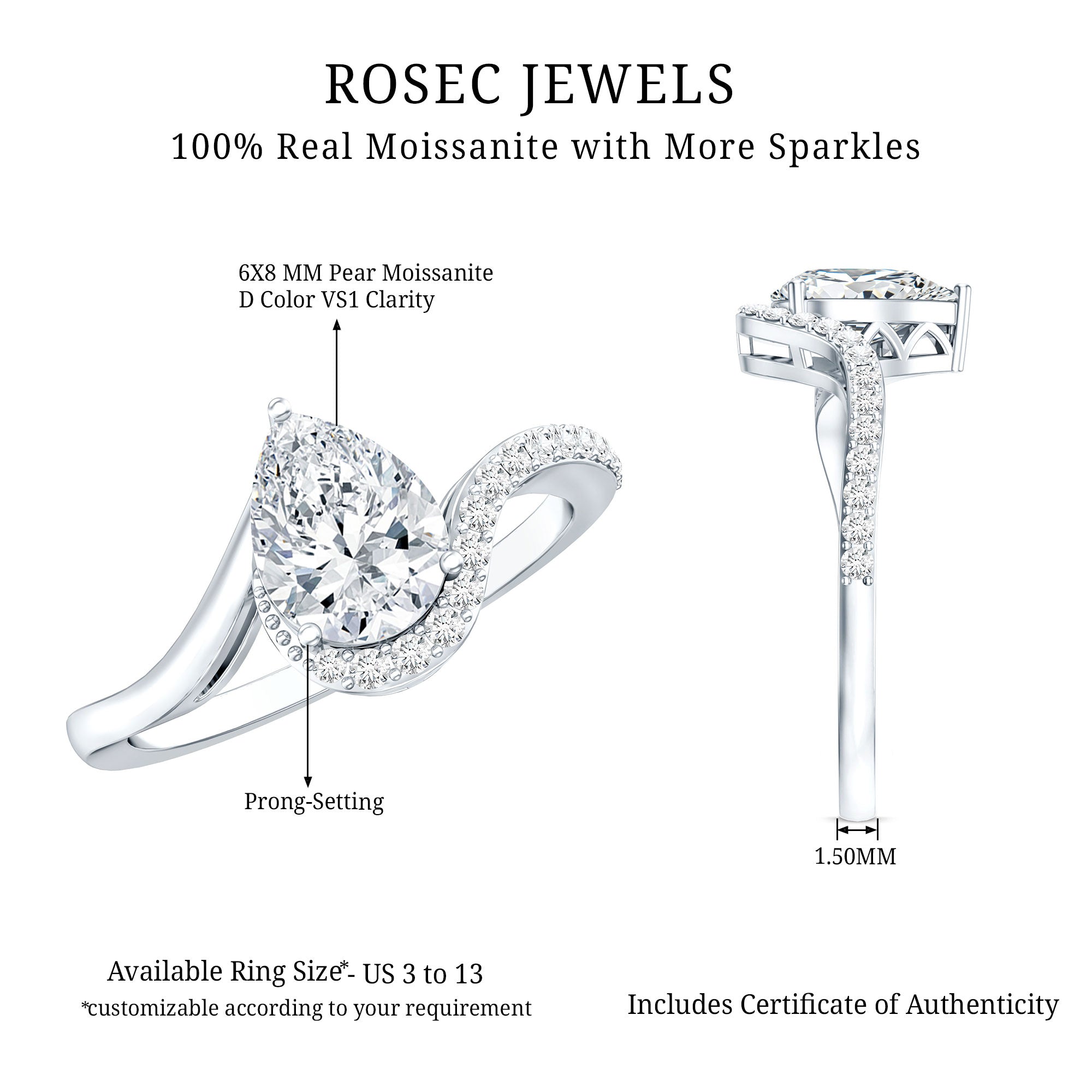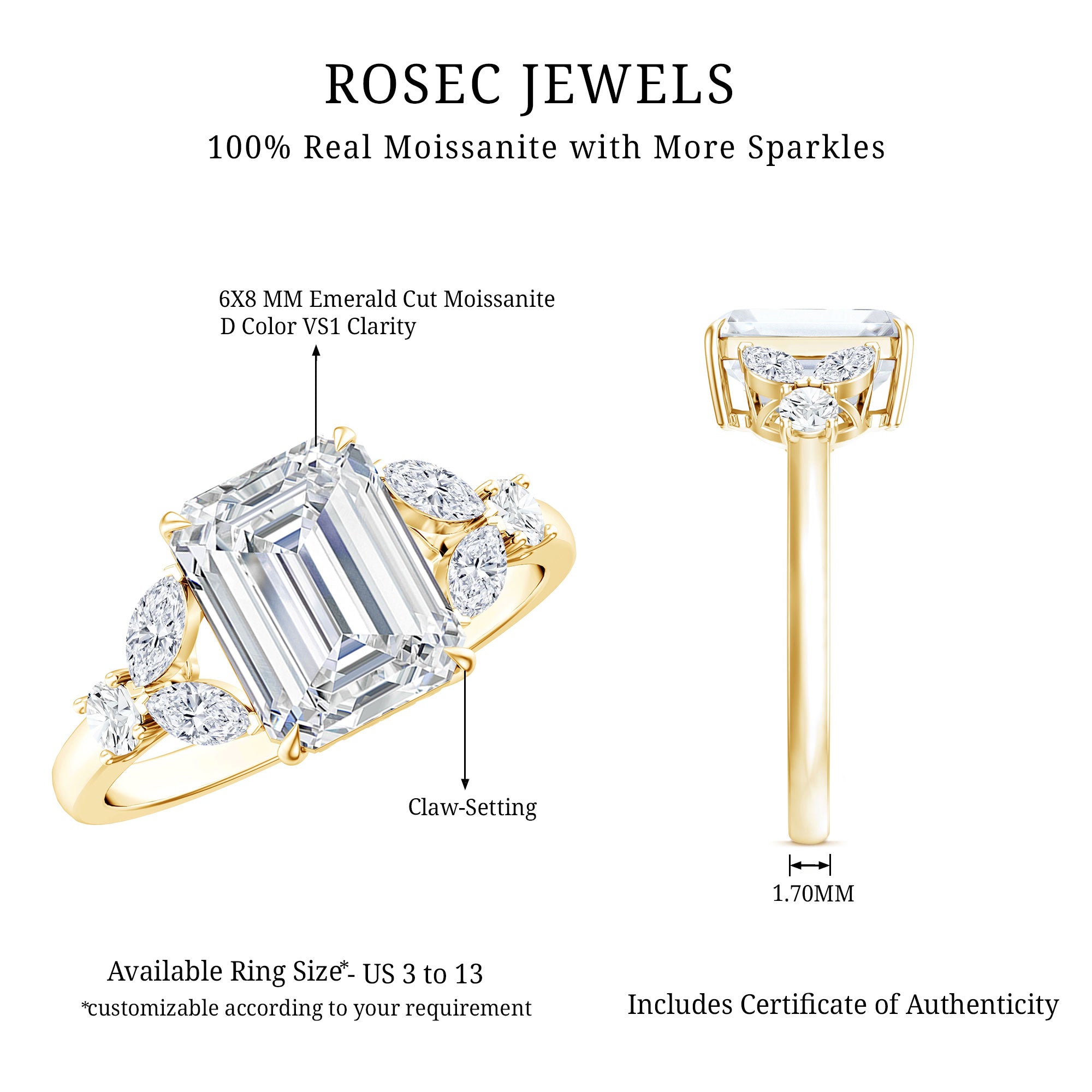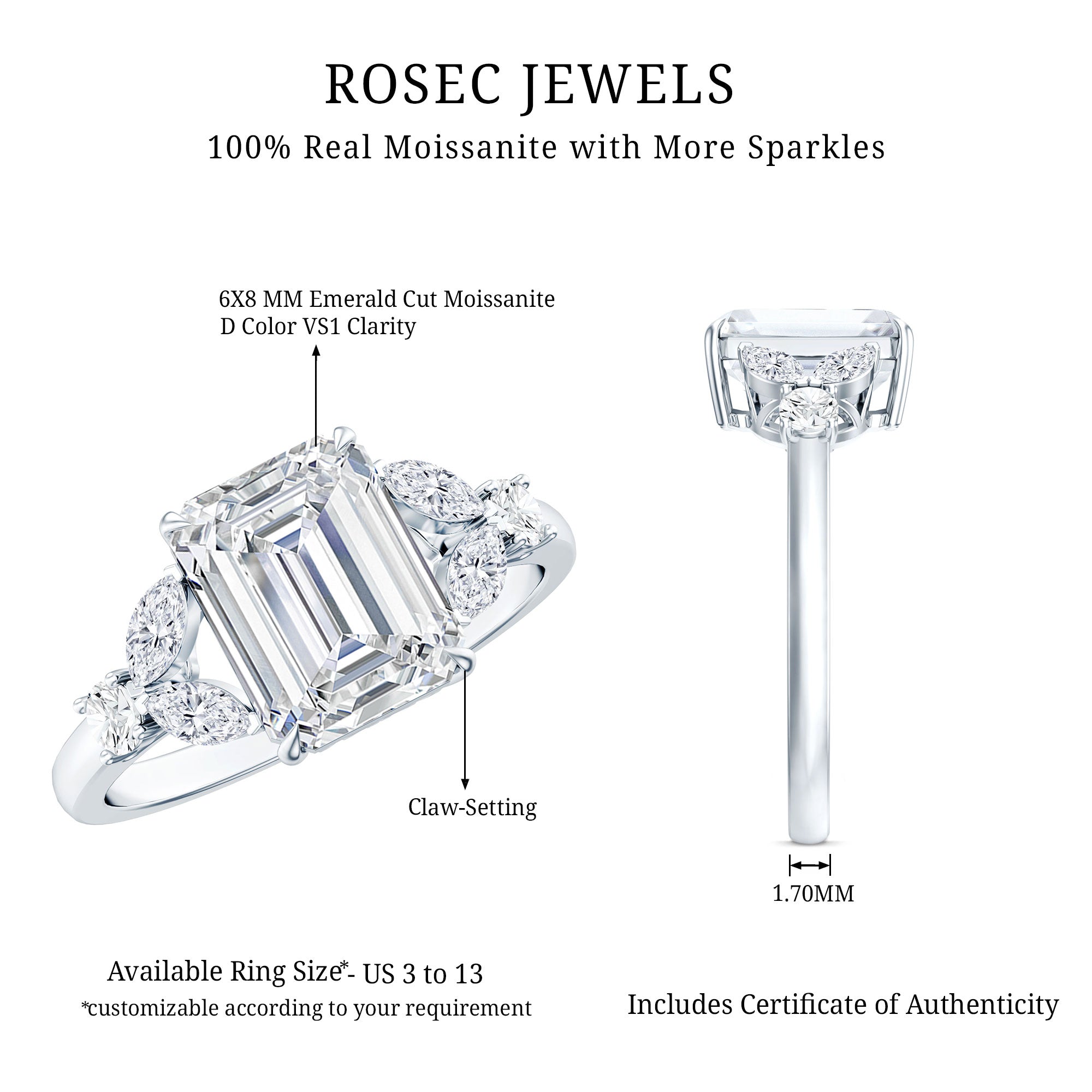 We take pride in announcing that Rosec Jewels is steadily making its place as the ultimate one-stop destination to buy the very best Moissanite Engagement Rings online. Keep reading to be convinced of that.