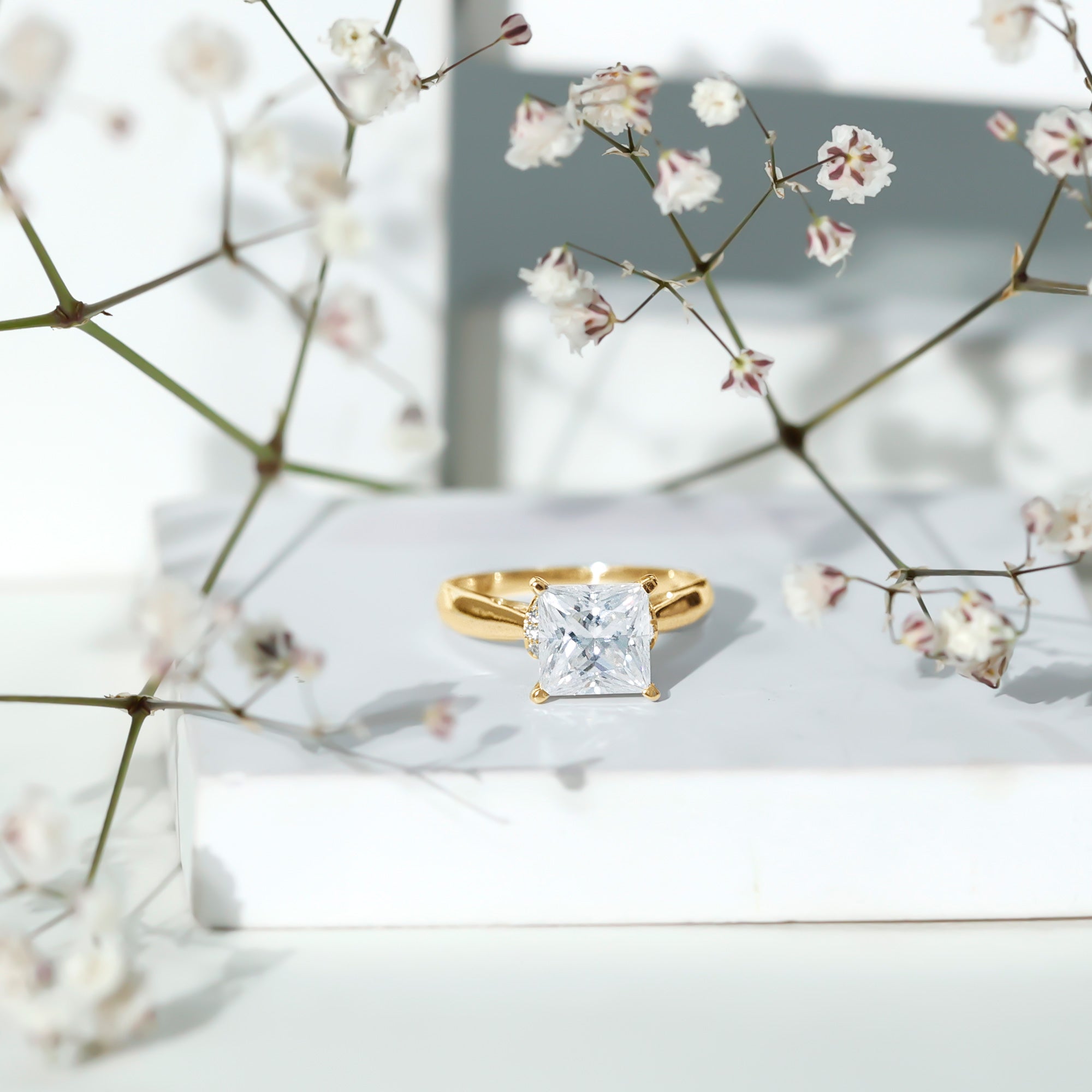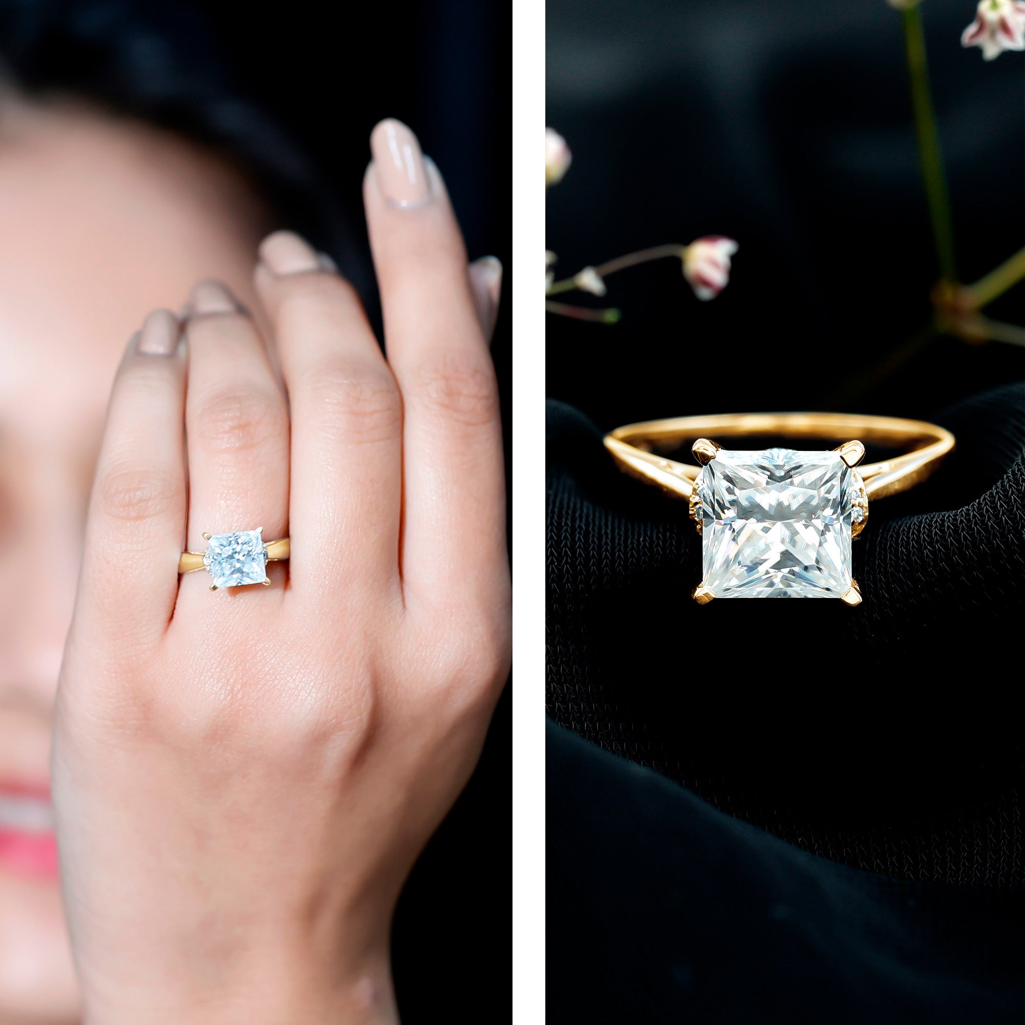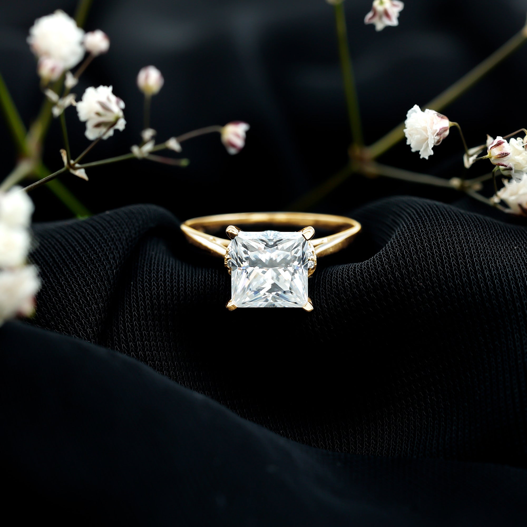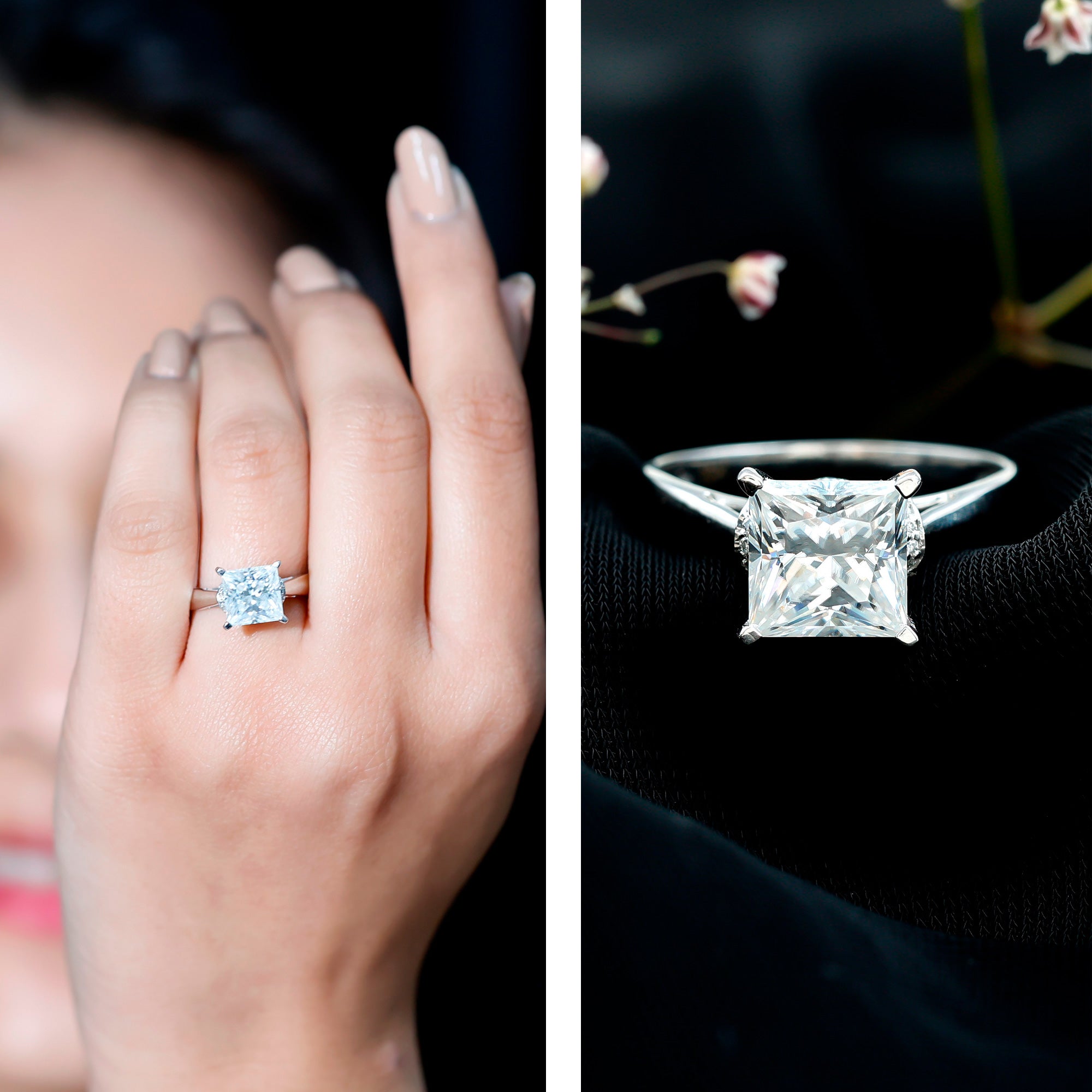 Though Moissanite is an incredibly durable gemstone, wearing your engagement ring to bed only makes it prone to damage. For instance, the prongs of your setting could snag on the bed sheet, which in turn can cause your Moissanite to loosen over time. So, it is always recommended to put off your Moissanite sparkler before going to bed.