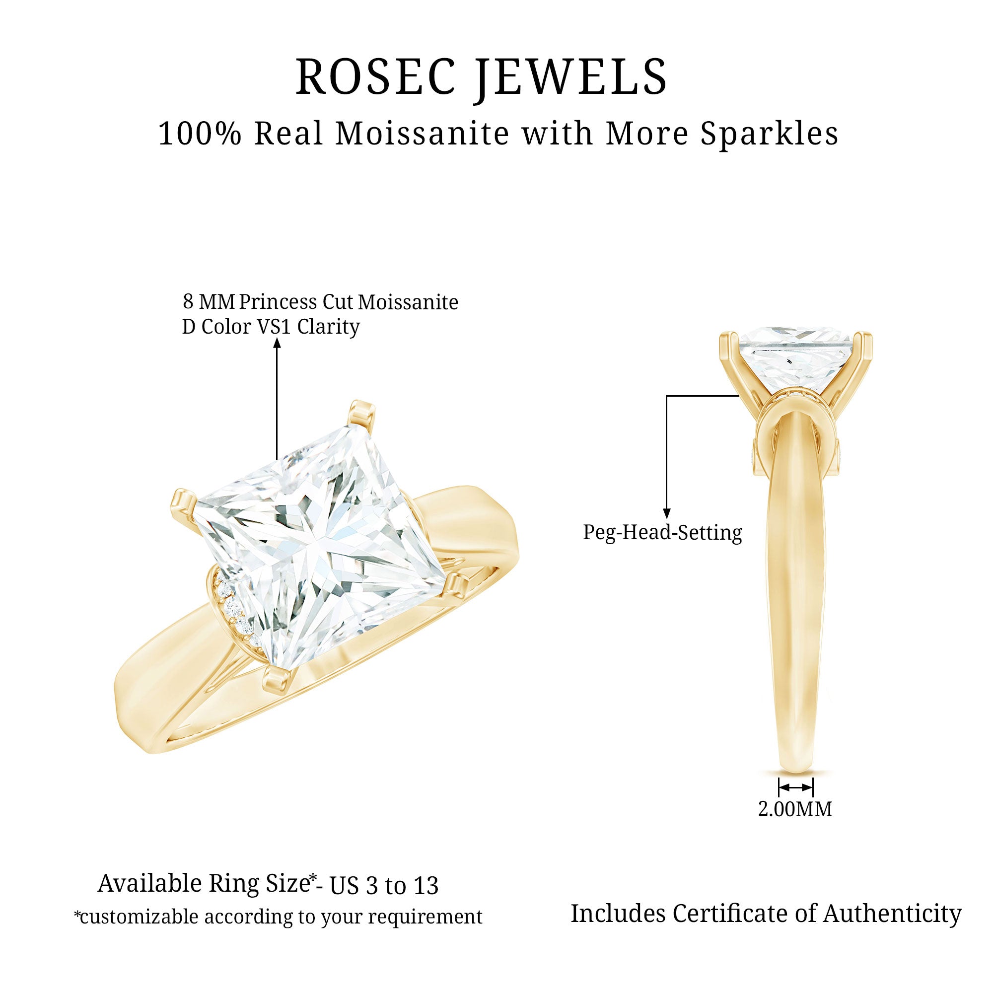 We understand if you can’t wait to pop the question with them but are still wondering “Where to buy Moissanite Engagement Rings that are nothing short of perfect?" Well, the good news is- Rosec Jewels has just what you’ve been looking for! Fashioned in a fusion of styles that are timeless, trendy, and everything in between, we carry a range of Moissanite Gold Engagement Rings that are sure to speak to all kinds of couples.