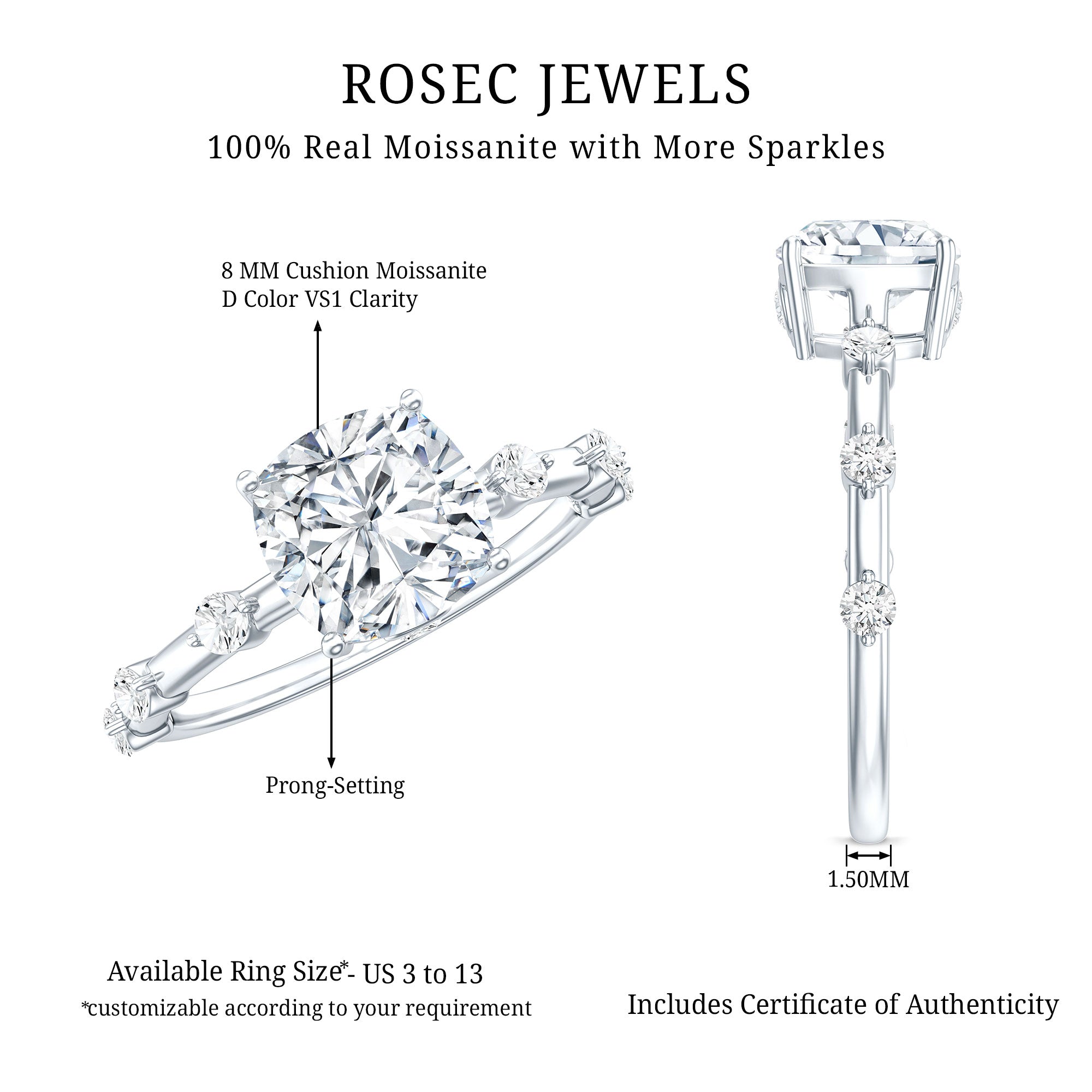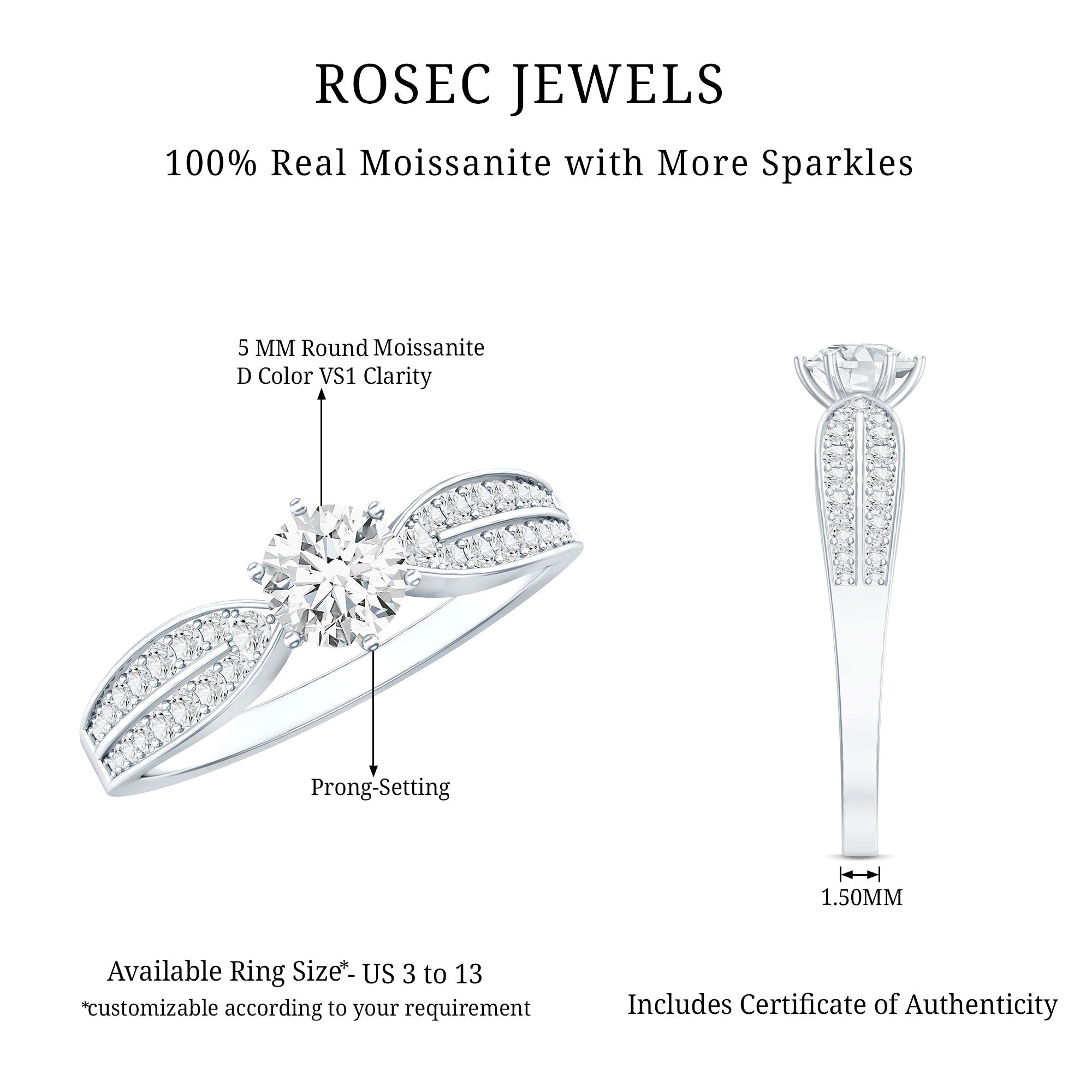 We take pride in announcing that Rosec Jewels is steadily making its place as the ultimate one-stop destination to buy the very best Moissanite Engagement Rings online. Keep reading to be convinced of that.