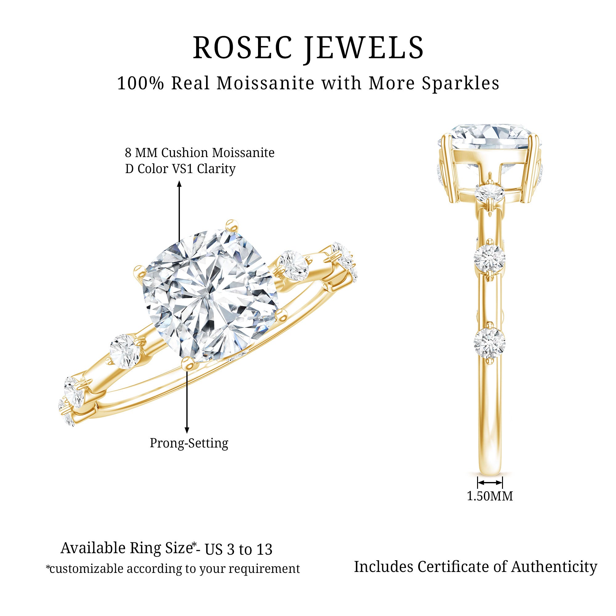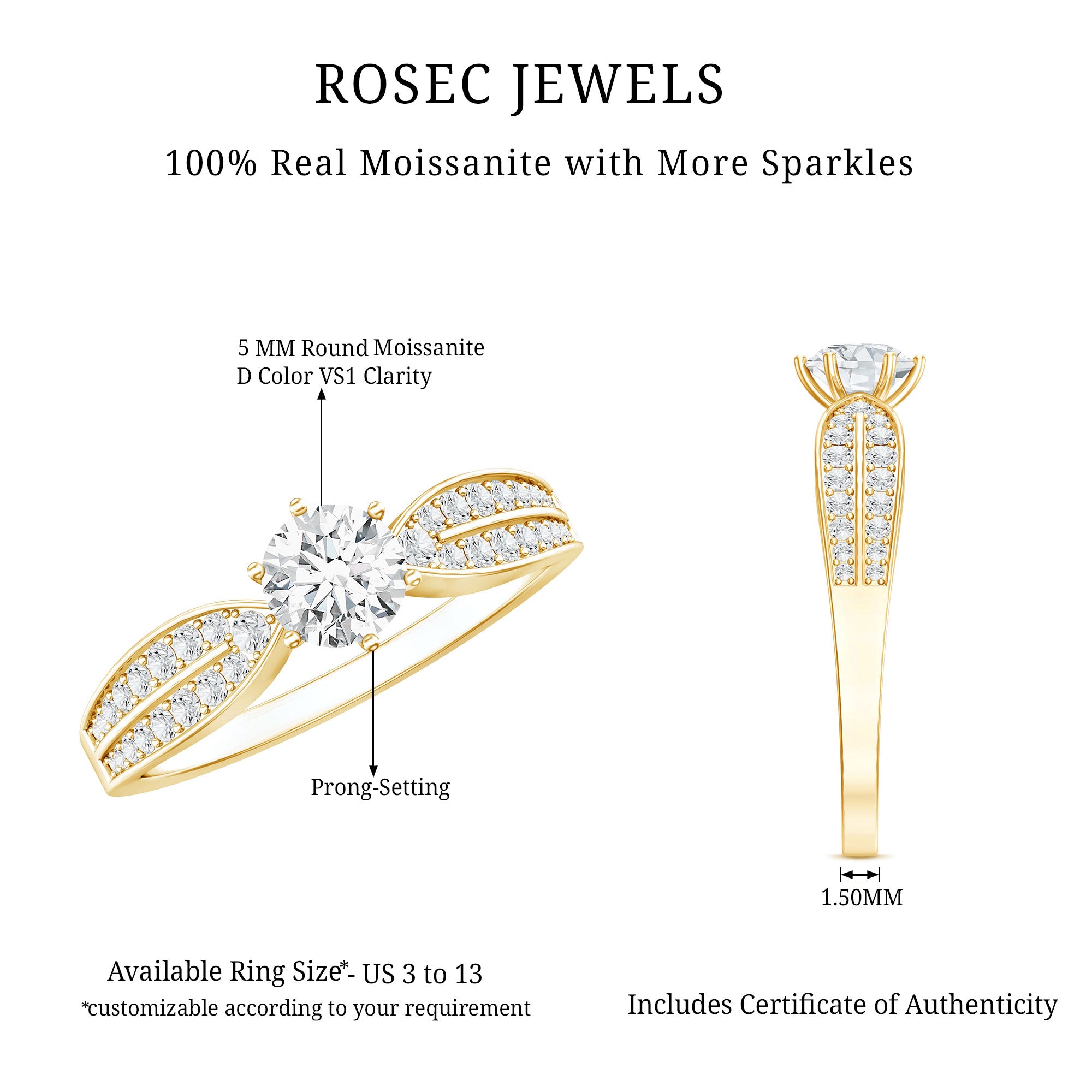 We understand if you can’t wait to pop the question with them but are still wondering “Where to buy Moissanite Engagement Rings that are nothing short of perfect?" Well, the good news is- Rosec Jewels has just what you’ve been looking for! Fashioned in a fusion of styles that are timeless, trendy, and everything in between, we carry a range of Moissanite Gold Engagement Rings that are sure to speak to all kinds of couples.