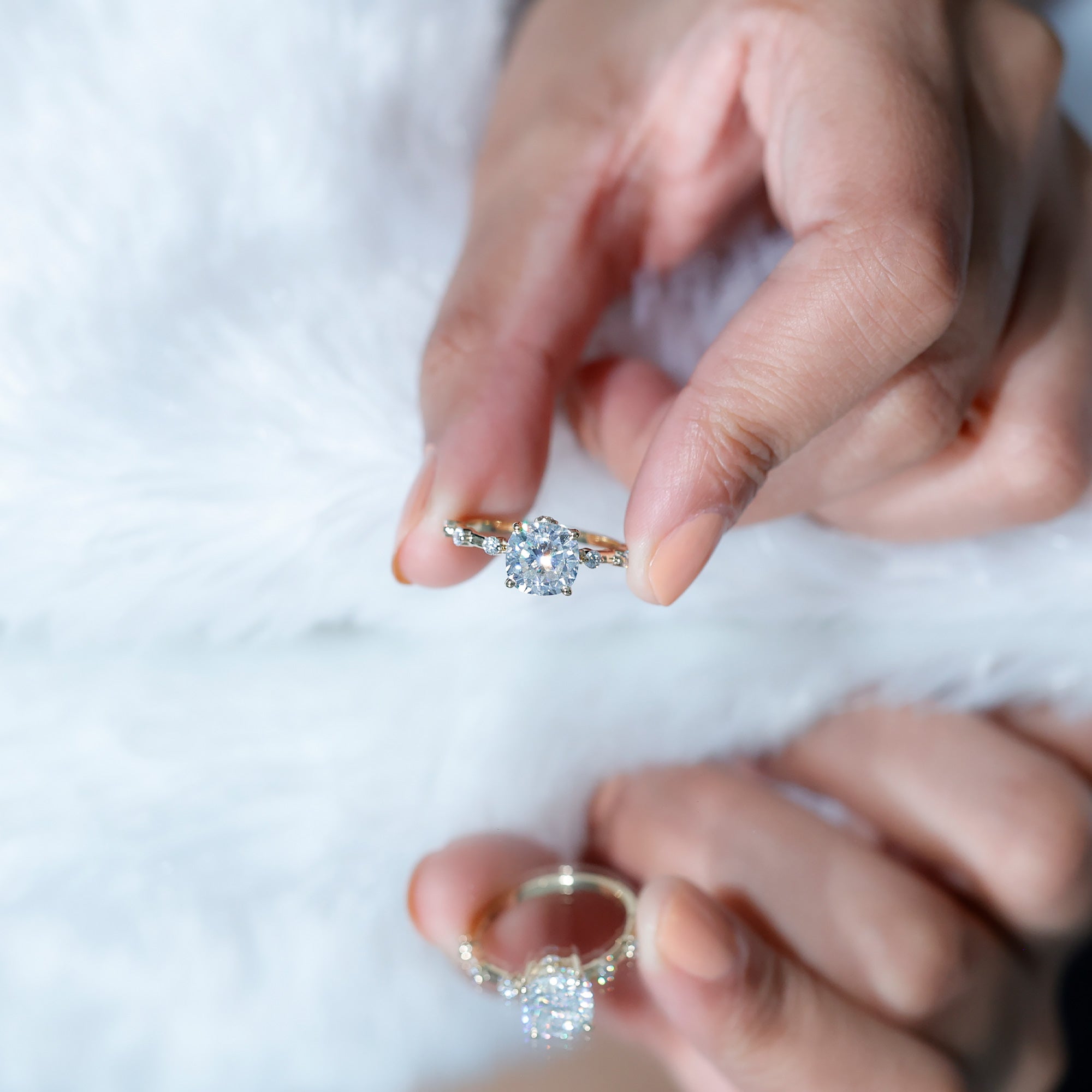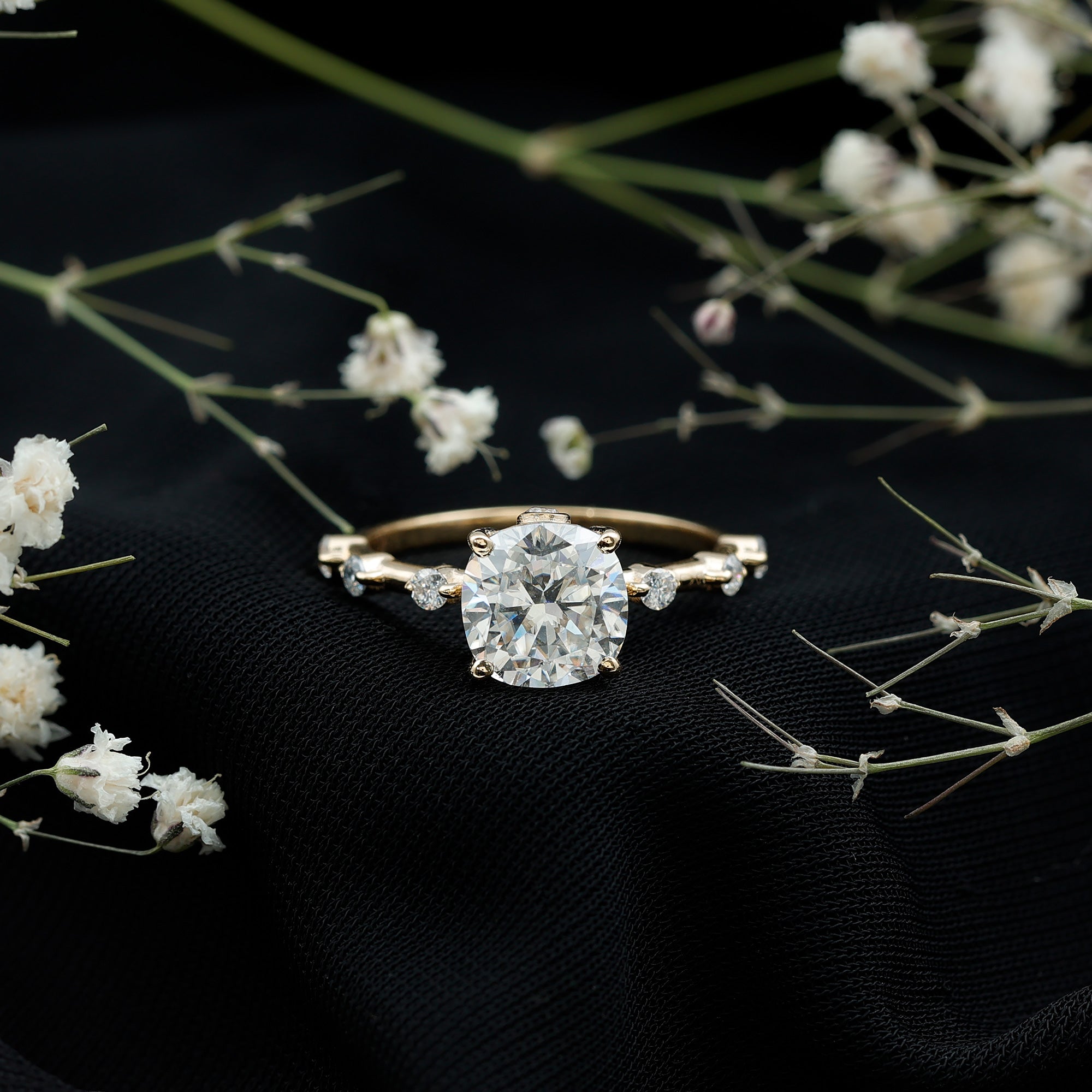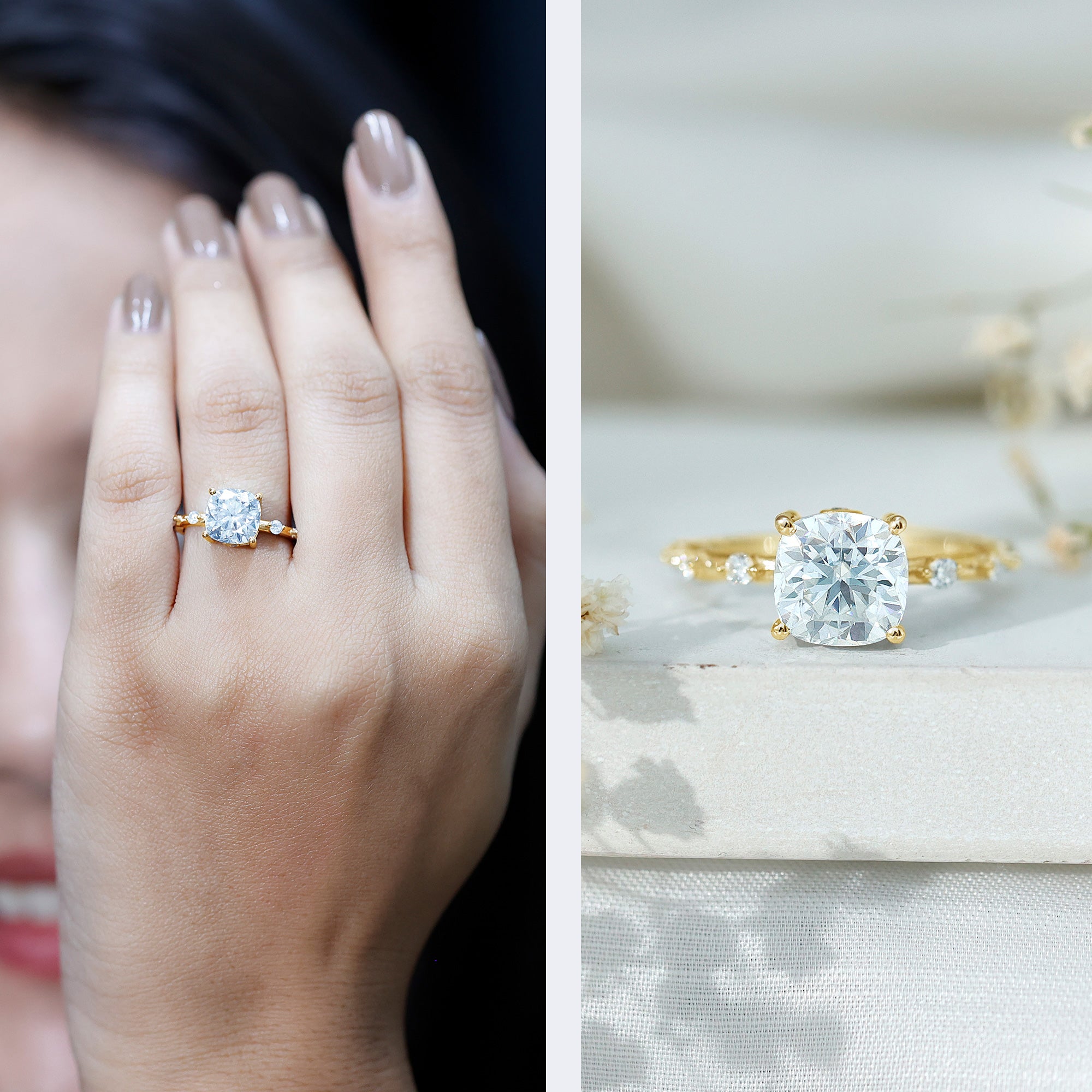 Though Moissanite is an incredibly durable gemstone, wearing your engagement ring to bed only makes it prone to damage. For instance, the prongs of your setting could snag on the bed sheet, which in turn can cause your Moissanite to loosen over time. So, it is always recommended to put off your Moissanite sparkler before going to bed.