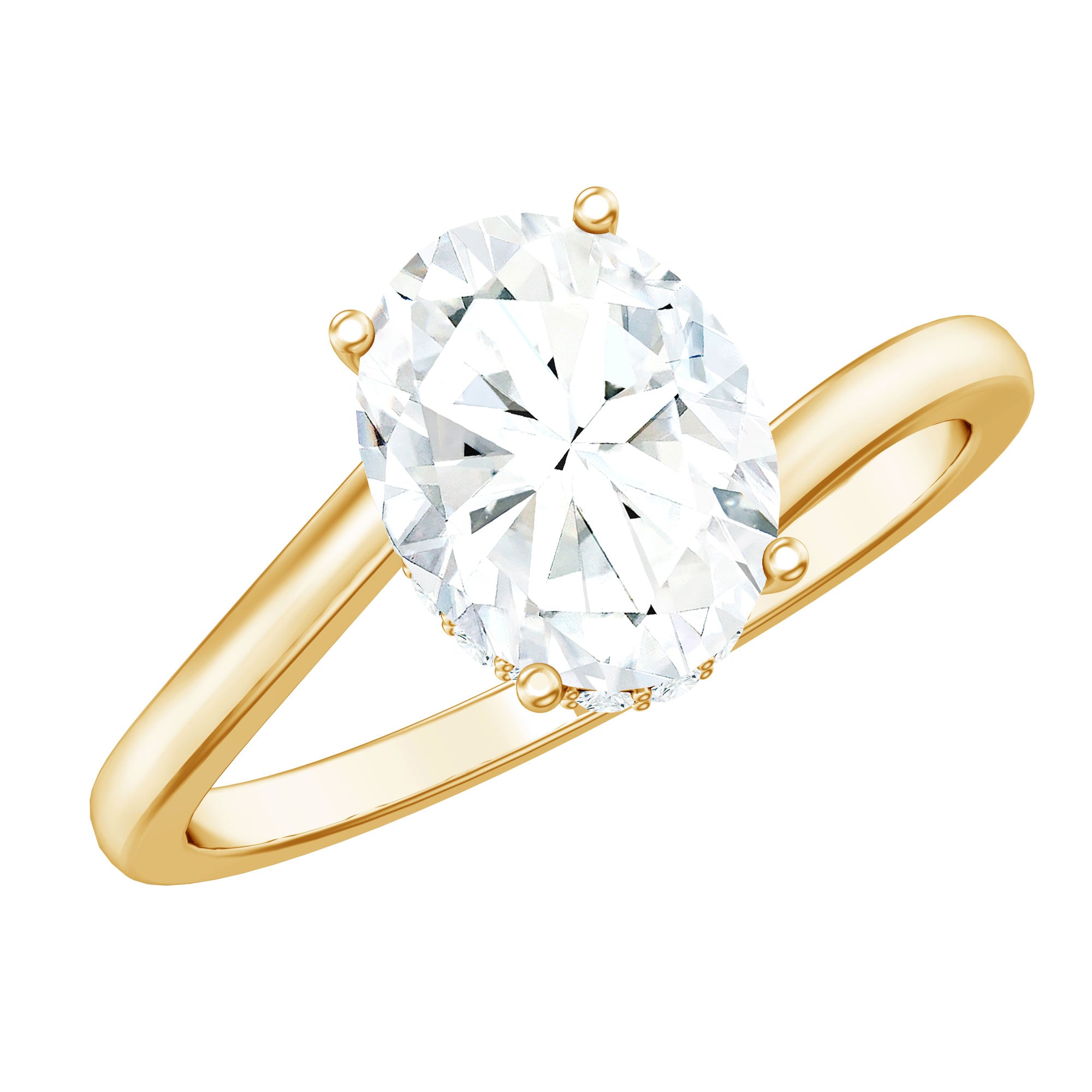 Easily a fancy, elongated, and unique version of the Classic Round Cut, Oval Cut stands out with its large and oblong shape that offers the illusion of longer and slimmer fingers. Moreover, an Oval Moissanite Engagement Ring exudes just as much brilliance as a conventional Round Cut while maximizing the carat weight.