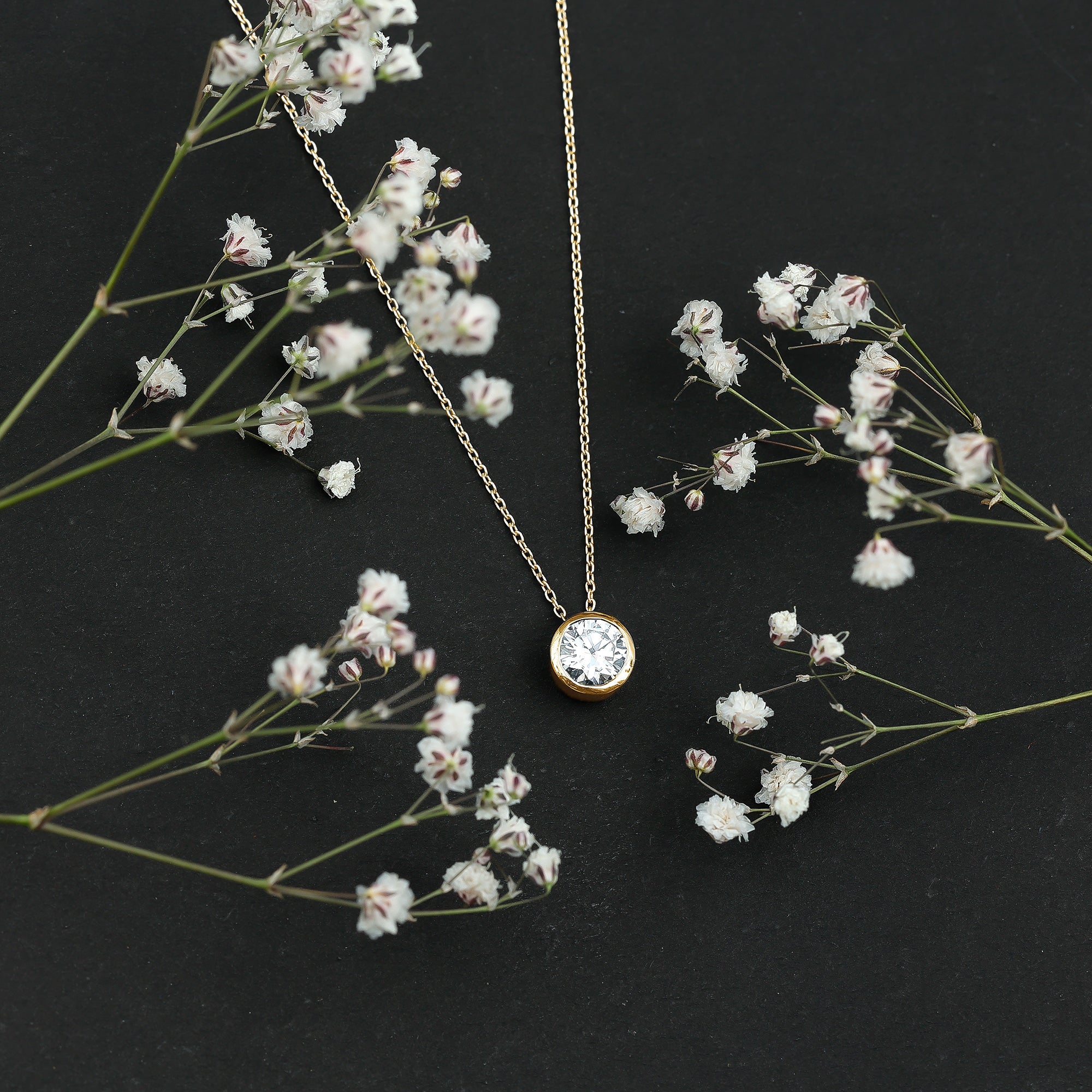 Not just that, the Gold we handcraft each Moissanite Necklace in has been hallmarked by a reputable gemological authority. We only offer 14K Moissanite Gold Necklaces, thus ensuring that the Gold is at its purest form. Besides being extremely durable and affordable, they are inclusive of 58.3 % pure gold.