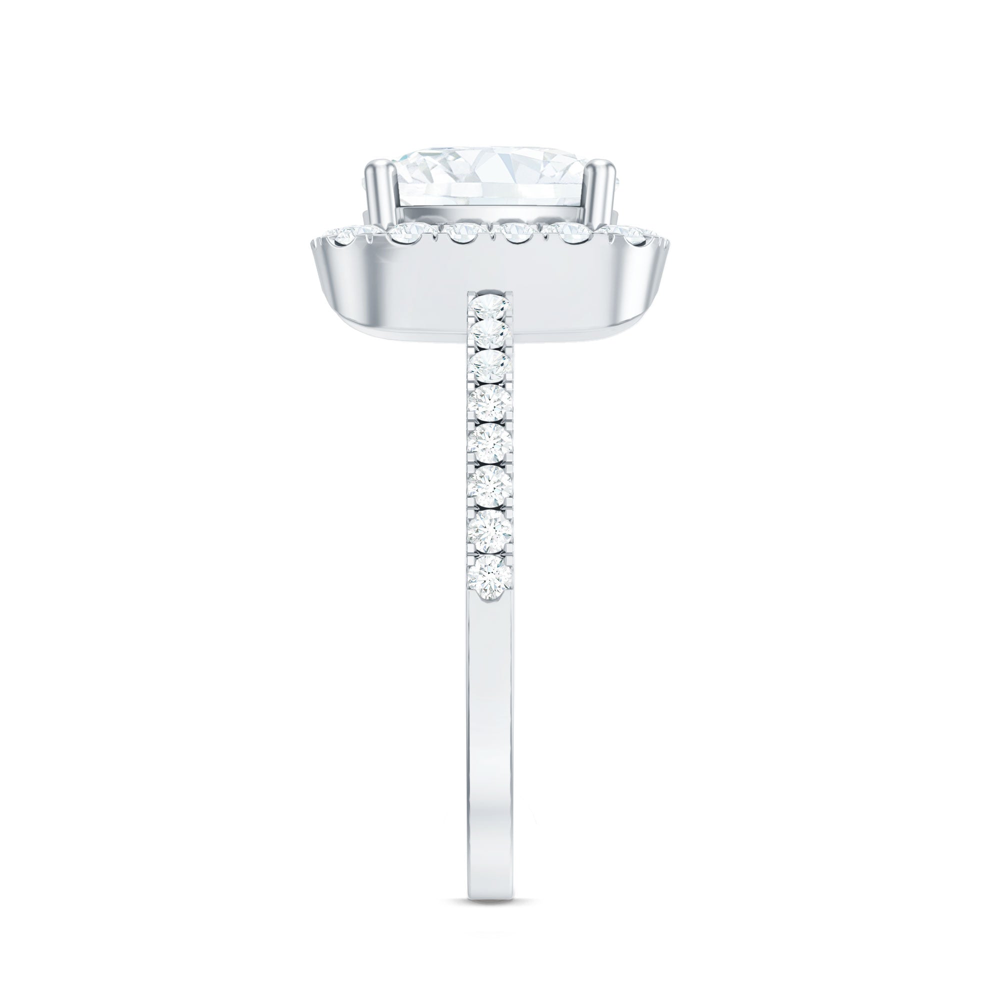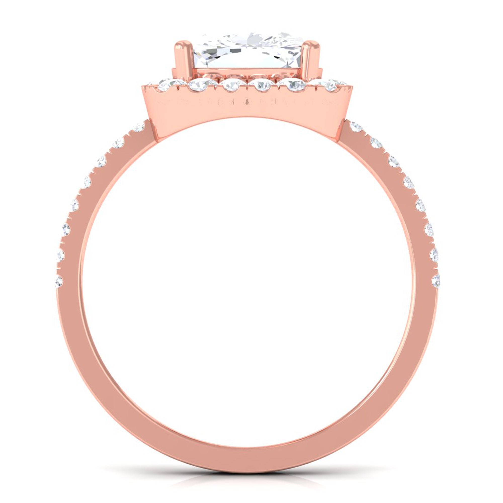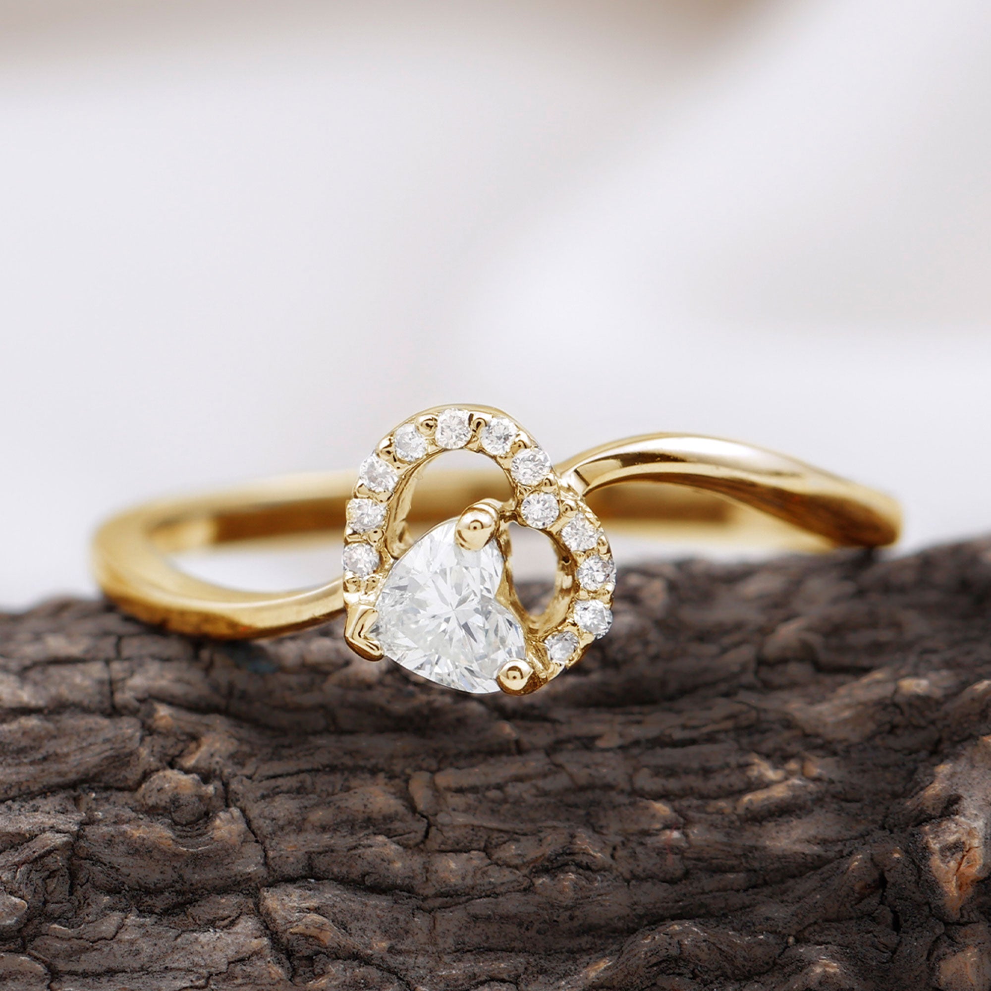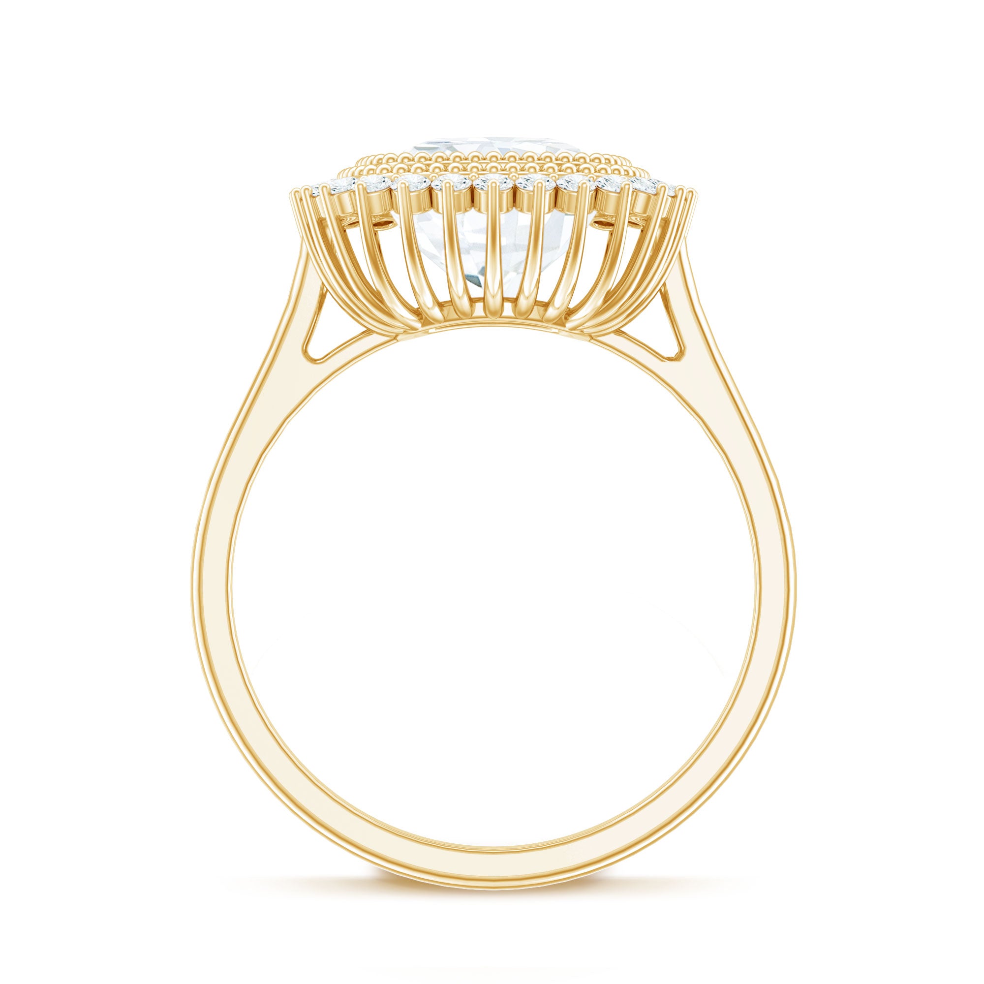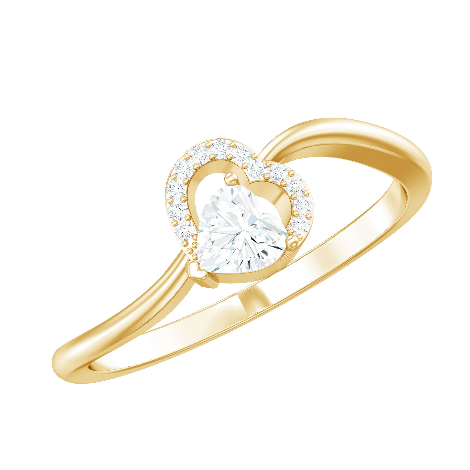 Halo moissanite rings: One center moissanite piece is surrounded by small accent moissanite, which is a halo moissanite setting. Halo gemstone settings are more affordable than gemstone solitaire rings, in case of the same total carat weight, and look similar. the side moissanite in yellow gold moissanite rings creates the illusion of a bigger gemstone.