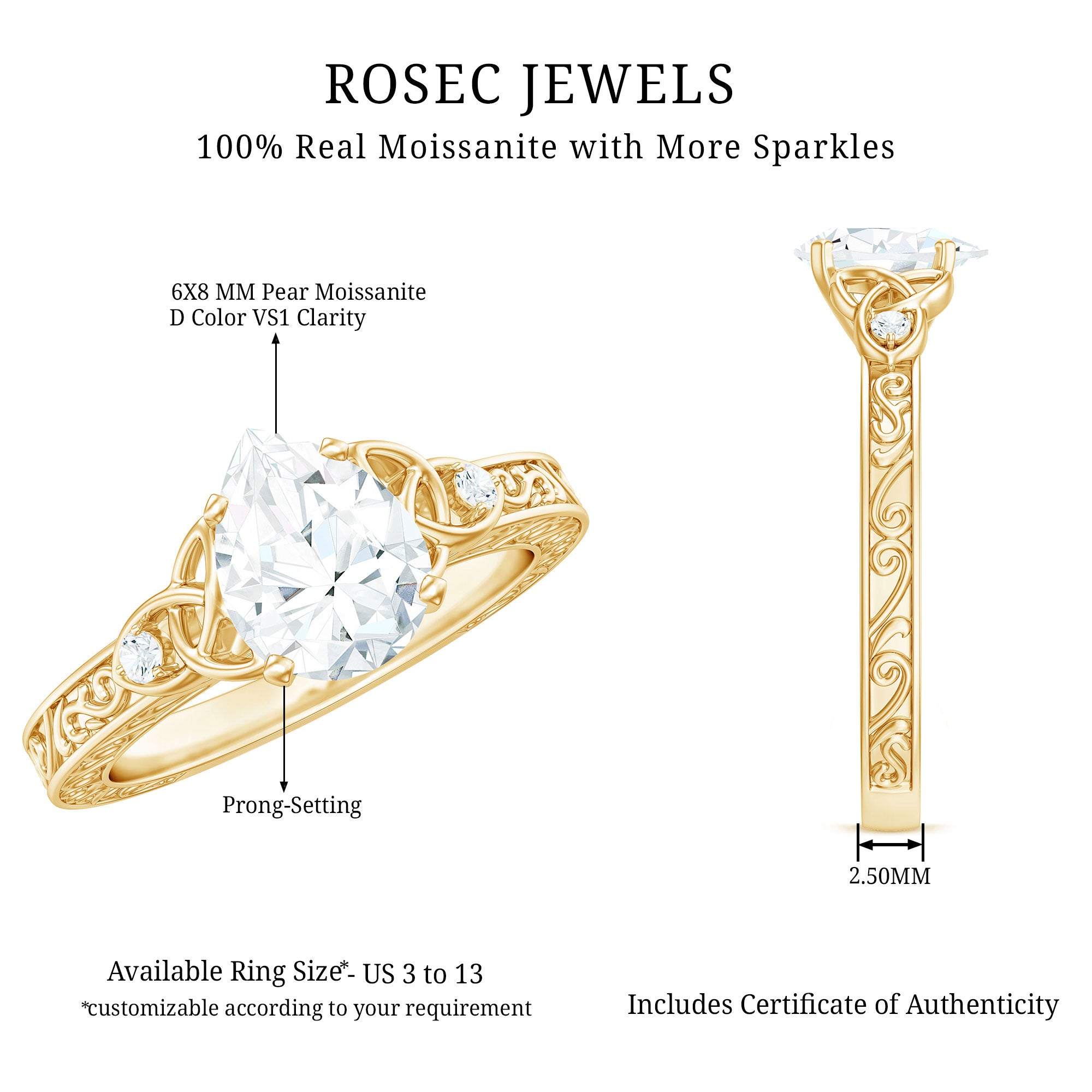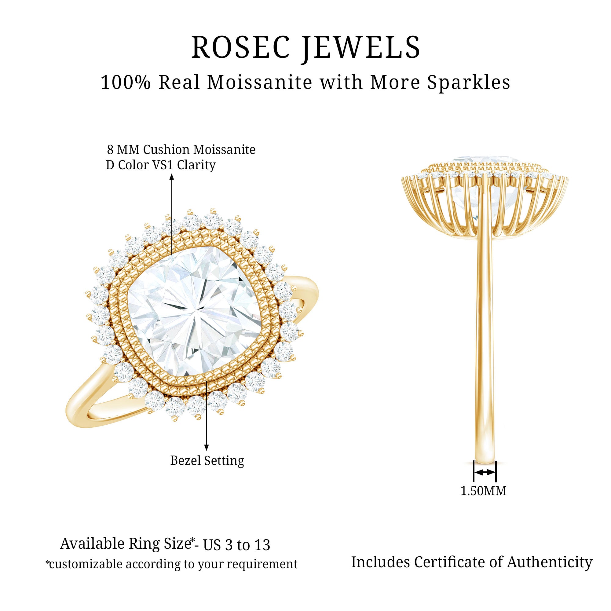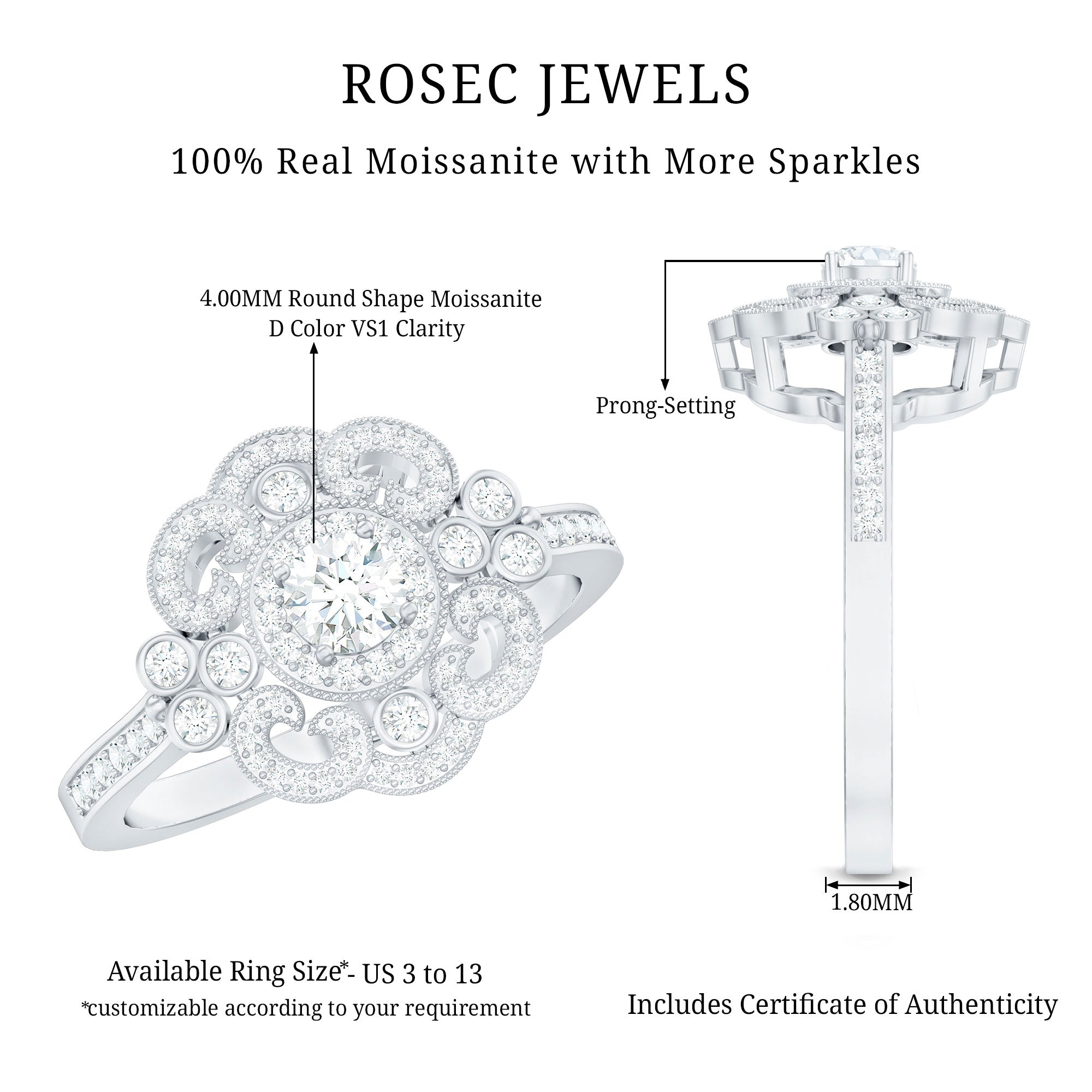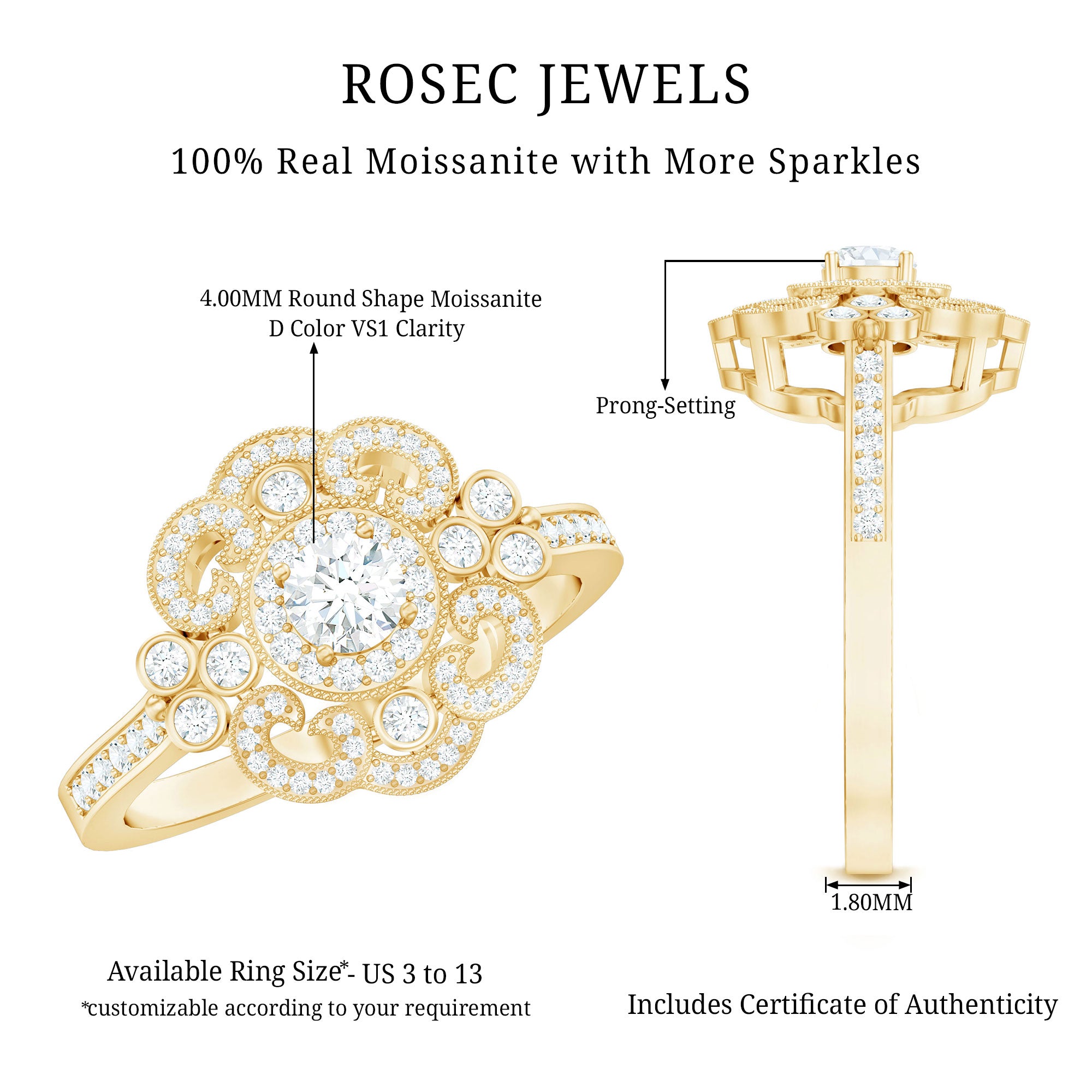Vintage and Antique Styles: Vintage-inspired moissanite rings draw inspiration from different historical periods, and combine intricate designs, filigree work, and milgrain details. These rings exude a sense of timeless charm and sophistication.