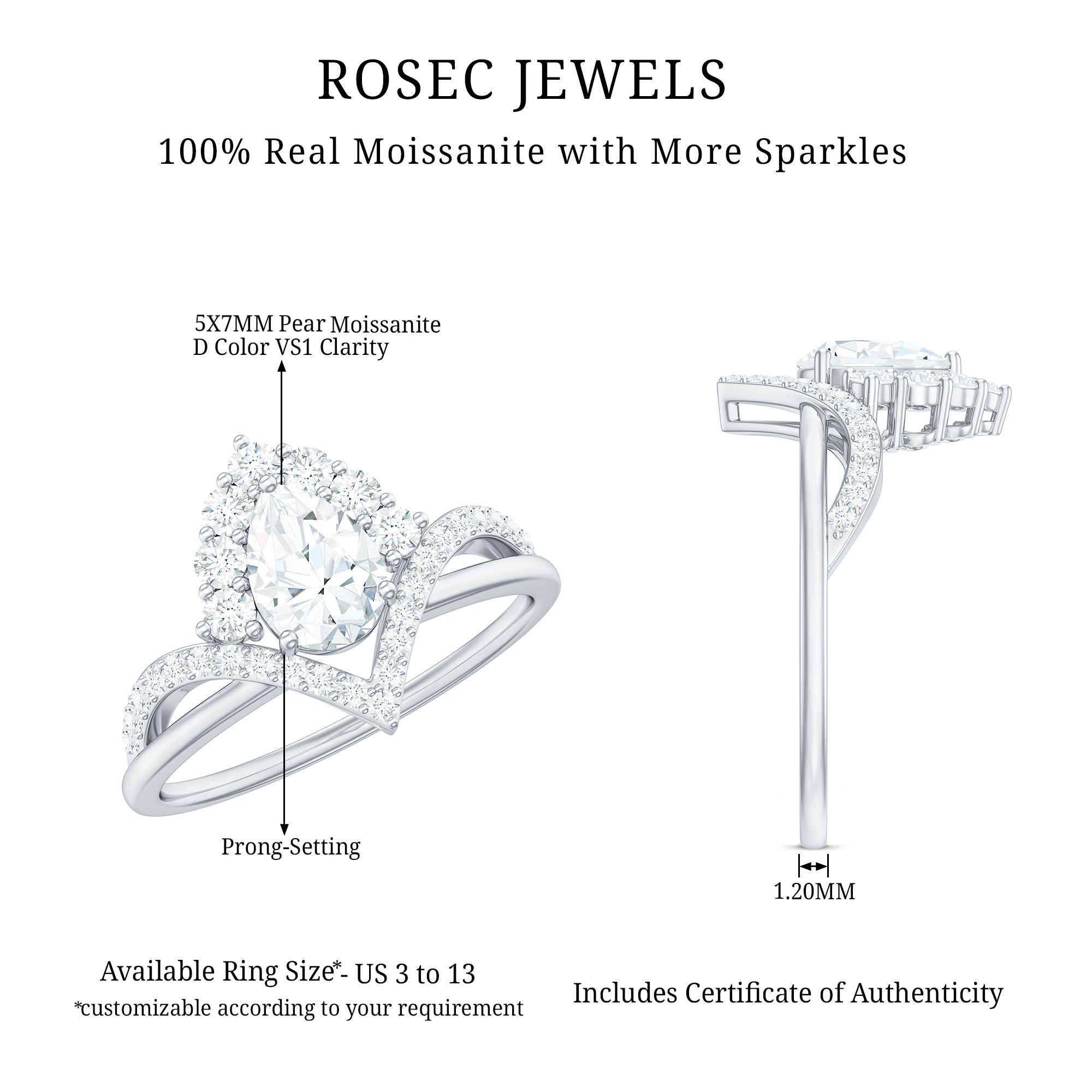 Moissanite Bridal Ring Sets: One of the popular choices for engagements and weddings is you can buy a ring set. The Bridal Ring Set is the perfect stacking combination of engagement rings and moissanite wedding rings. Two different styles create sets of rings that look premium and classy. The wedding band compliments the engagement ring and works as an enhancer.