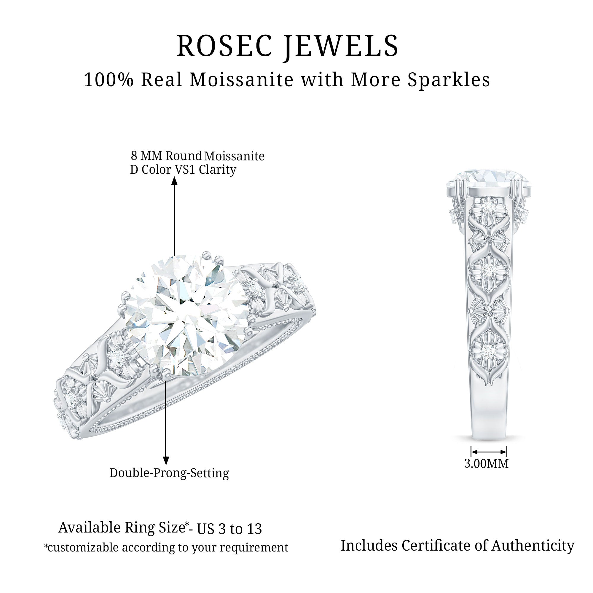 4. Vintage and Antique Styles: Vintage-inspired moissanite rings draw inspiration from different historical periods, and combine intricate designs, filigree work, and milgrain details. These rings exude a sense of timeless charm and sophistication.