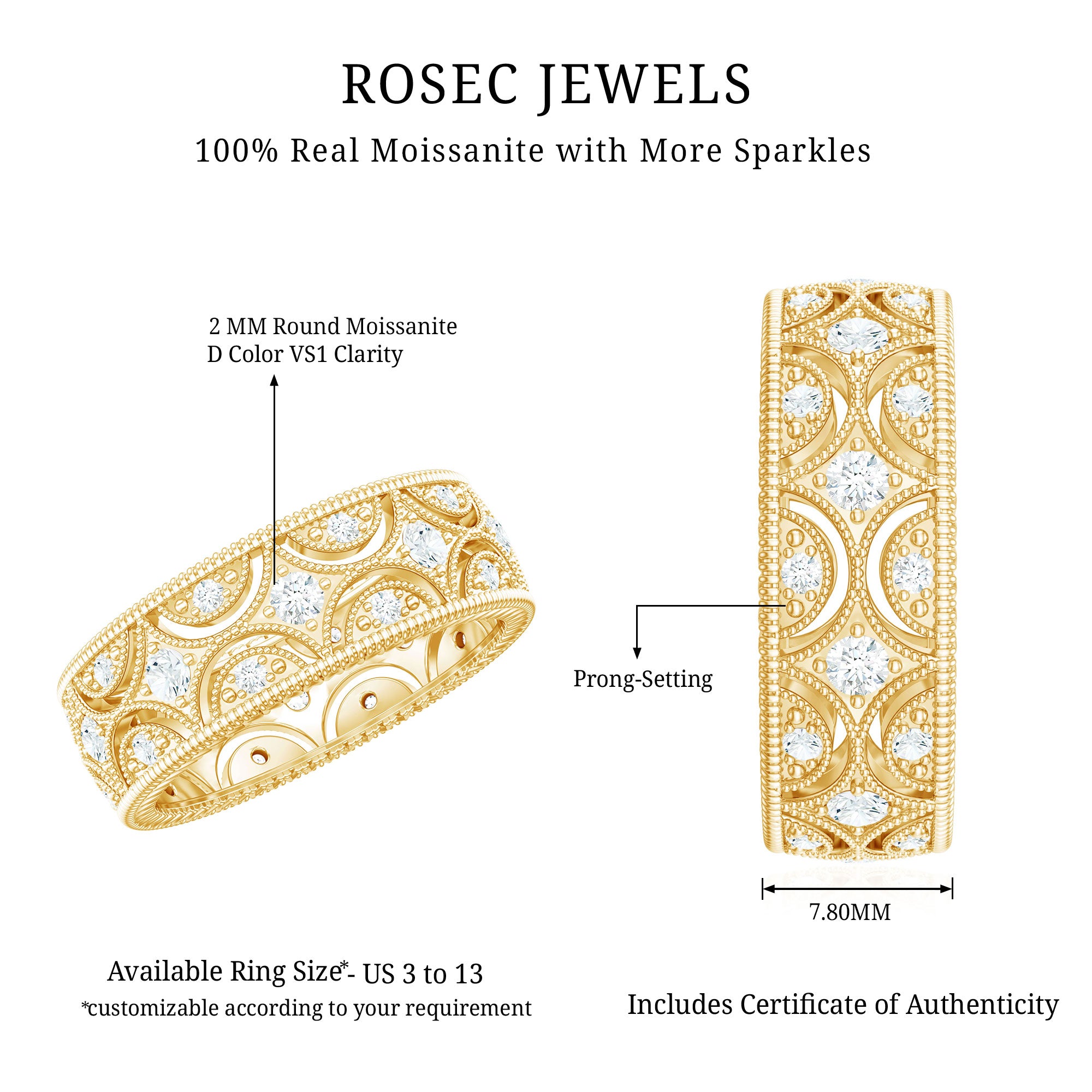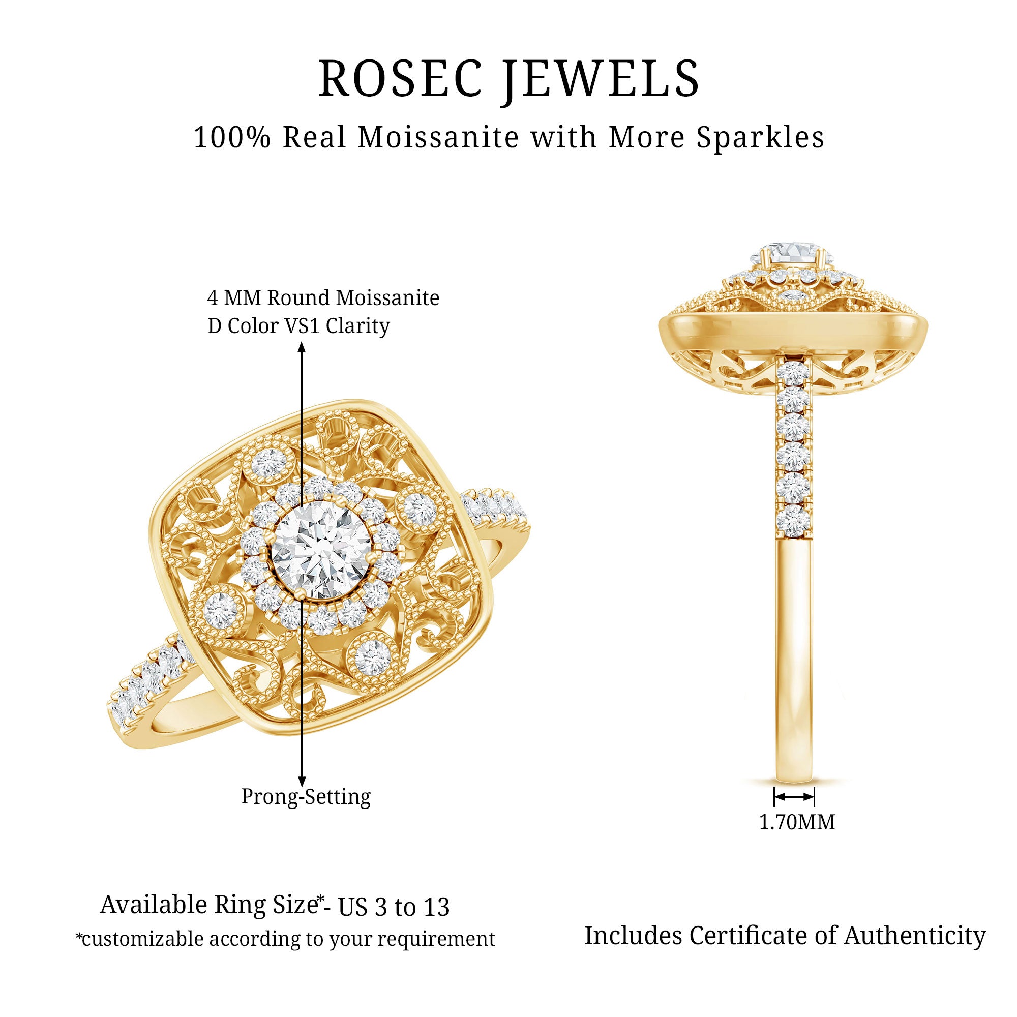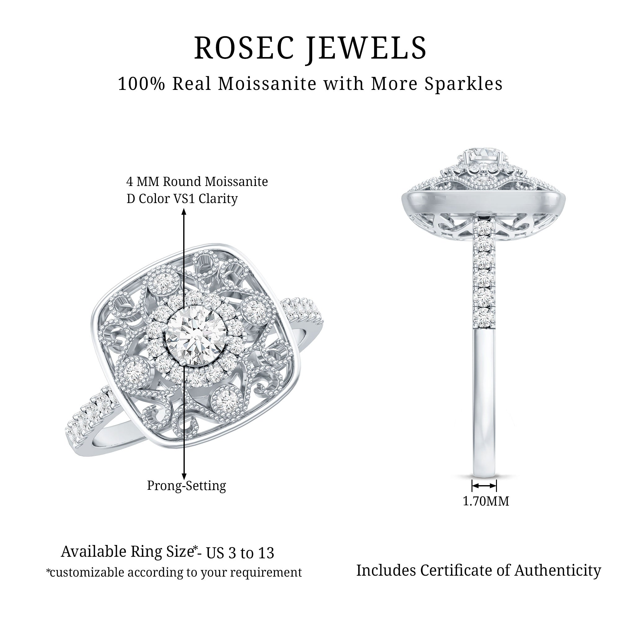 4. Vintage and Antique Styles: Vintage-inspired moissanite rings draw inspiration from different historical periods, and combine intricate designs, filigree work, and milgrain details. These rings exude a sense of timeless charm and sophistication.