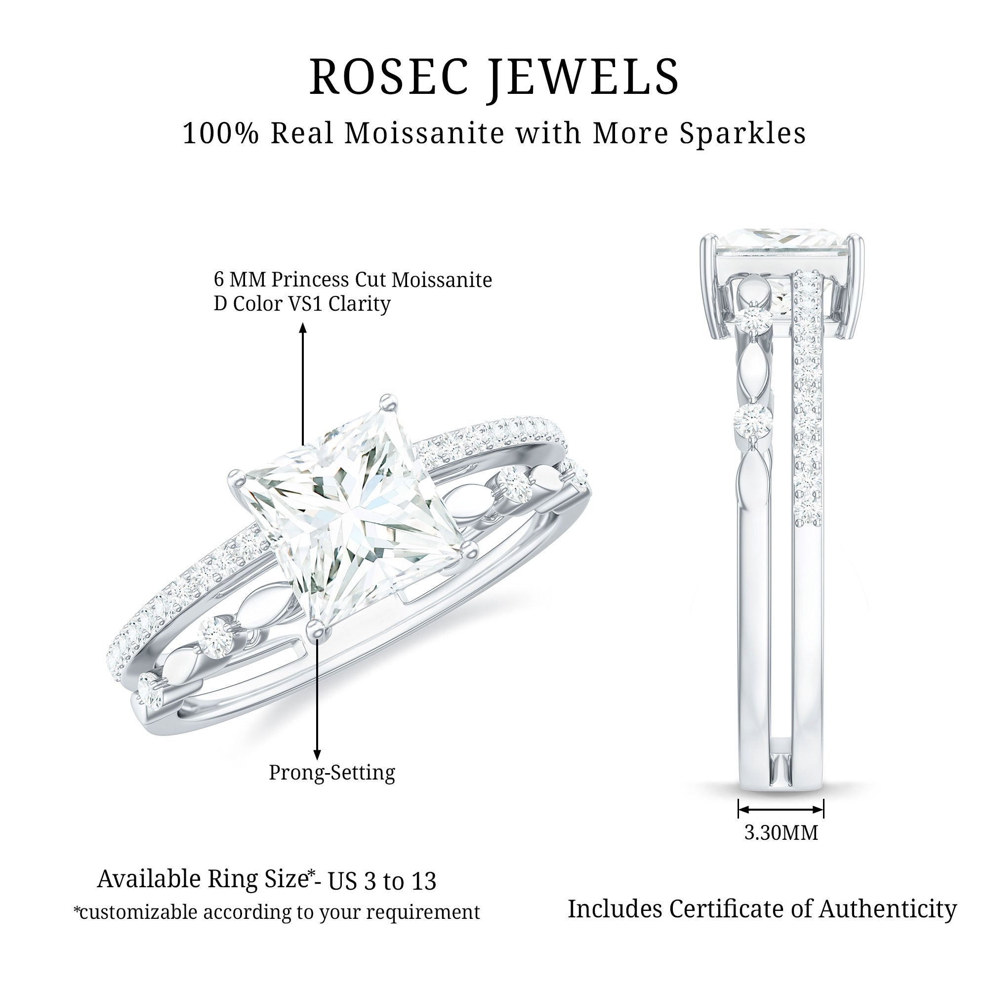 5. Moissanite Bridal Ring Sets: One of the popular choices for engagements and weddings is you can buy a ring set. The Bridal Ring Set is the perfect stacking combination of engagement rings and moissanite wedding rings. Two different styles create sets of rings that look premium and classy. The wedding band compliments the engagement ring and works as an enhancer.
