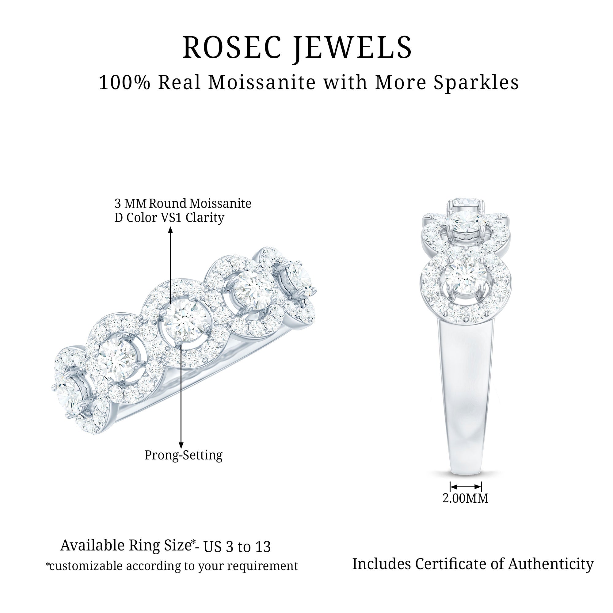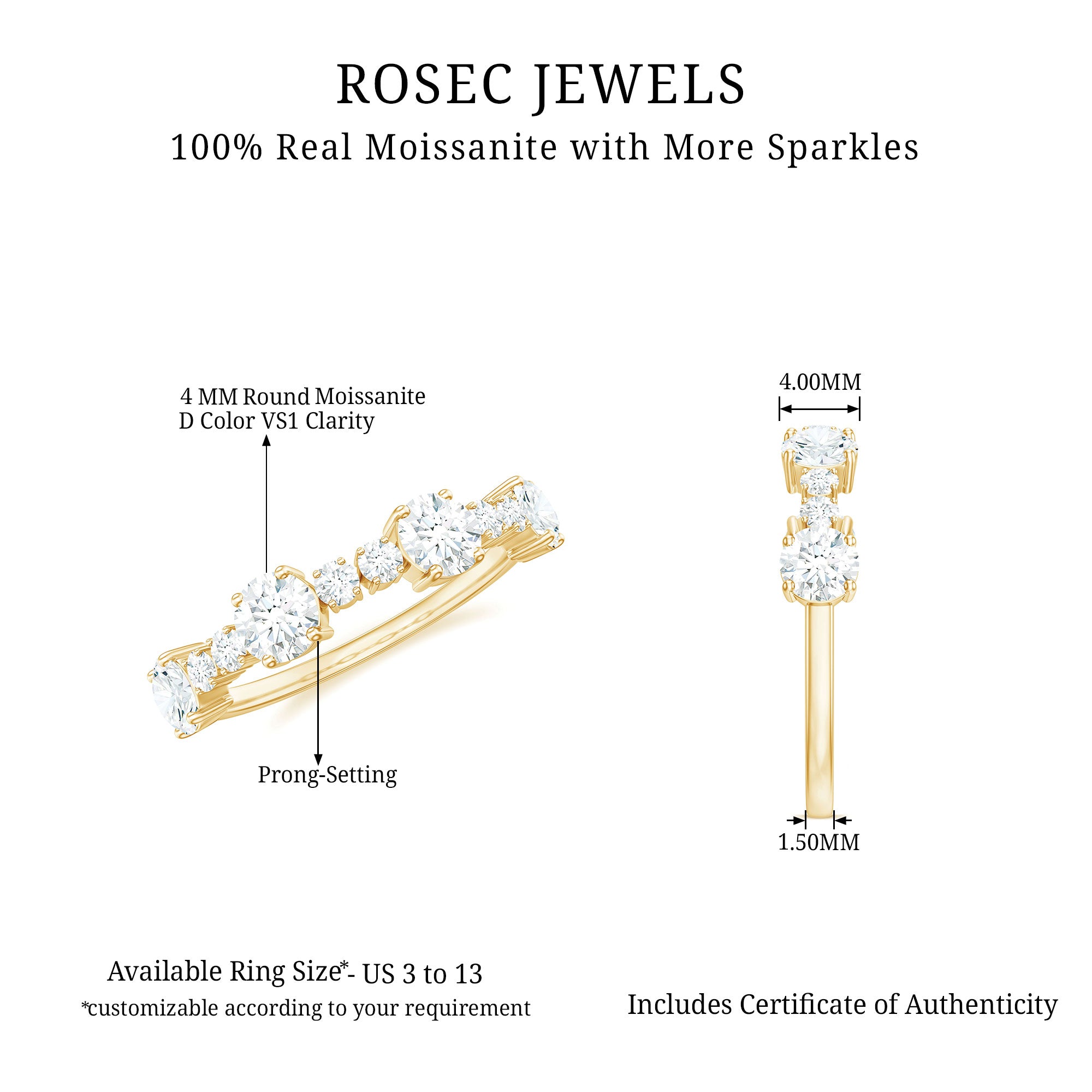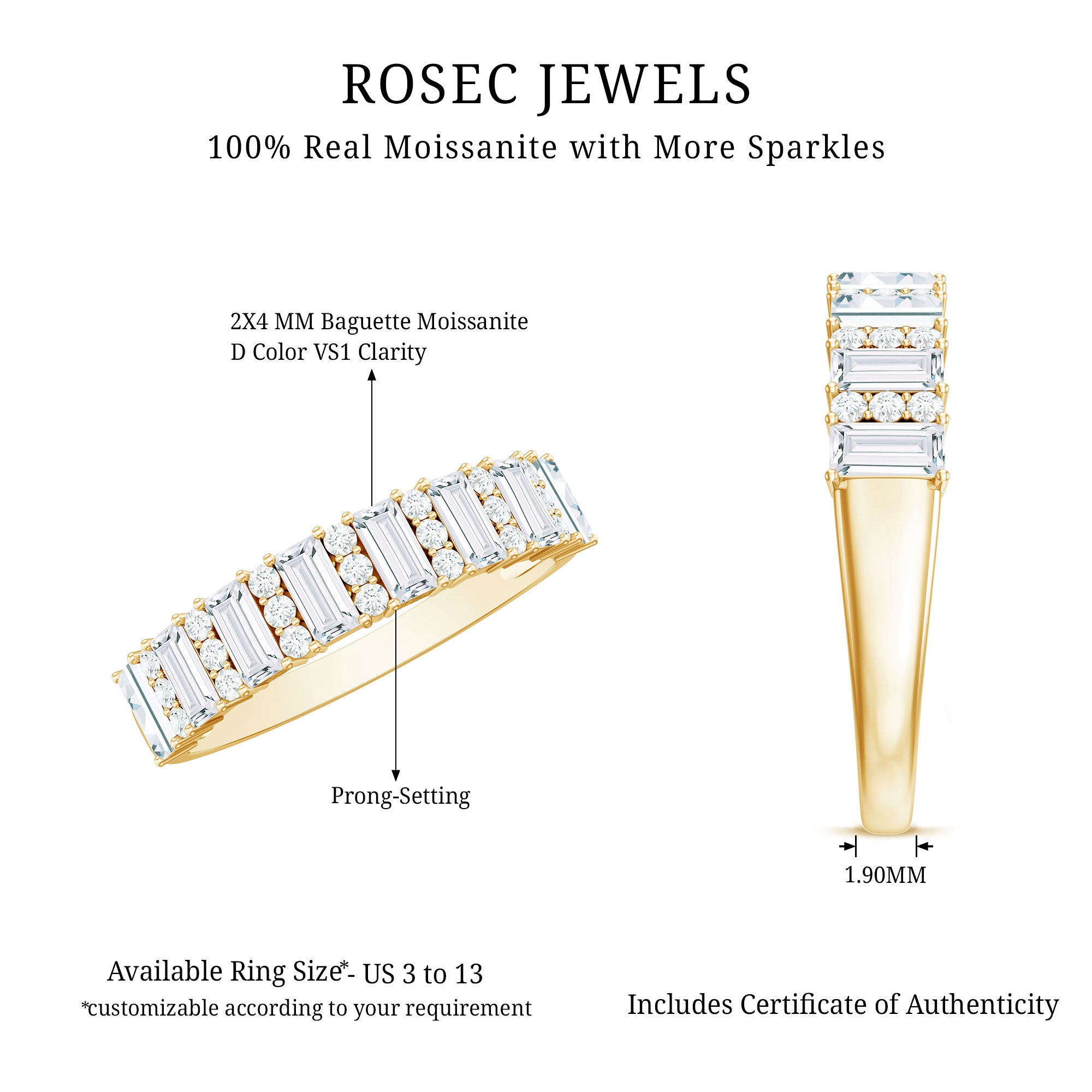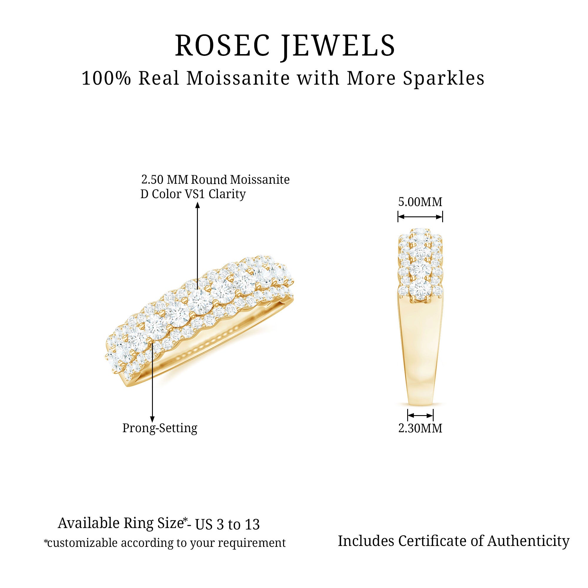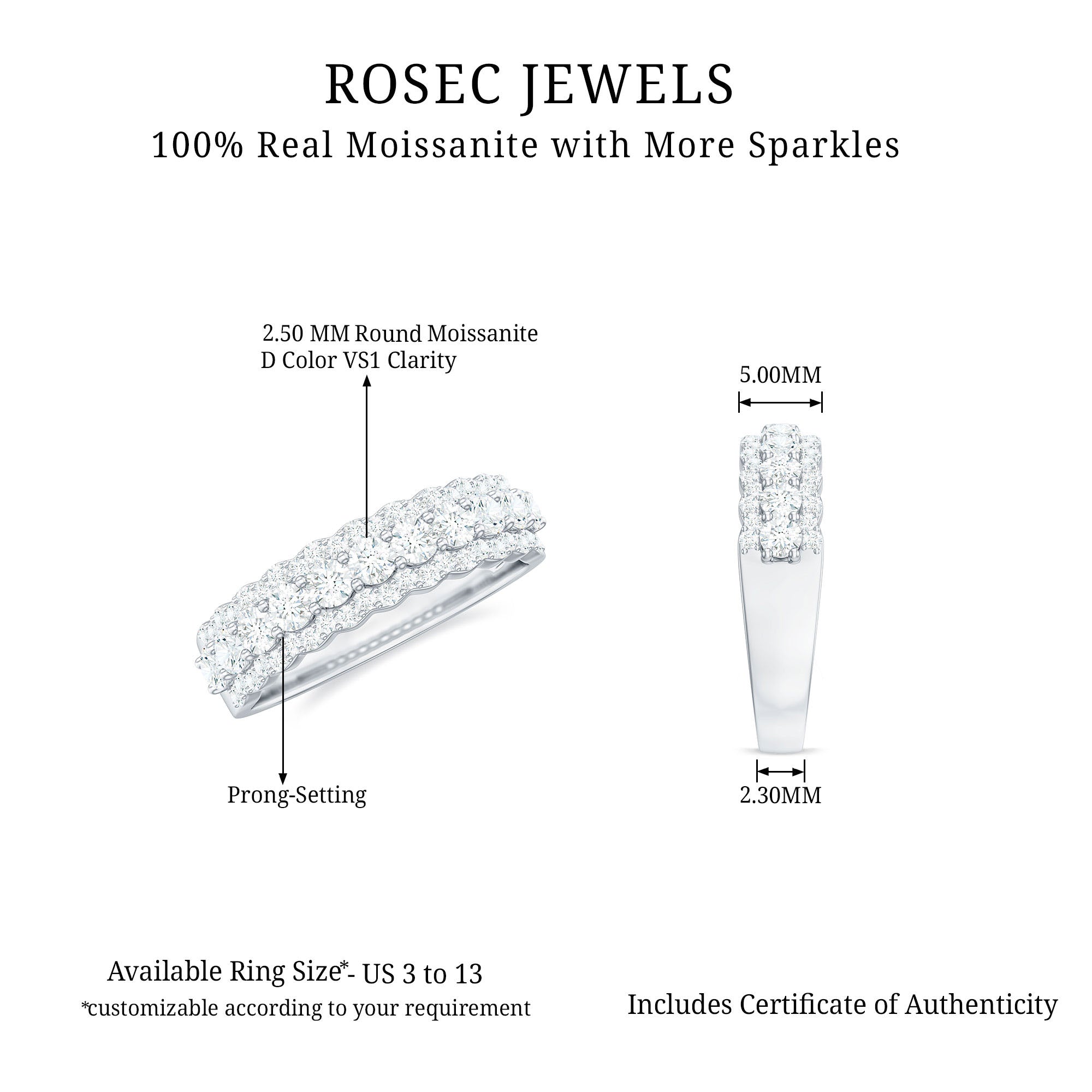 Rosec Jewels handcrafts moissanite wedding ring set with utmost care and perfection that you’ll fall in love with every single piece. The moissanite we choose to mount on men’s and women’s moissanite wedding bands are of highest quality. Moissanite is an ethical stone and now it has been widely accepted for traditional vows. So why don’t you witness the moissanite love in person?