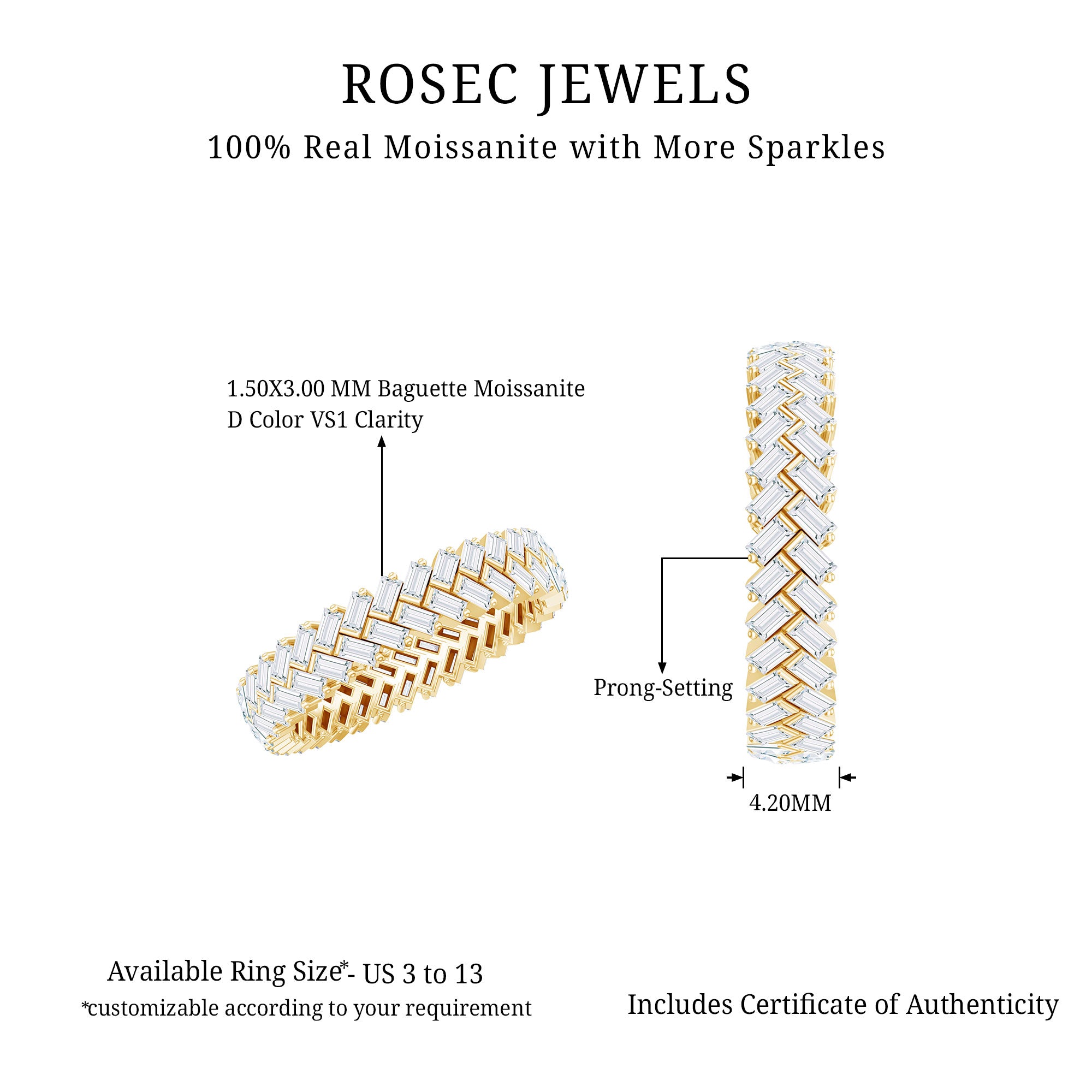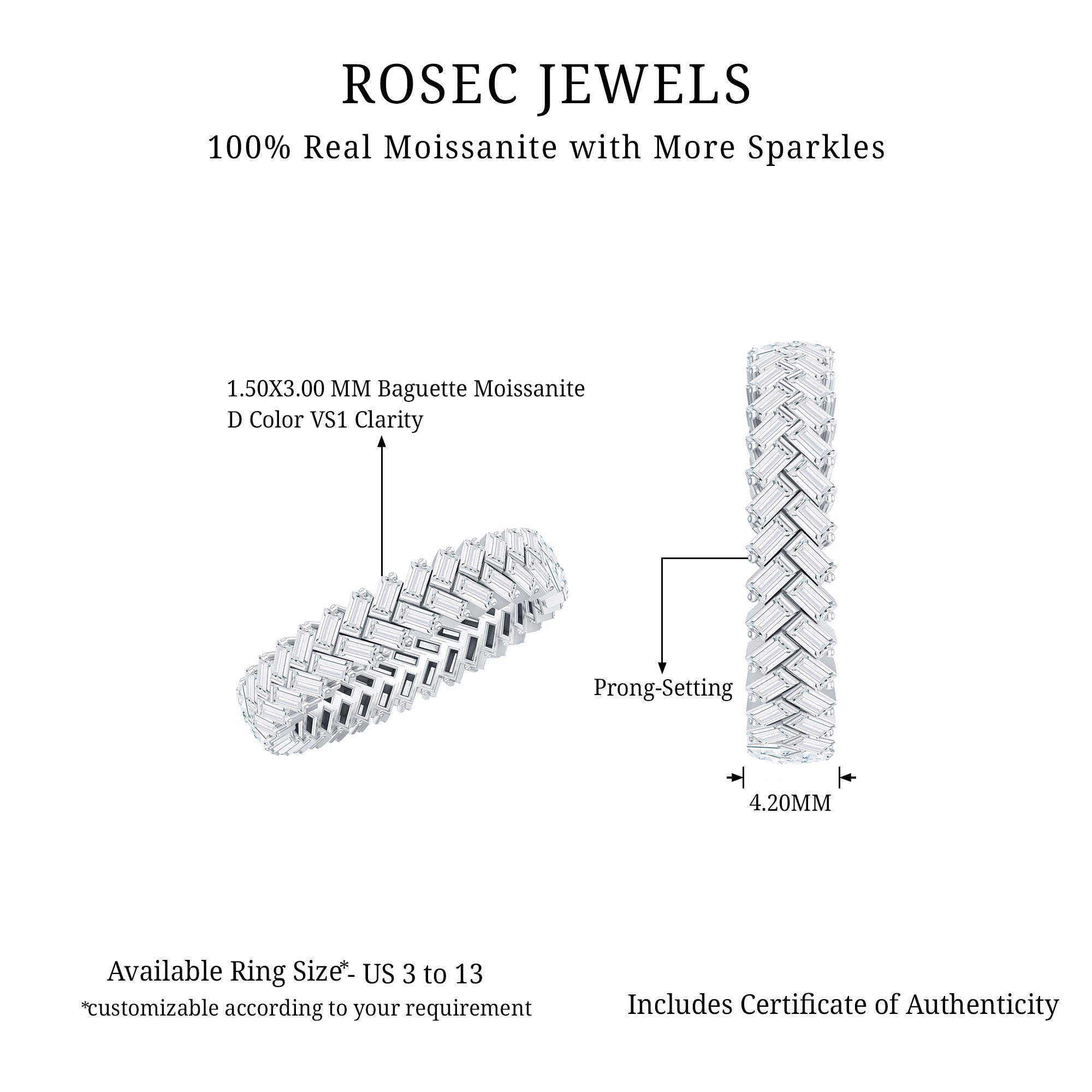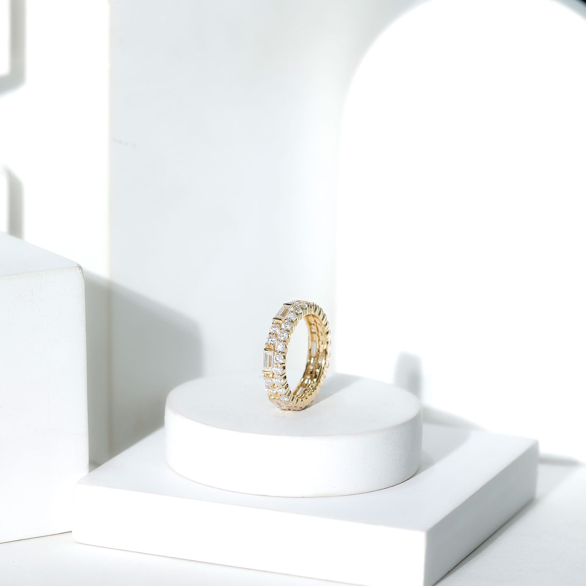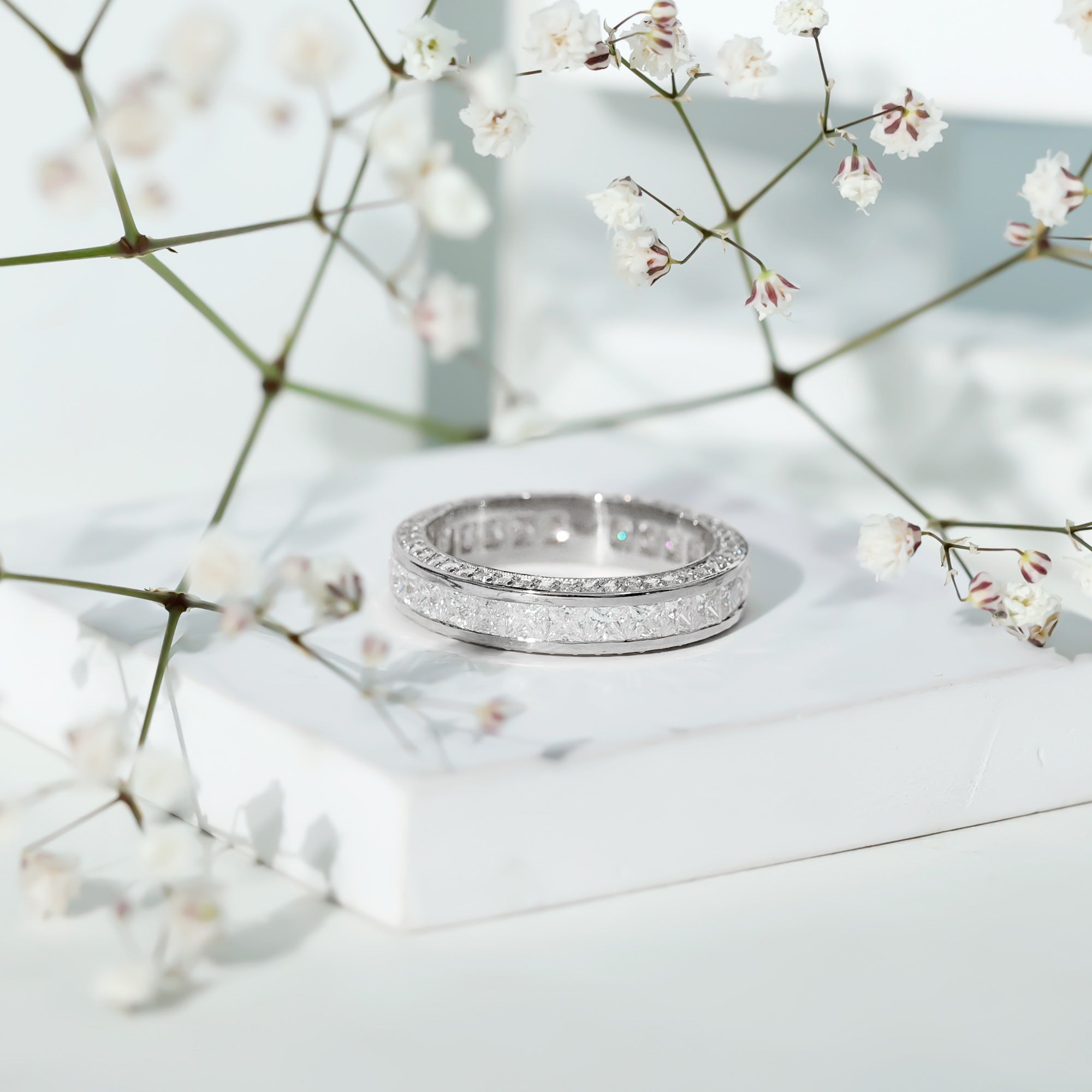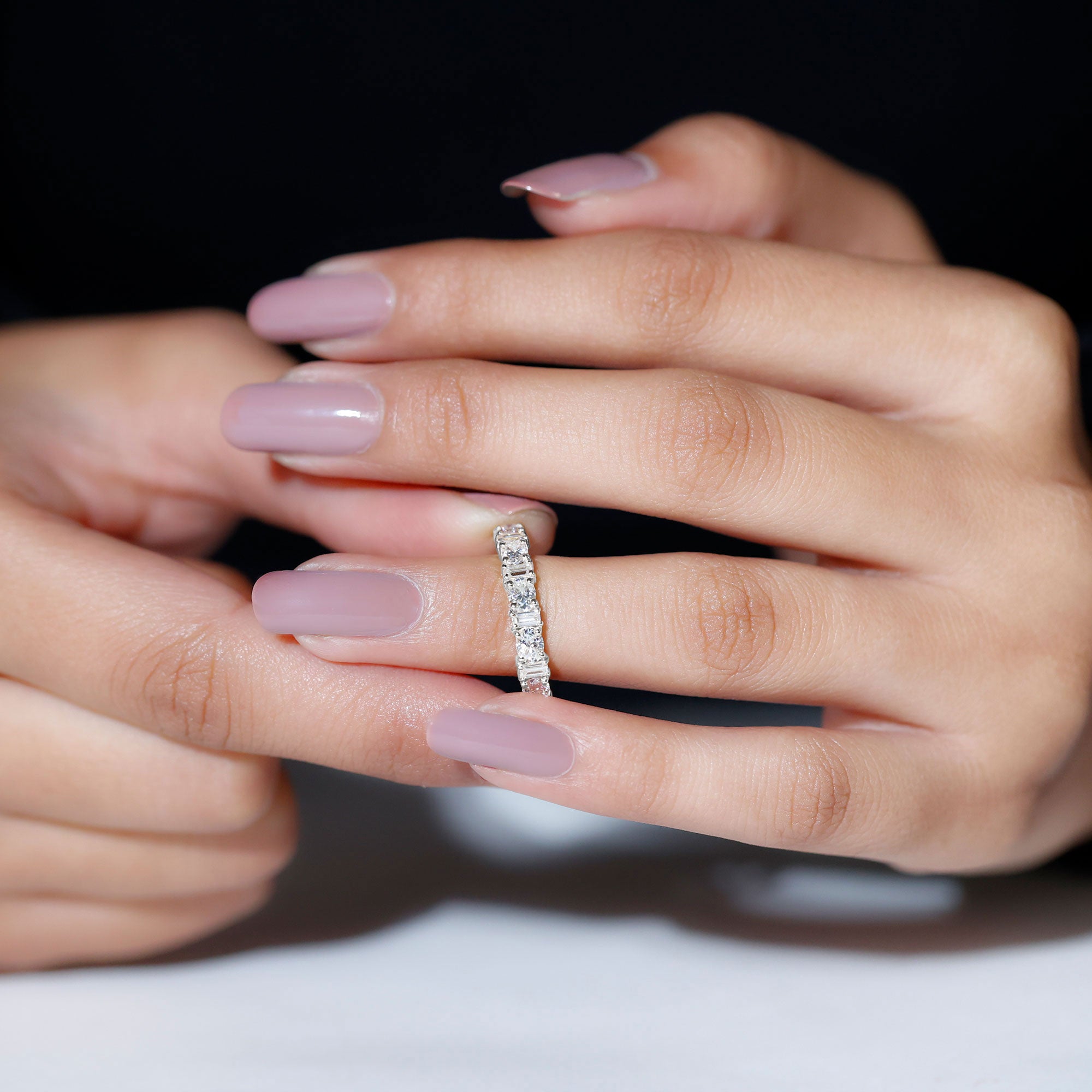 Moissanite is the best alternative to diamond for all the great reasons. The brilliant and fierce moissanite stackable wedding bands can withstand the test of time. Couple are considering moissanite wedding bands leaving behind the diamond ones as moissanite is pretty affordable. Being an Eco-friendly and cruelty-free stone gives moissanite a plus point for sustainability loving brides.