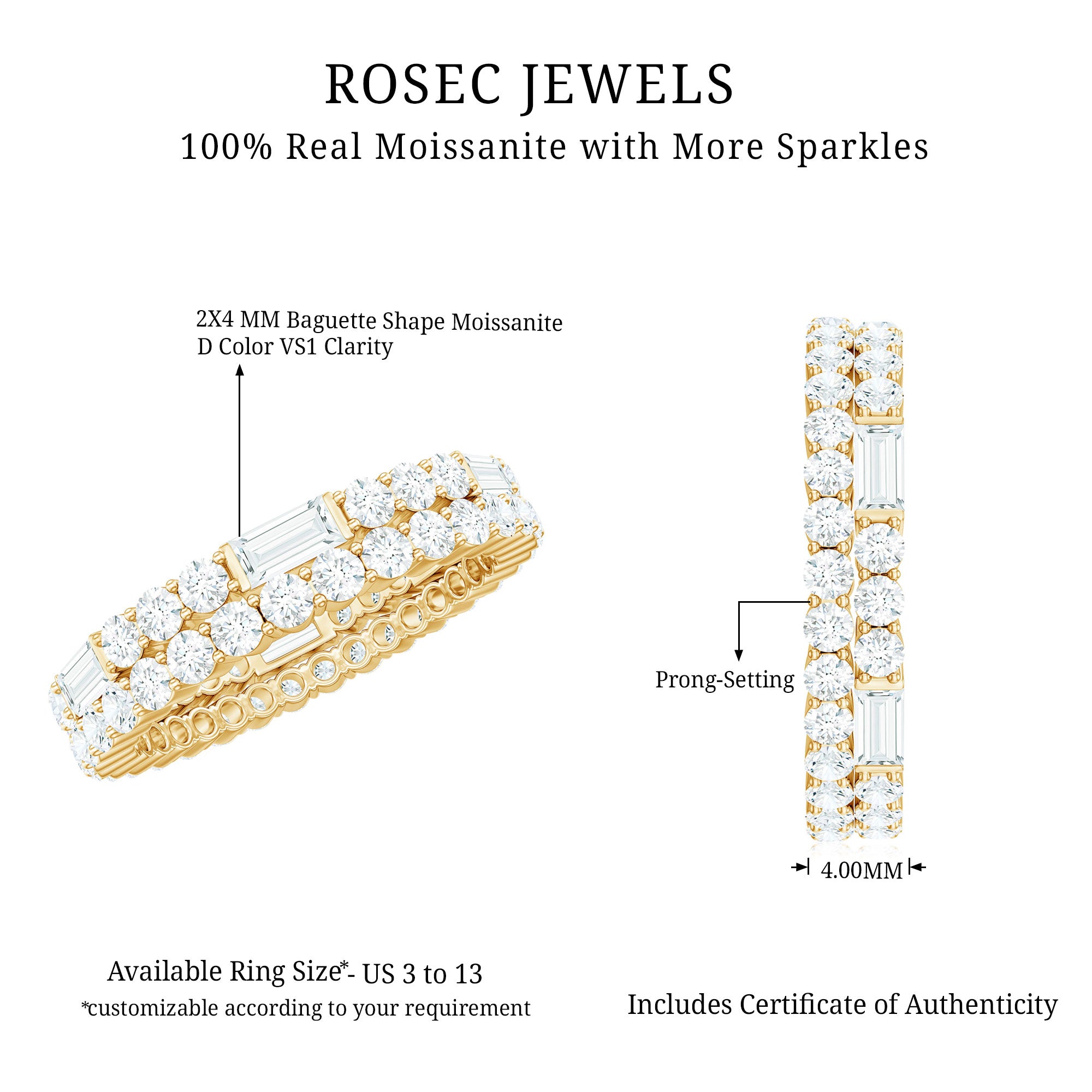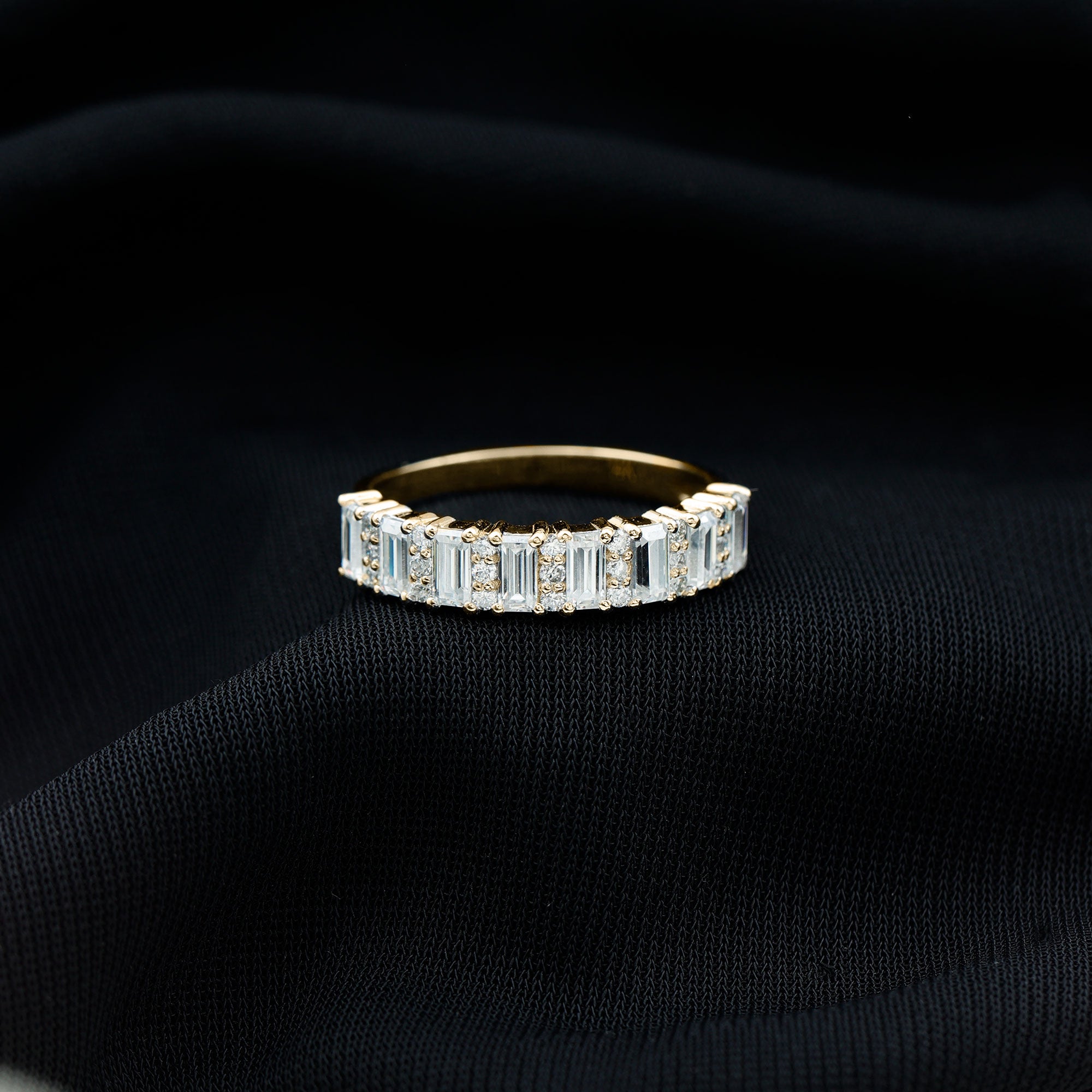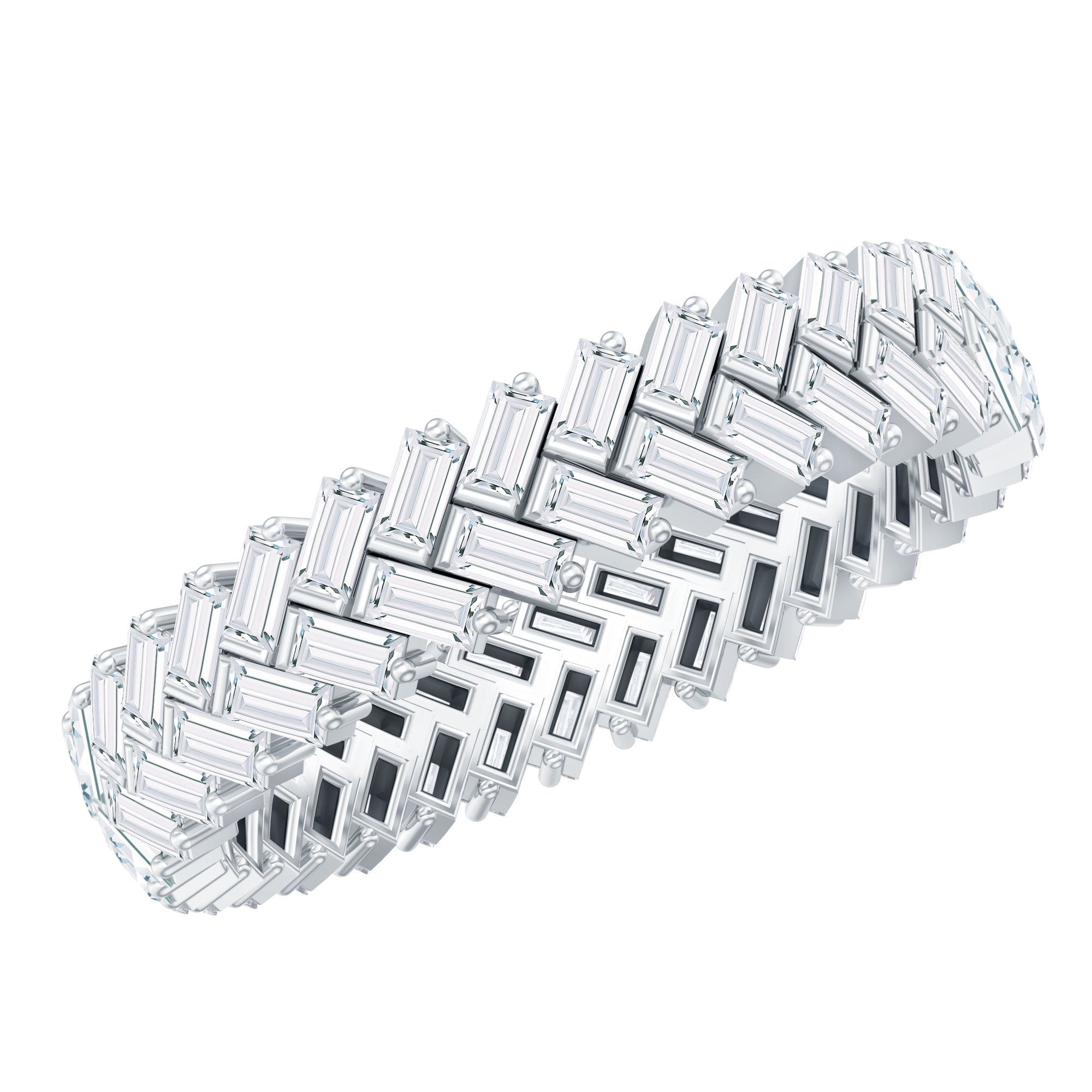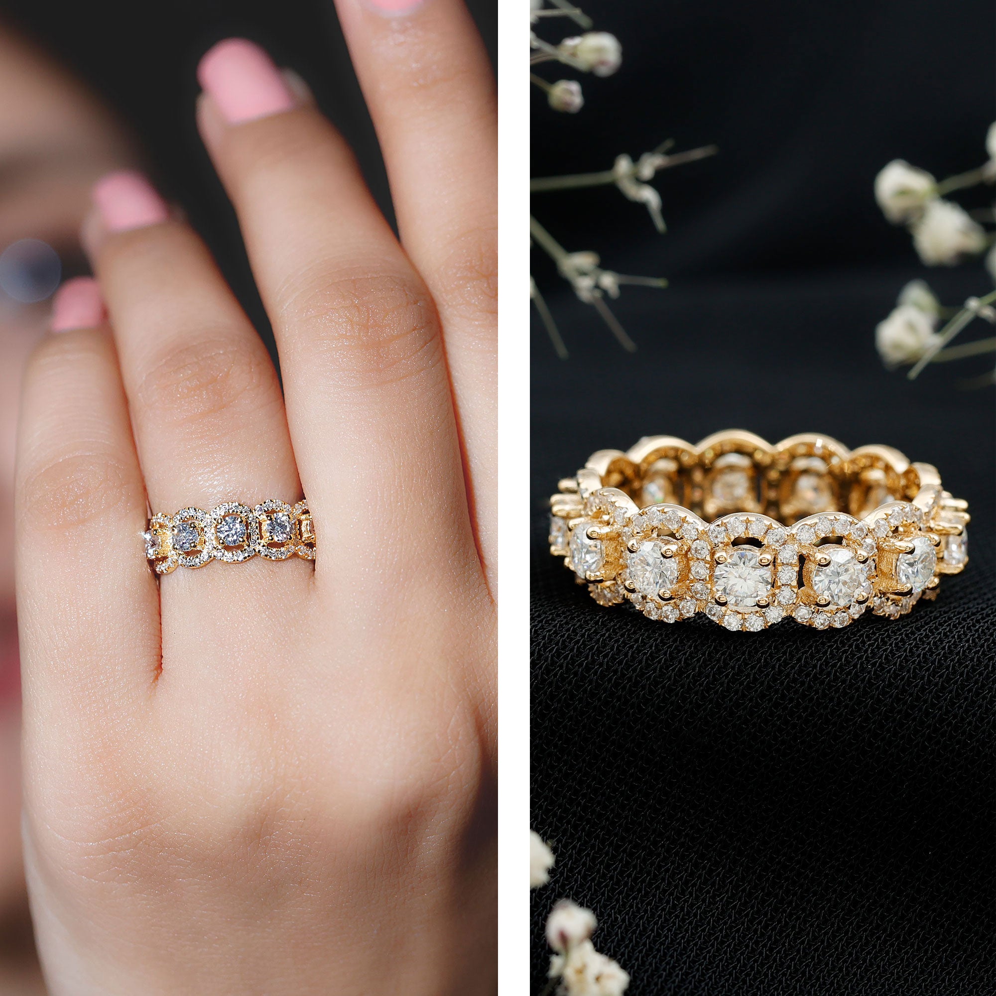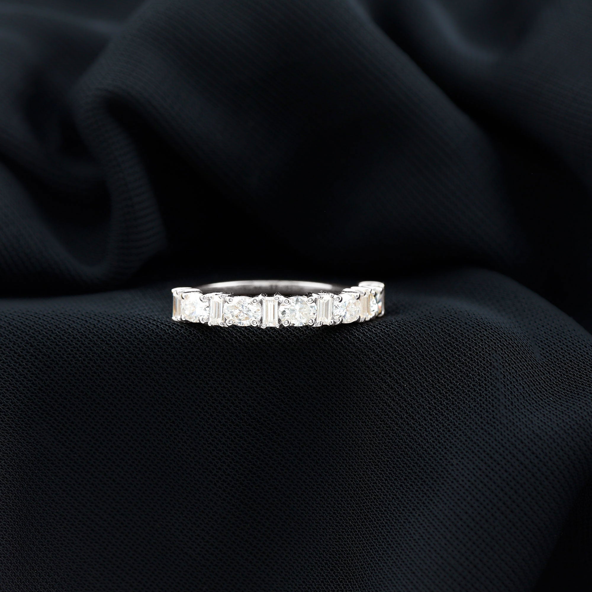 Moissanite is the best alternative to diamond for all the great reasons. The brilliant and fierce moissanite stackable wedding bands can withstand the test of time. Couple are considering moissanite wedding bands leaving behind the diamond ones as moissanite is pretty affordable. Being an Eco-friendly and cruelty-free stone gives moissanite a plus point for sustainability loving brides.