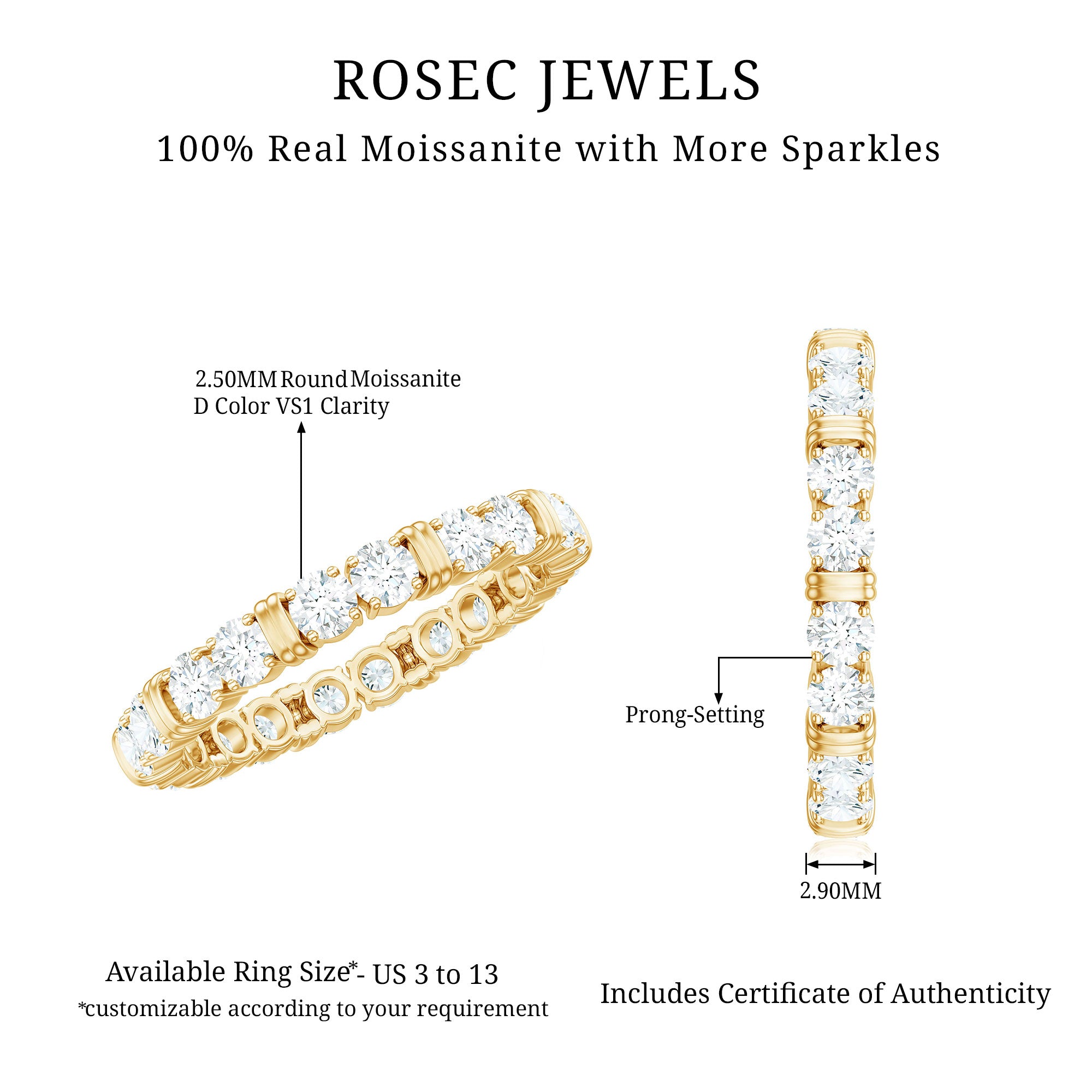 - Choose a metal tone: Metal color changes contrast and the overall “warm vs cool” look of the moissanite.