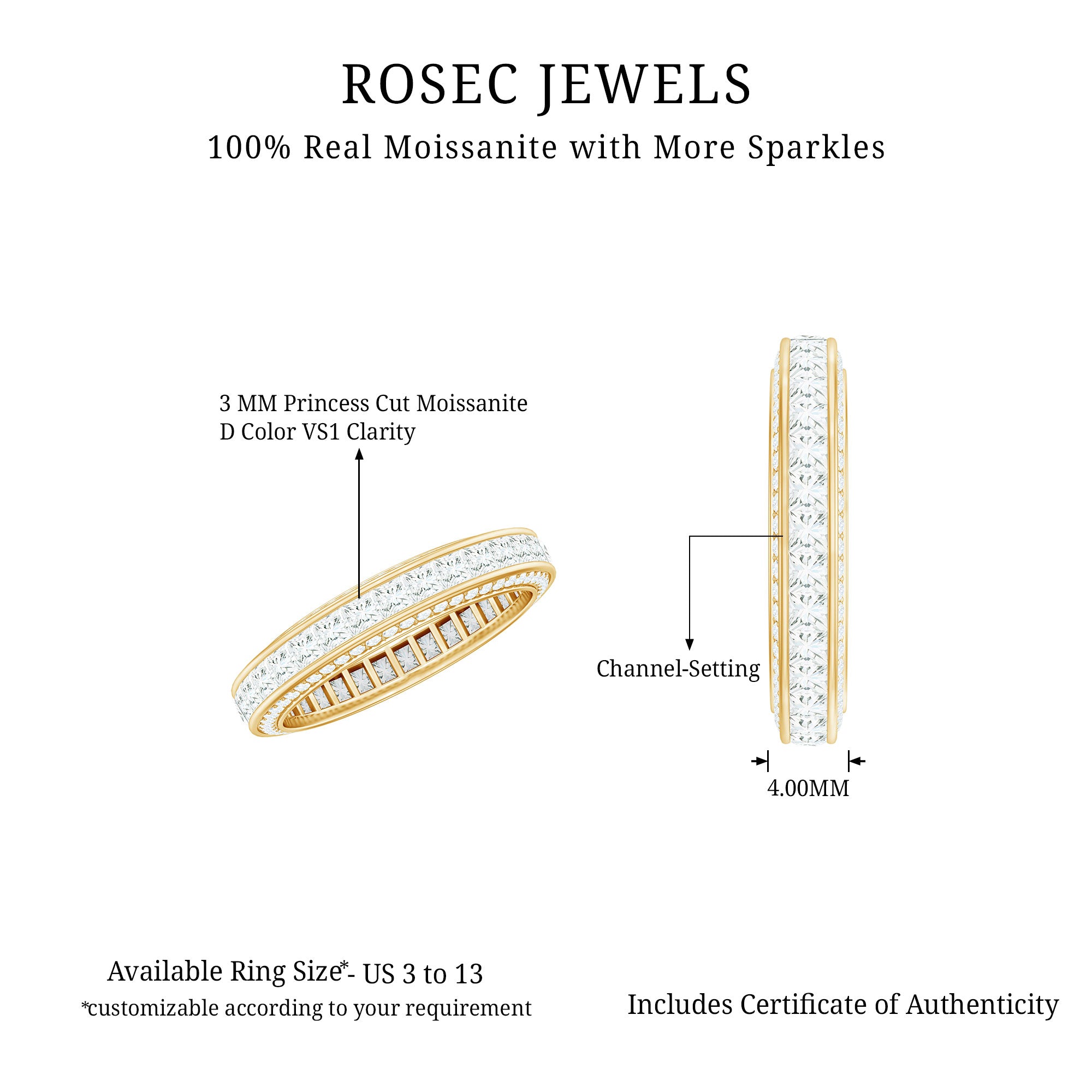 Moissanite has sparkle and fire similar to diamond, but jewelers can distinguish moissanite from diamond using appropriate testing tools. If this is important for you, choose a seller that clearly labels moissanite vs diamond and provides transparent product details.