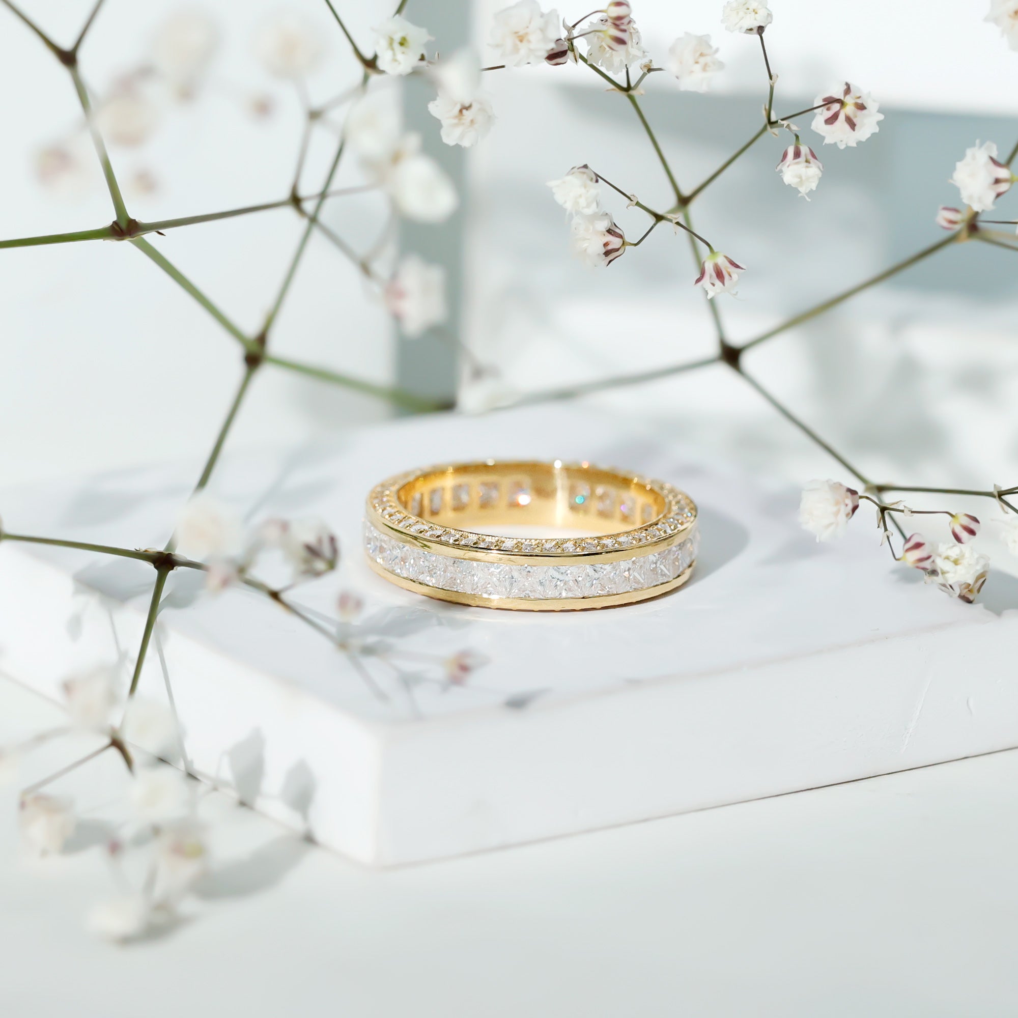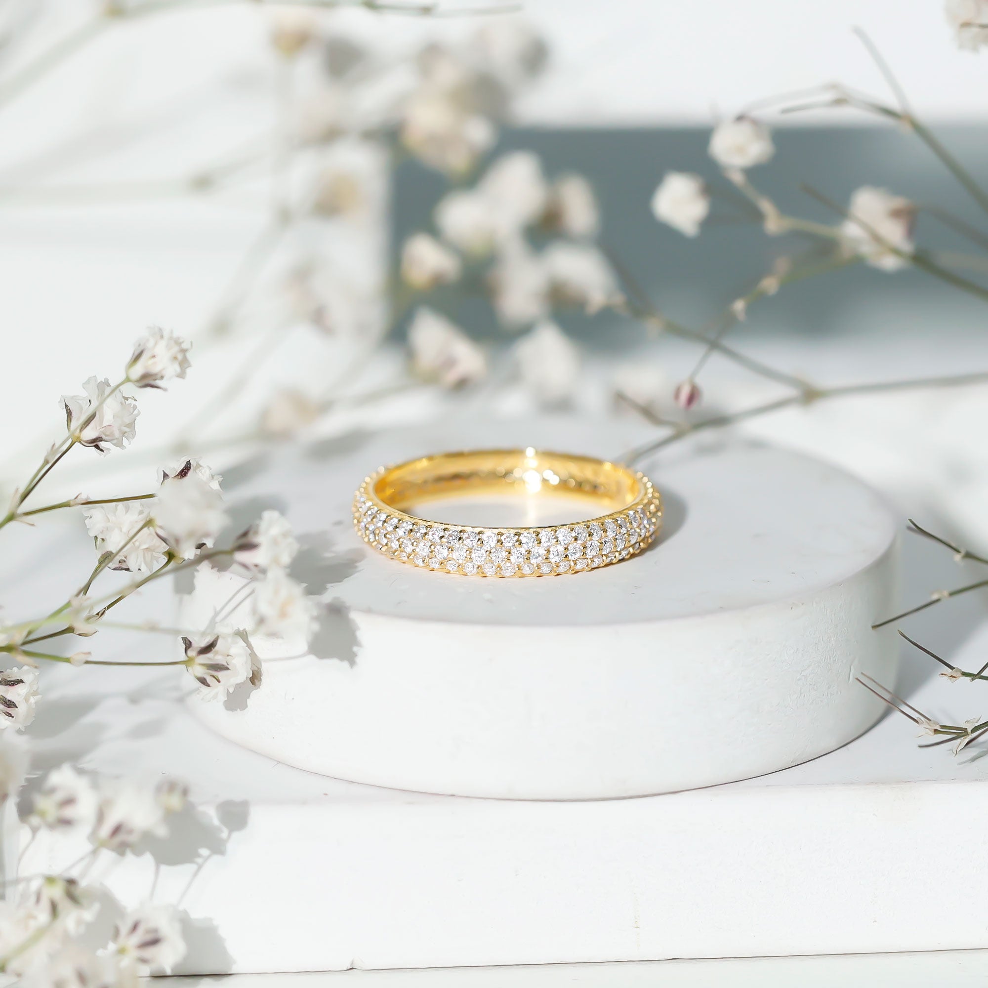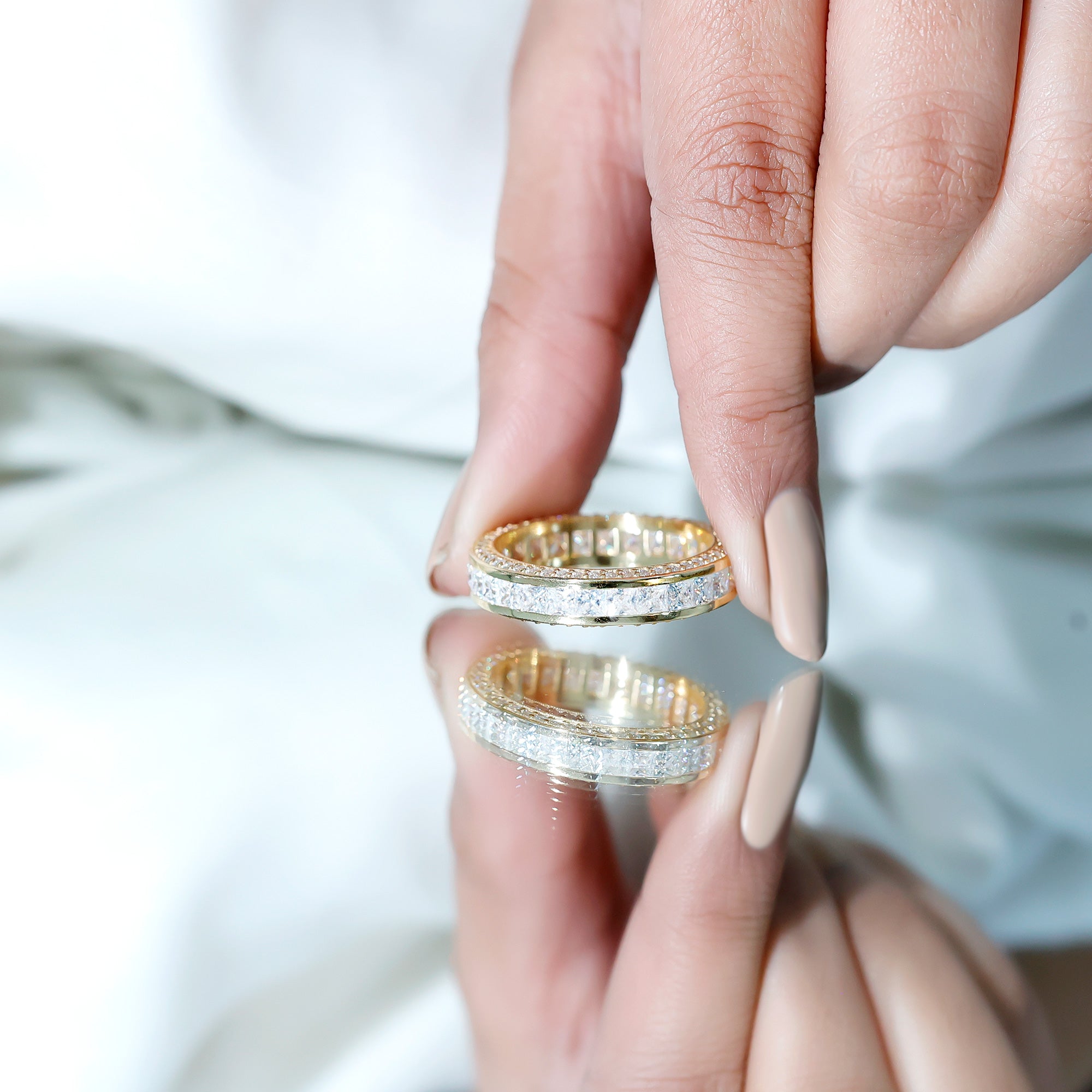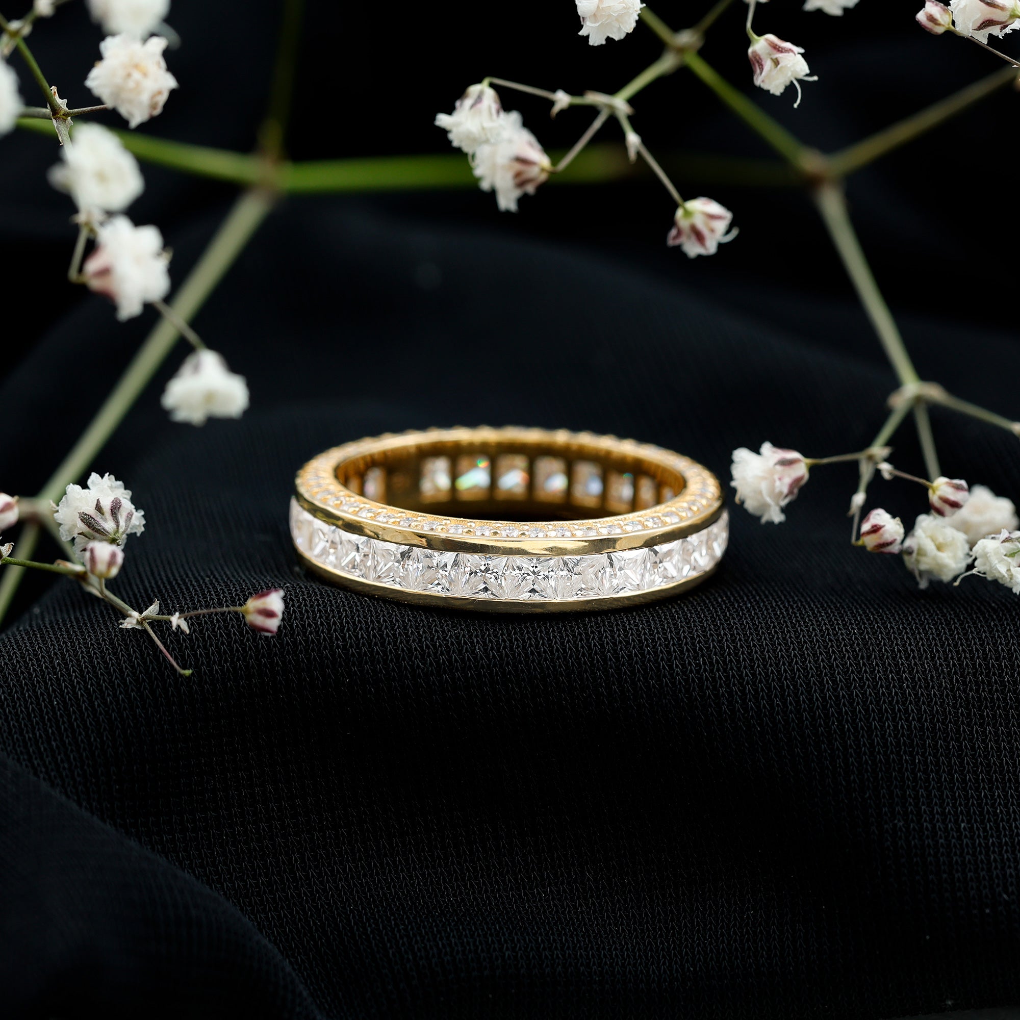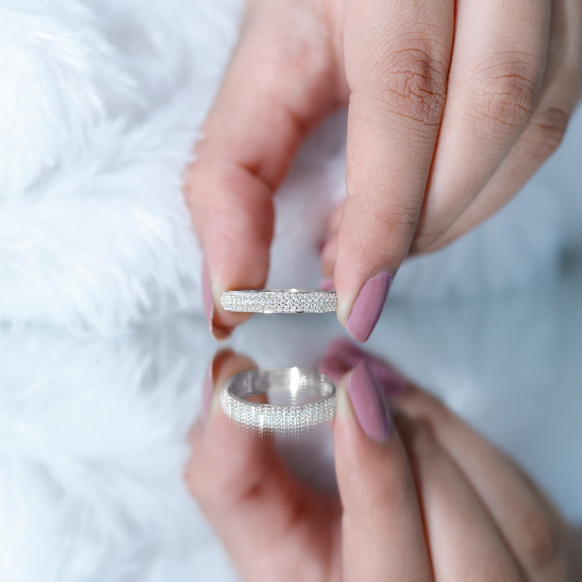 - Decide your sparkle level: Minimal accent bands are subtle; eternity-style bands deliver maximum shine.