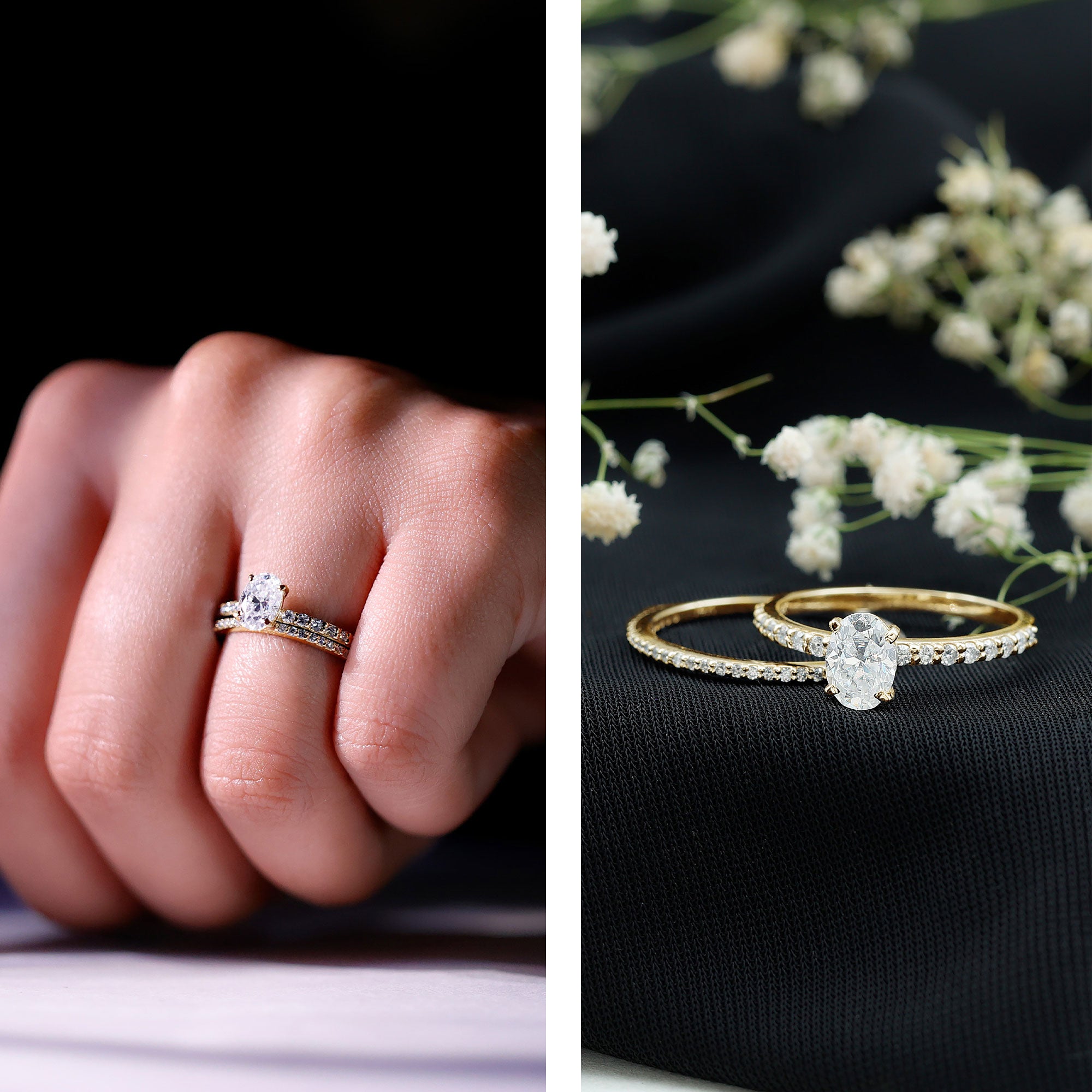 - Match your engagement ring: If you’re pairing with a solitaire or halo ring, choose a band profile that sits comfortably beside it.