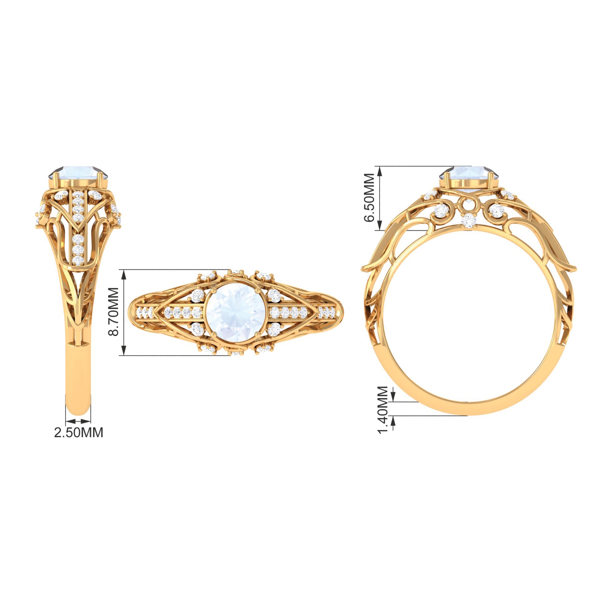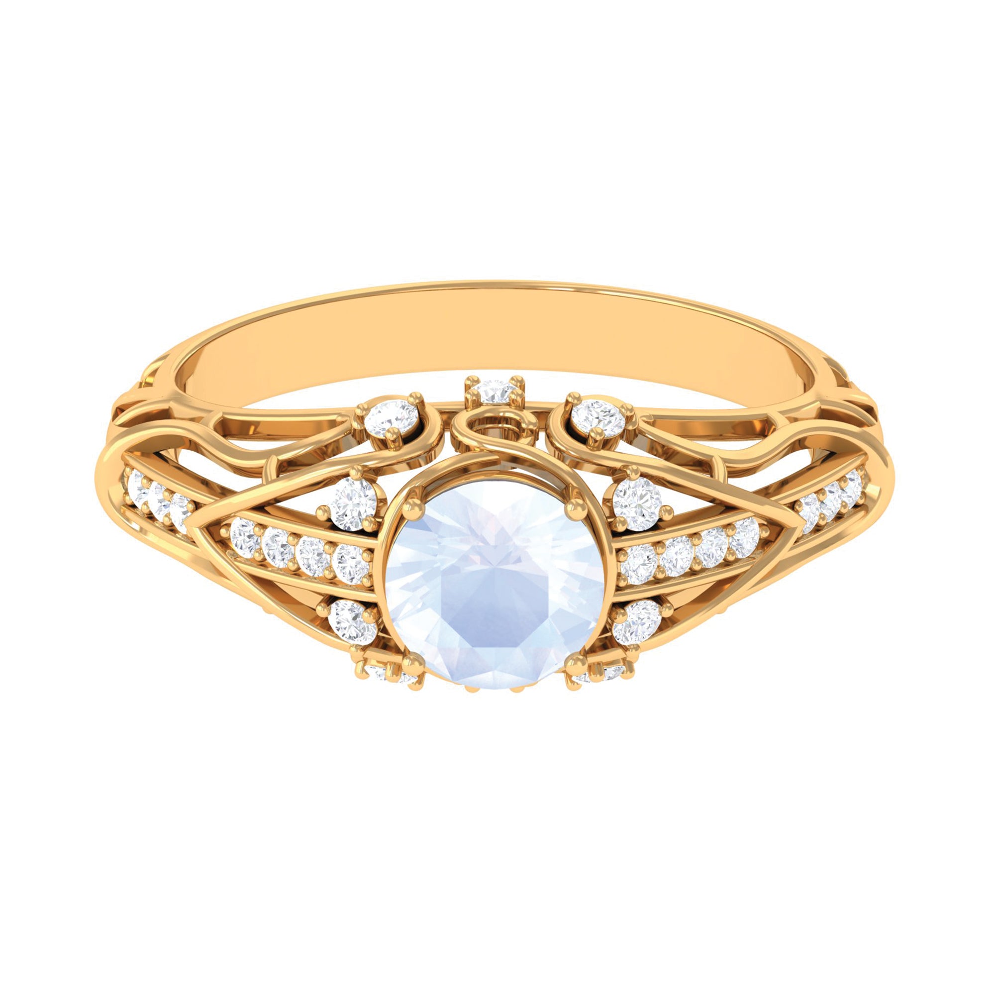 Moonstone Designer Engagement Rings: - for engagement day, our moonstone designer engagement rings won't go wrong. They are really special, as they feature elaborate designs showing the beauty of the moonstone gems. Made with perfection, our expert artists crafted these moonstone designer rings with fancy details that make the center stone even more shiny and attractive. Some rings have designer patterns that are drawn from old eras, while other rings are graced by small diamonds or moissanite to make them more classic, and can be a perfect companion for your engagement attires.