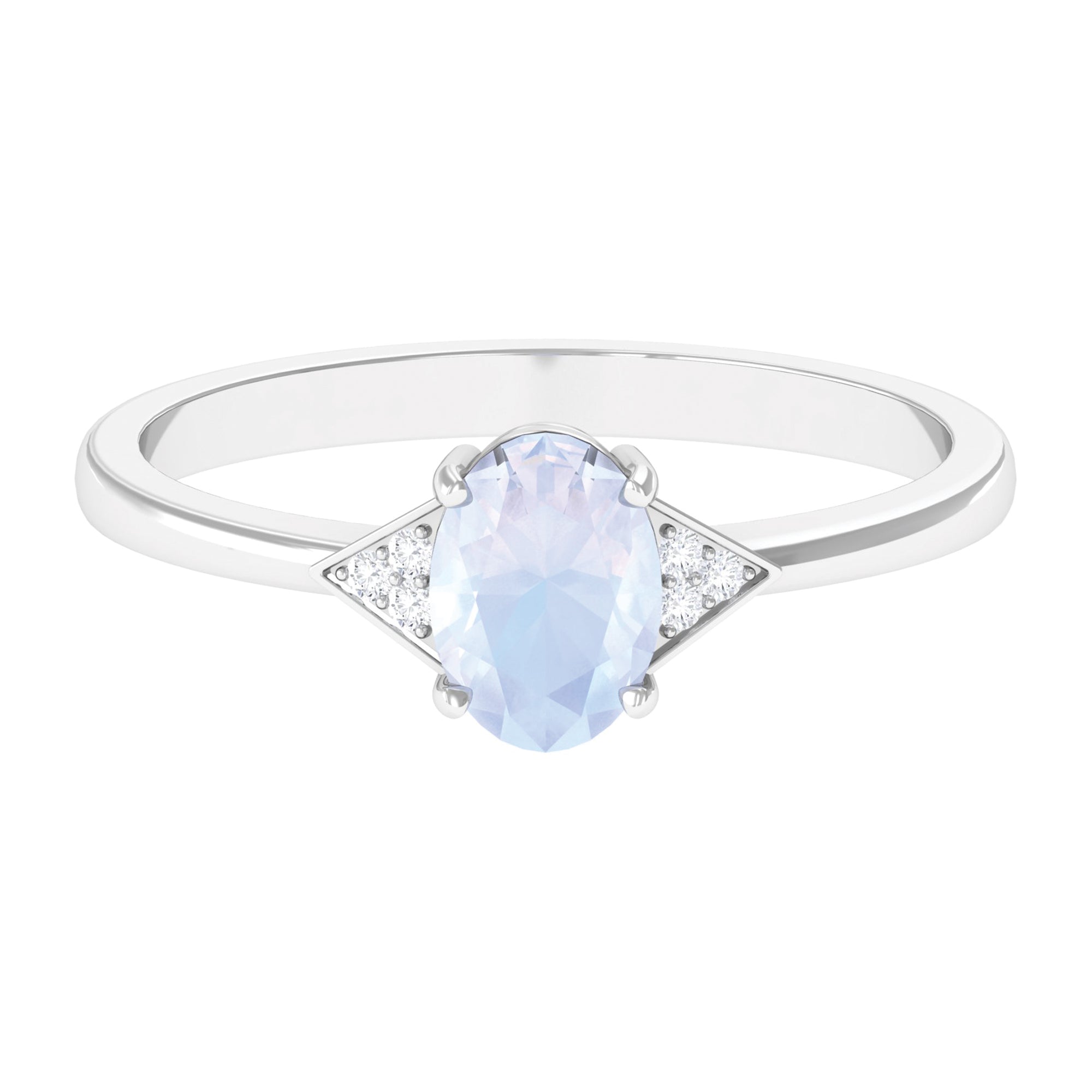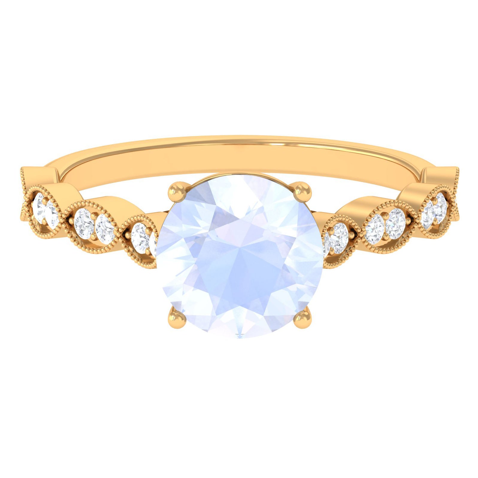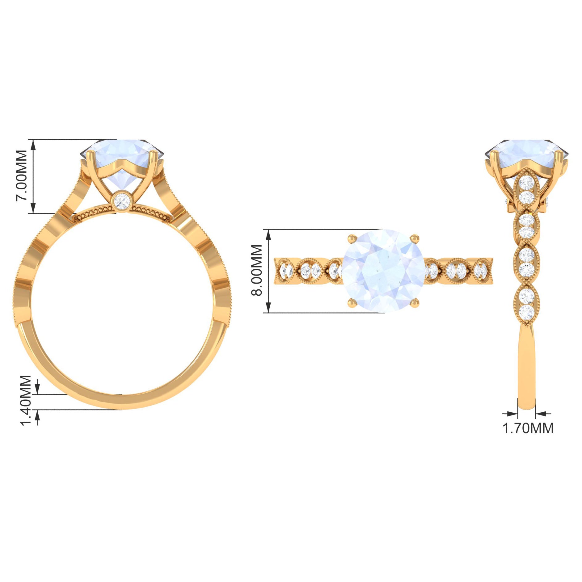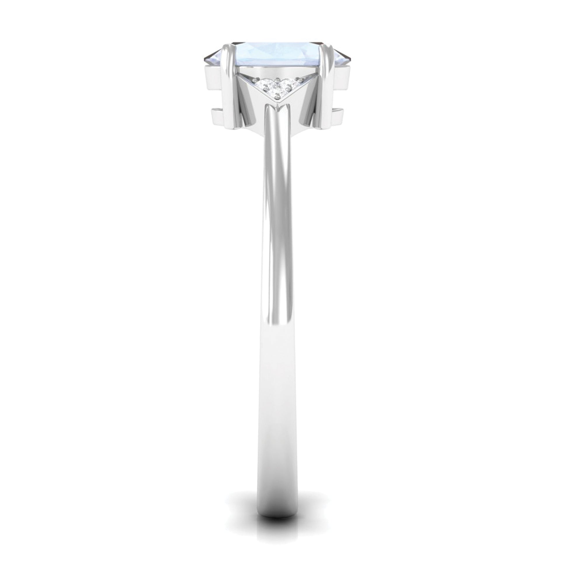 Easily the most sophisticated and Simple Moonstone Ring in the entire collection, a Solitaire Style features the Centerpiece of a Moonstone (of any shape) that stands out on its own. The Moonstone Solitaire here is at least 6 MM in size, which also makes it a one-of-a-kind choice of Moonstone Engagement Ring. It is fashioned in a versatile number of shapes that cater to just as many senses of style. While a Round or Oval Moonstone Ring exudes a conventional touch, a ring adorned with a princess, marquise, or pear-cut Moonstone is more on the fancier side of the spectrum. On the other hand, if you’re on the hunt for an Antique Moonstone Ring, go for the one fashioned in Emerald, Cushion, or Asscher cut Center stone.