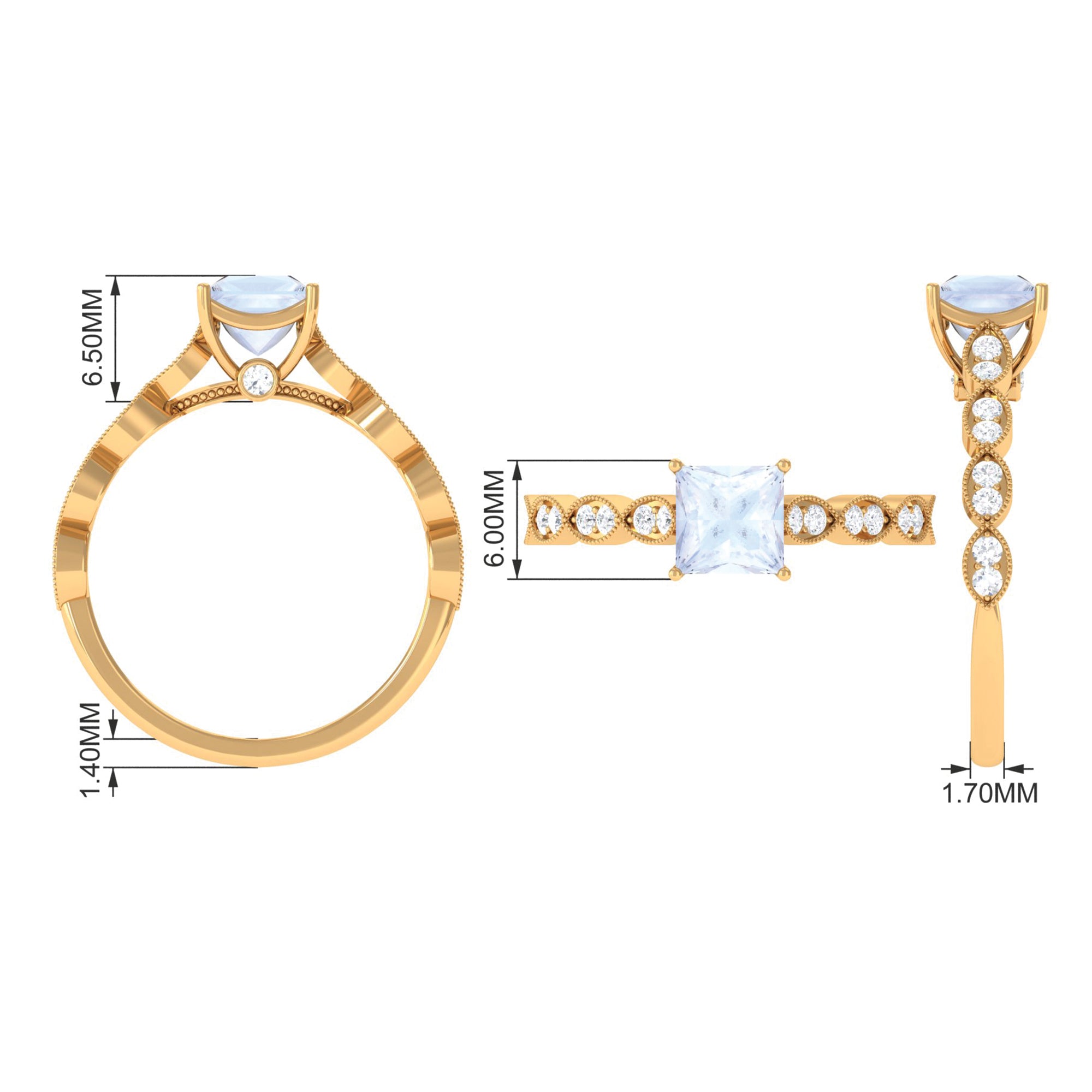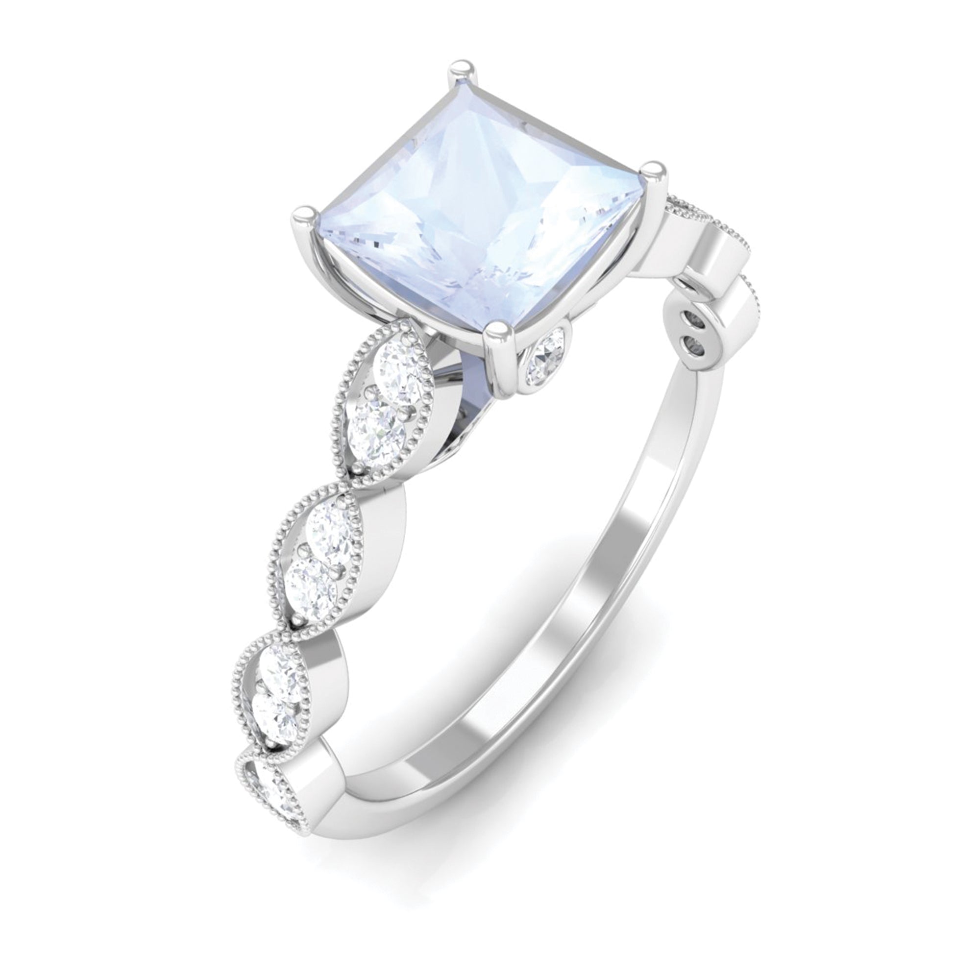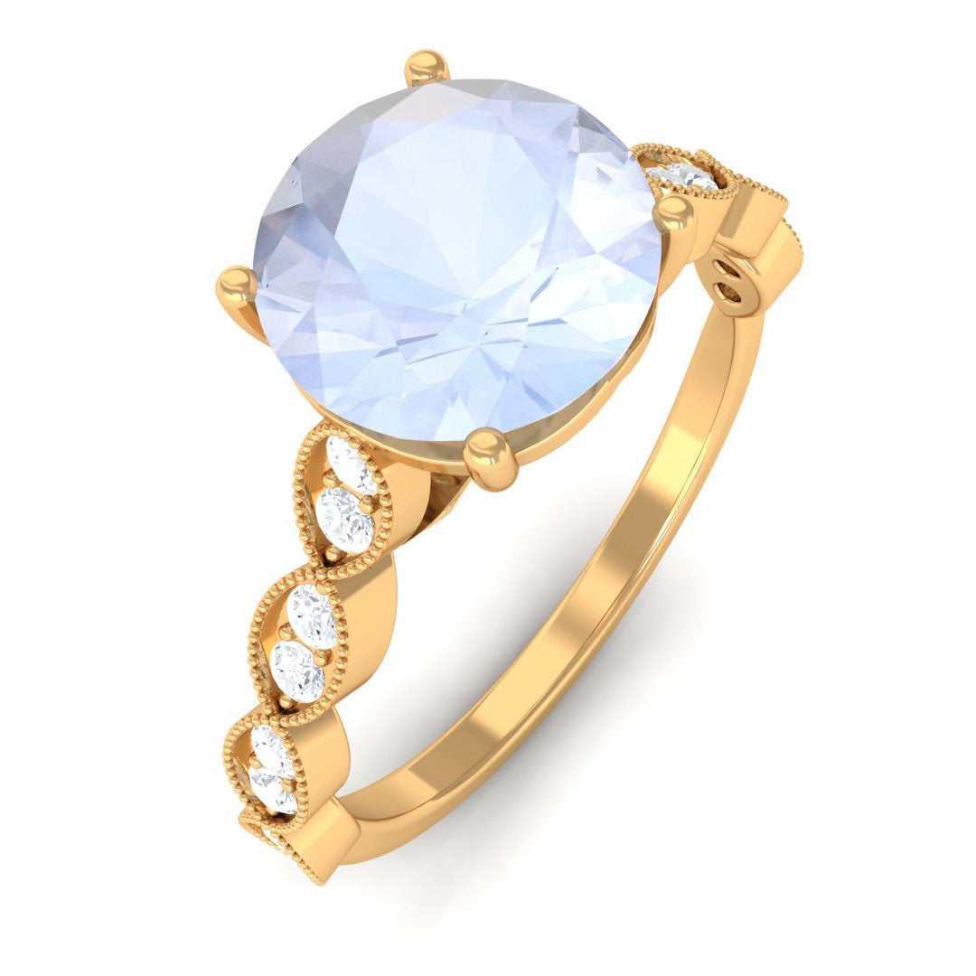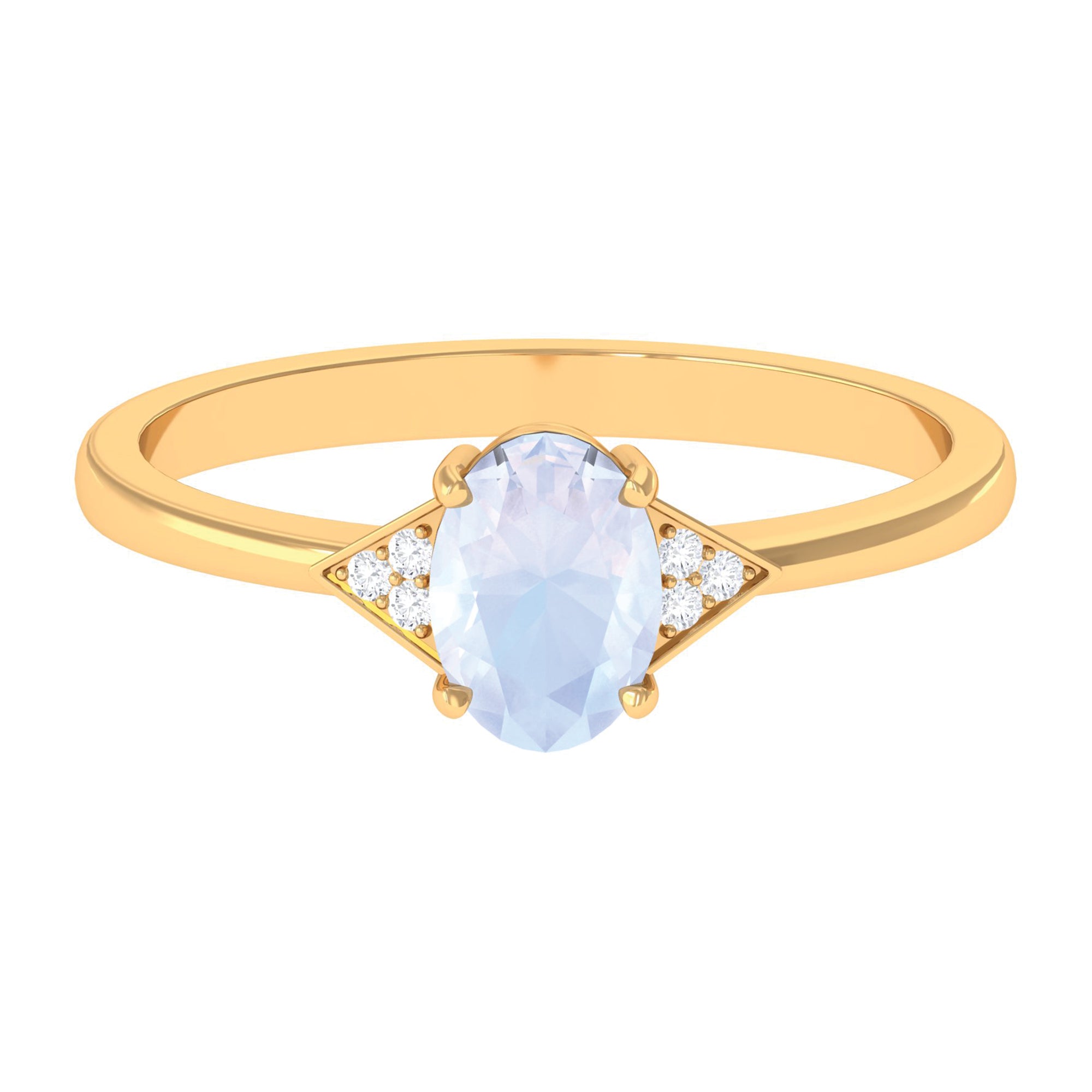 Easily the most sophisticated and Simple Moonstone Ring in the entire collection, a Solitaire Style features the Centerpiece of a Moonstone (of any shape) that stands out on its own. The Moonstone Solitaire here is at least 6 MM in size, which also makes it a one-of-a-kind choice of Moonstone Engagement Ring. It is fashioned in a versatile number of shapes that cater to just as many senses of style. While a Round or Oval Moonstone Ring exudes a conventional touch, a ring adorned with a princess, marquise, or pear-cut Moonstone is more on the fancier side of the spectrum. On the other hand, if you’re on the hunt for an Antique Moonstone Ring, go for the one fashioned in Emerald, Cushion, or Asscher cut Center stone.