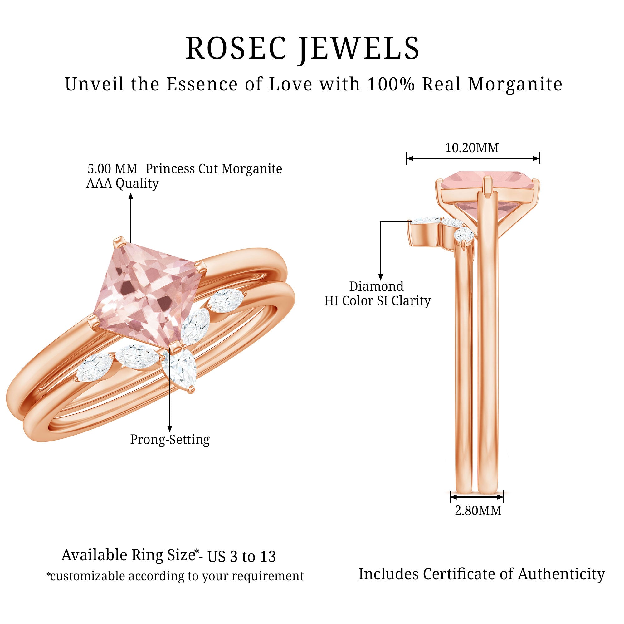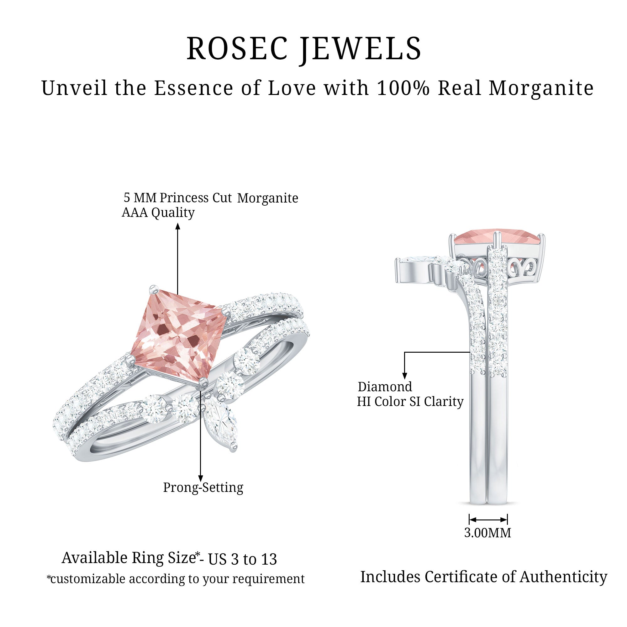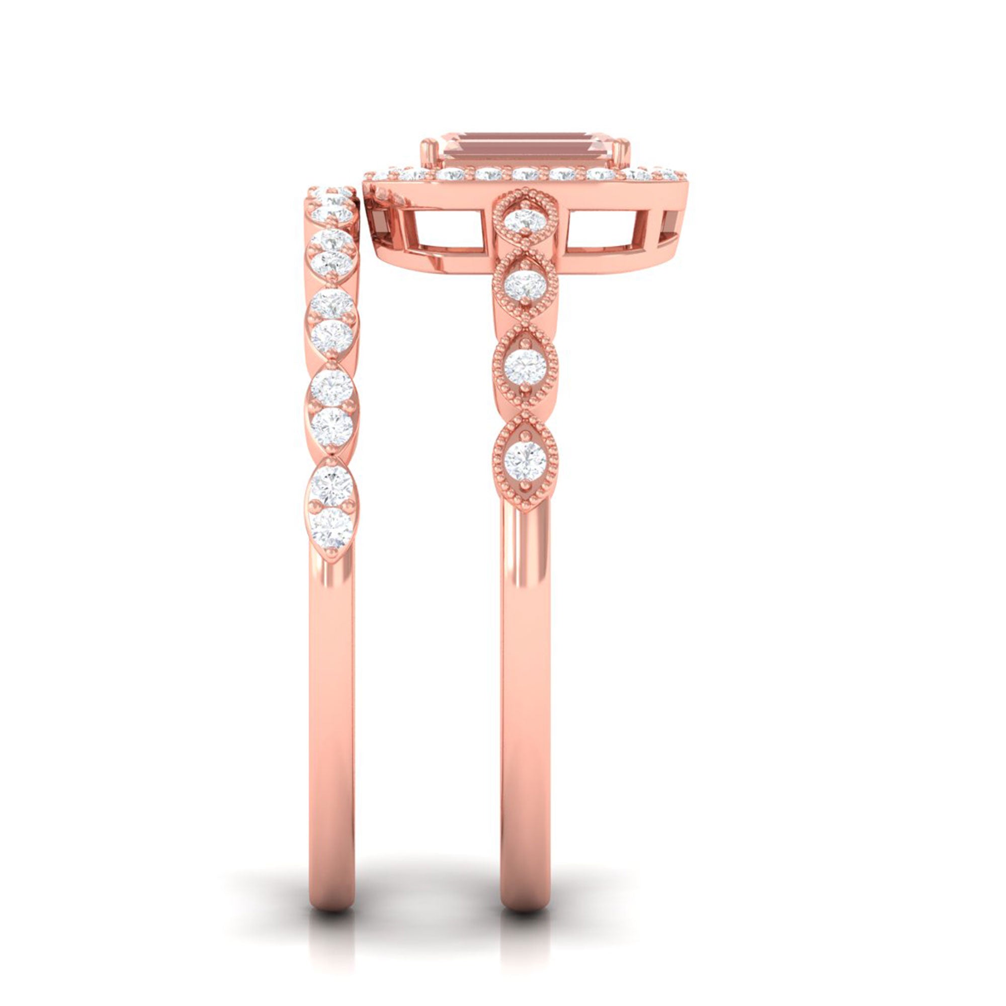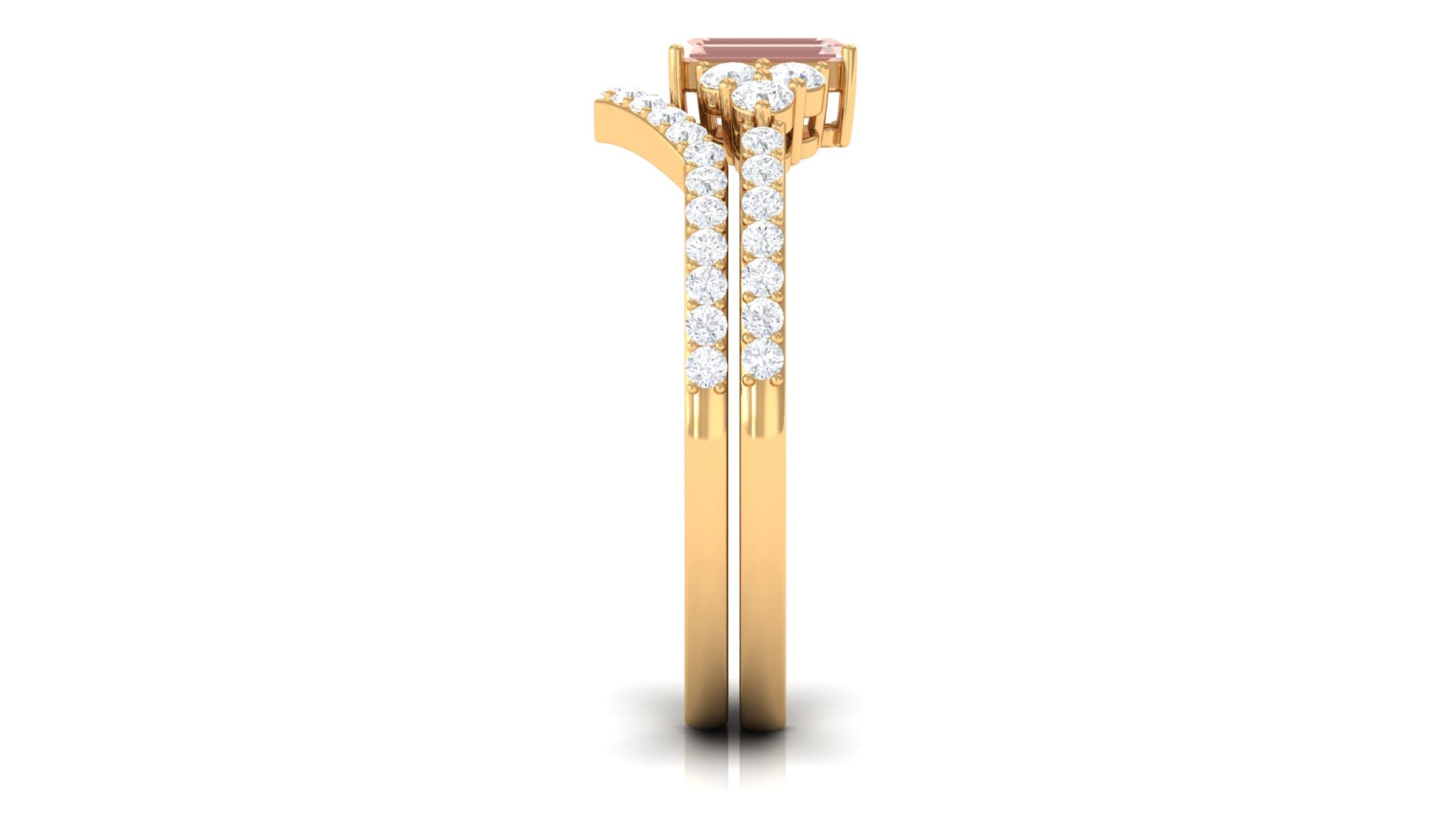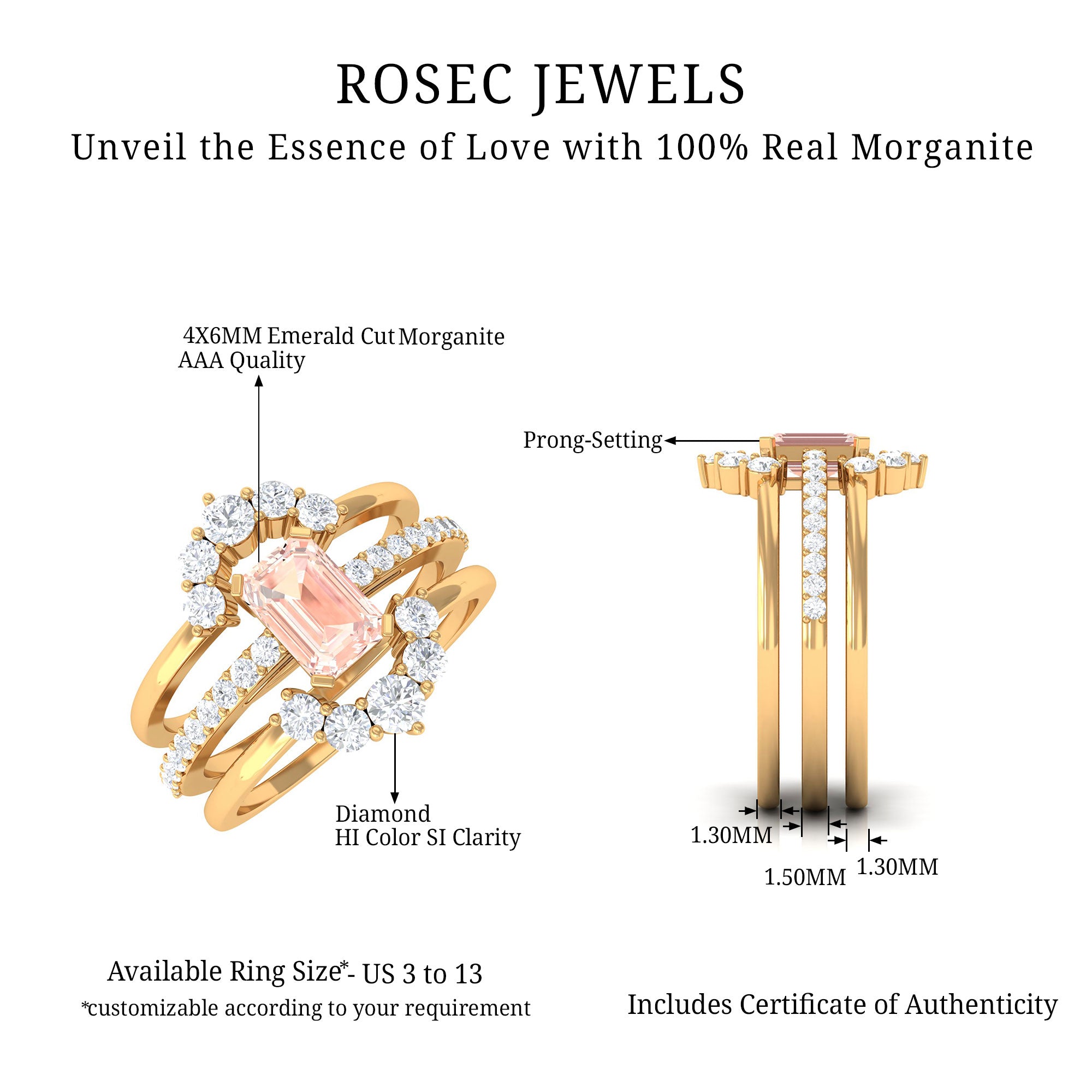 The delicate and romantic pink saturation of morganites enable our craftsmen to combine them with different colors of gold further helping us to curate fantastic morganite wedding band in white gold, yellow gold and rose gold. The great diversity in our engagement and wedding ring collection is achieved by different morganite shapes, settings and metal embellishments. Therefore, Rosec Jewels’ alluring collection of morganite wedding rings will best appeal to the women with an eye for delicate details and romantic pink hues.