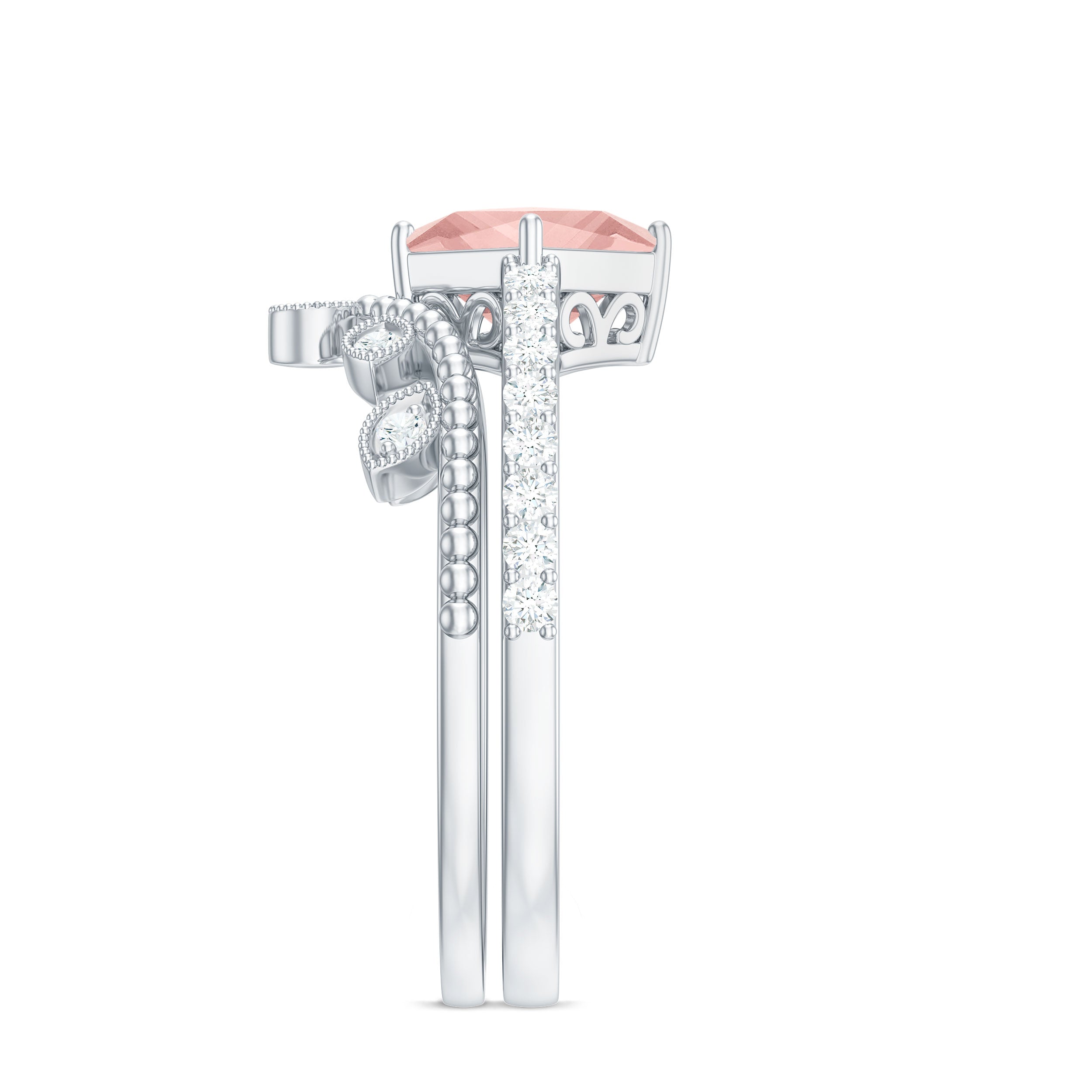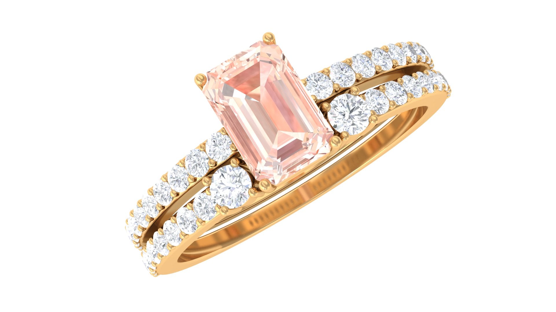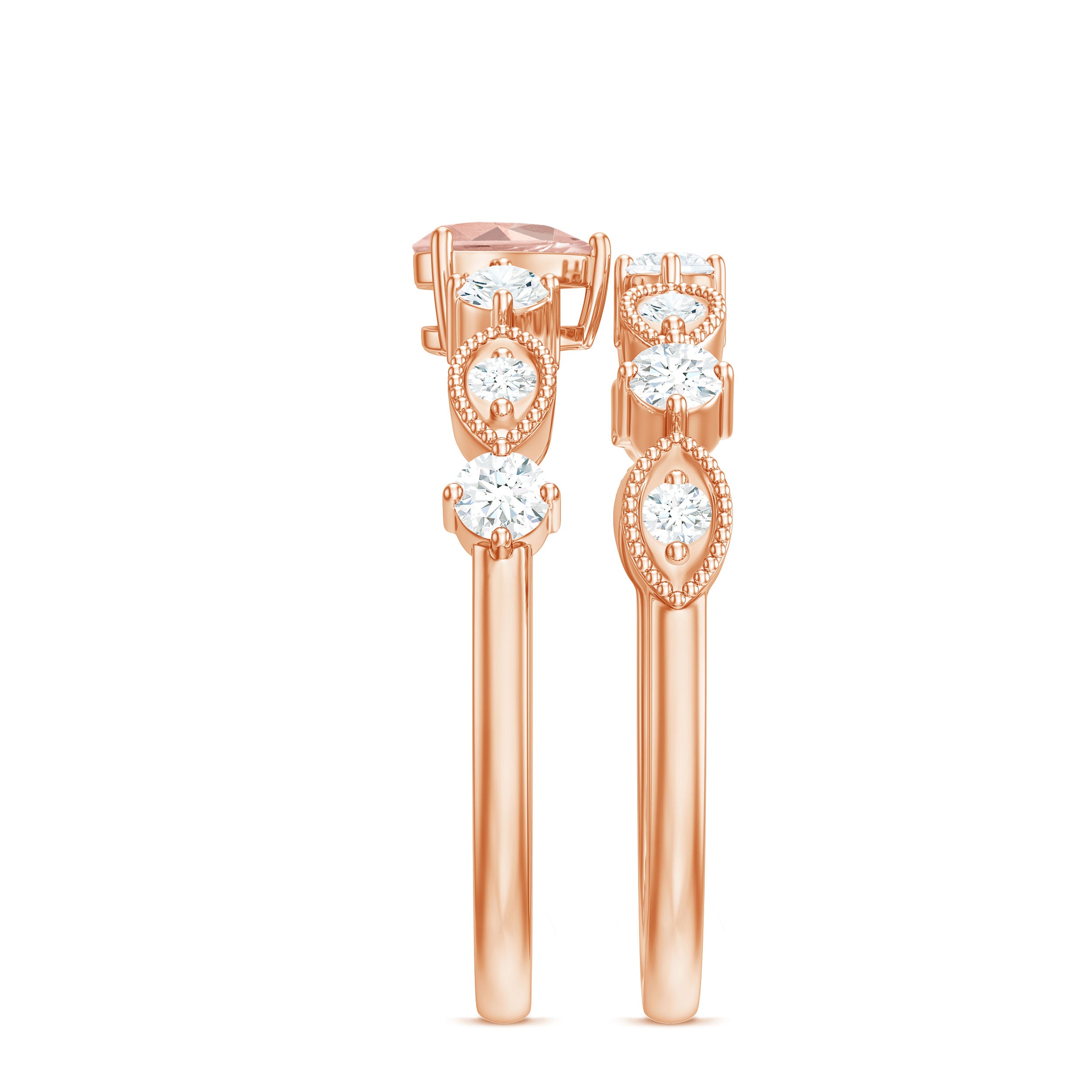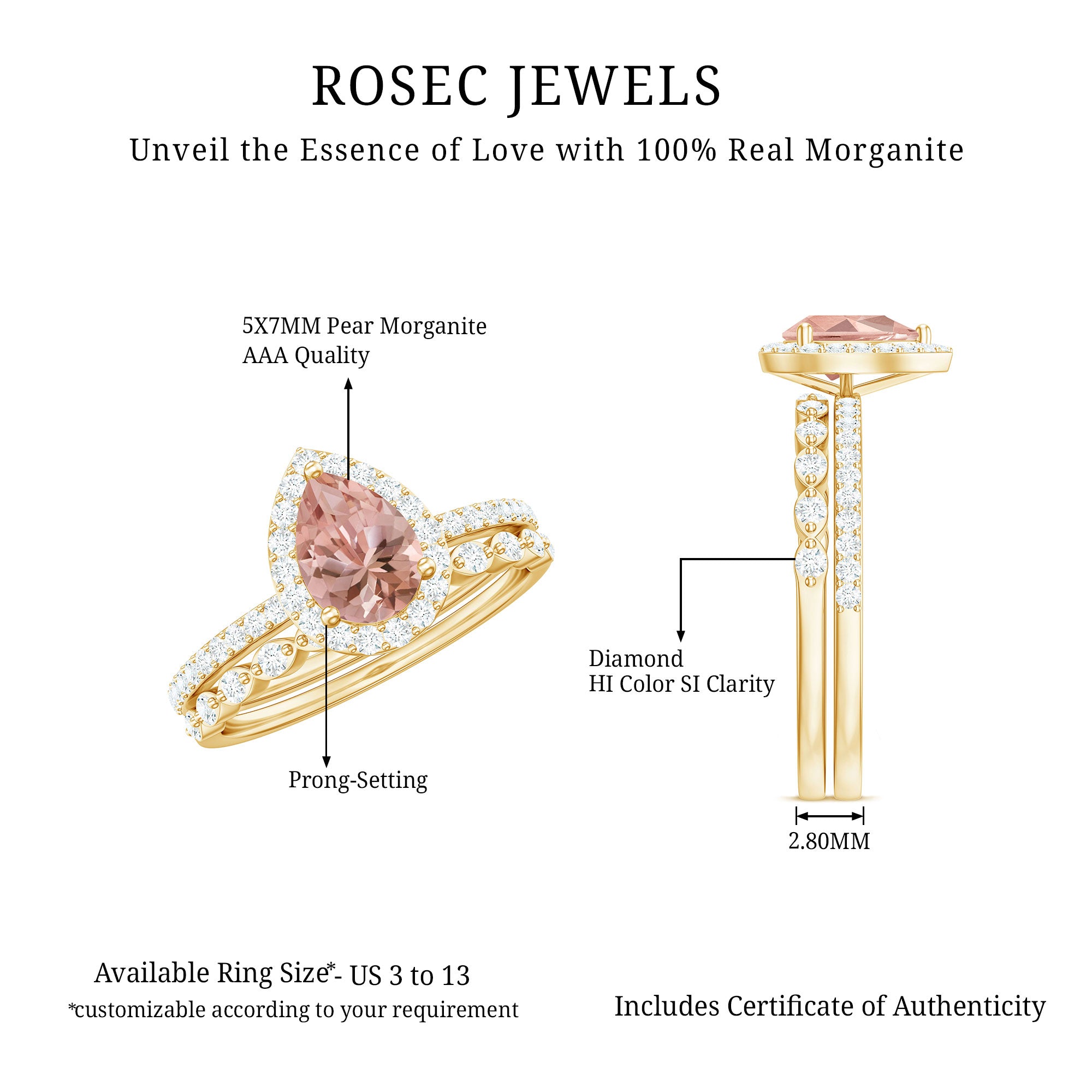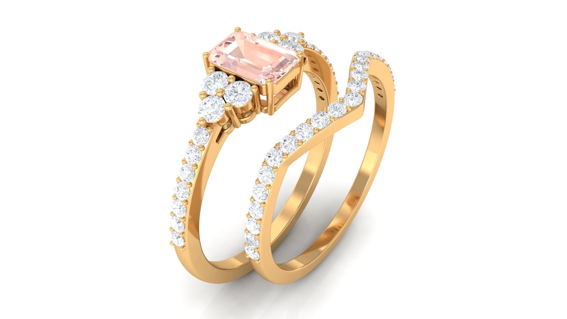 The delicate and romantic pink saturation of morganites enable our craftsmen to combine them with different colors of gold further helping us to curate fantastic morganite wedding band in white gold, yellow gold and rose gold. The great diversity in our engagement and wedding ring collection is achieved by different morganite shapes, settings and metal embellishments. Therefore, Rosec Jewels’ alluring collection of morganite wedding rings will best appeal to the women with an eye for delicate details and romantic pink hues.