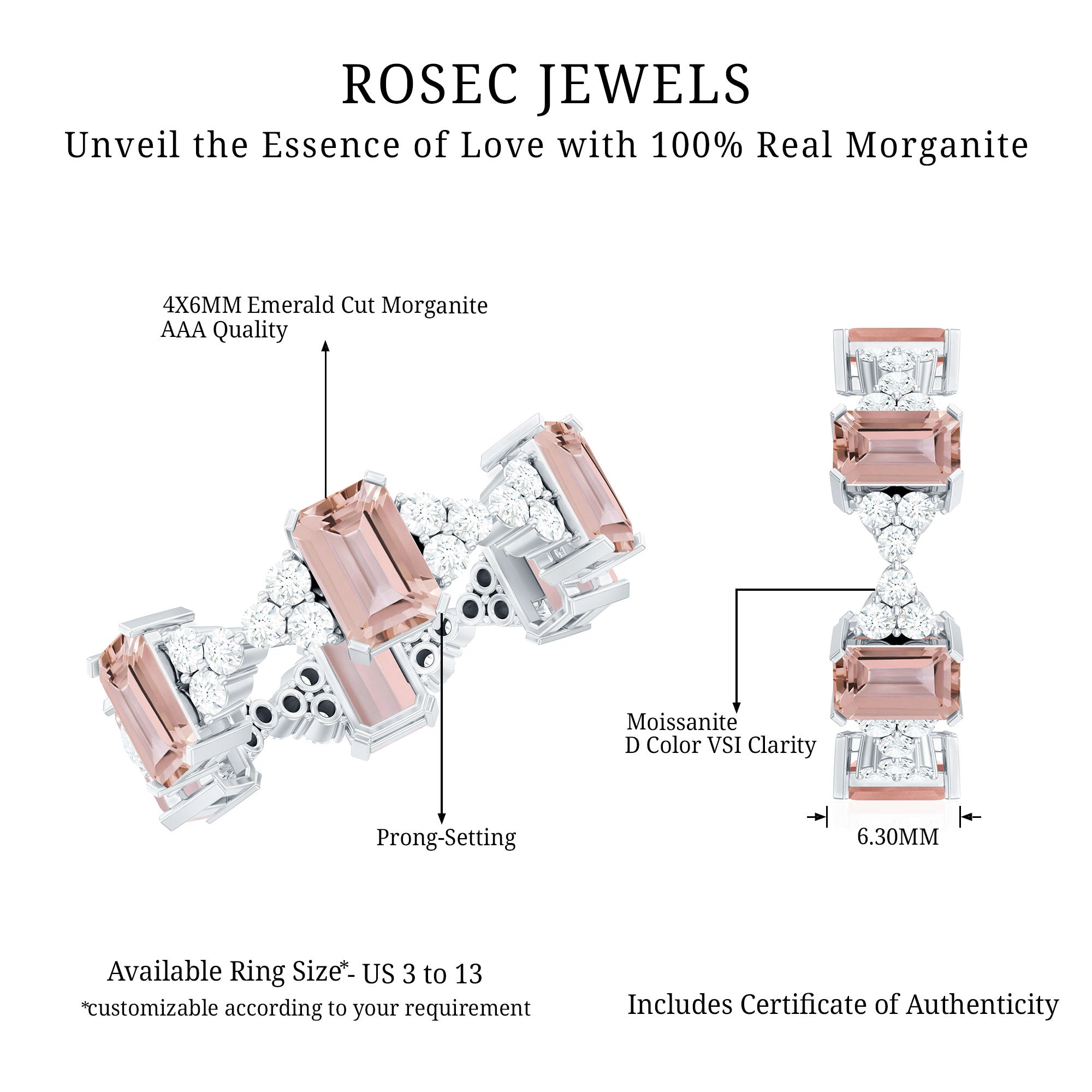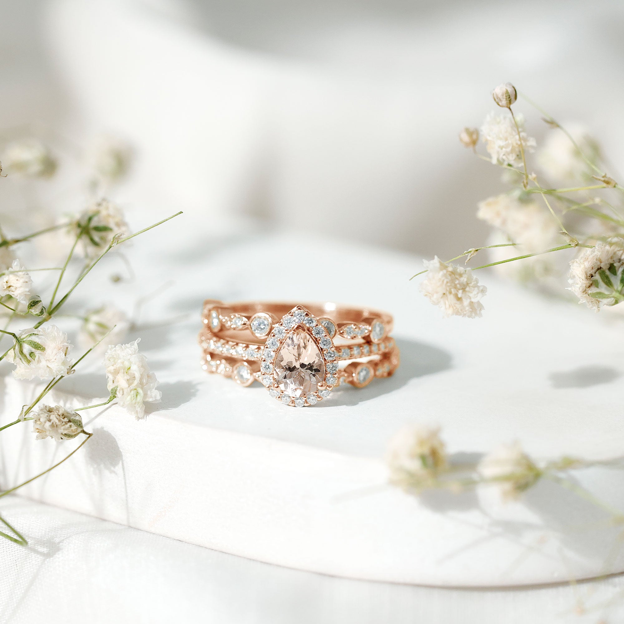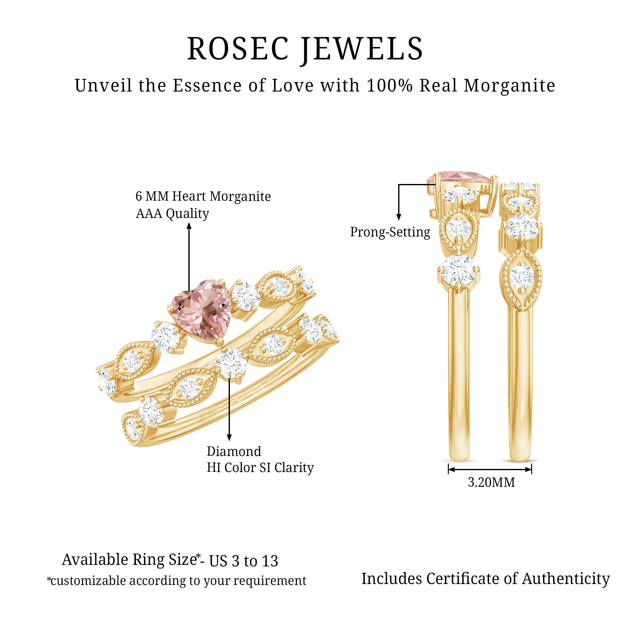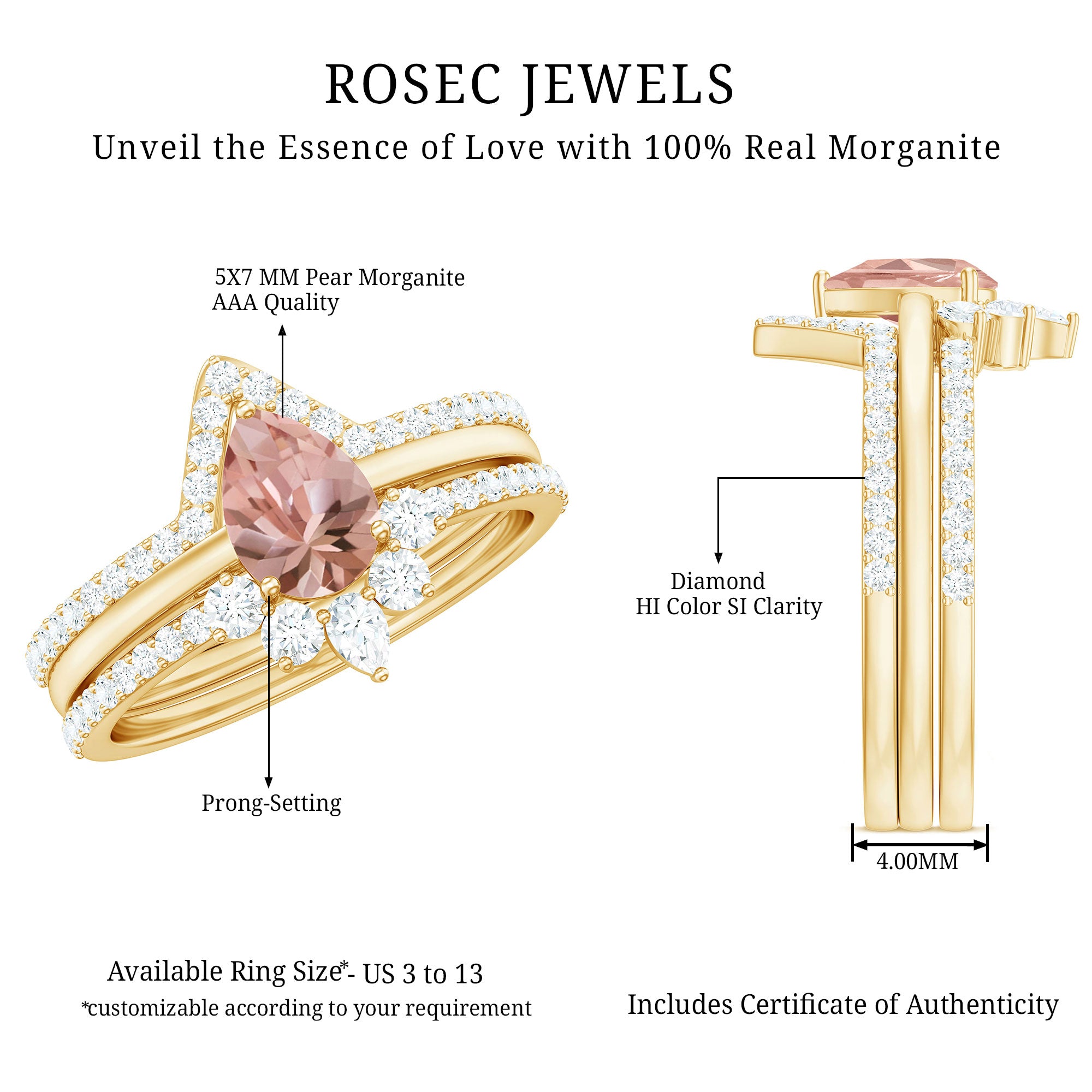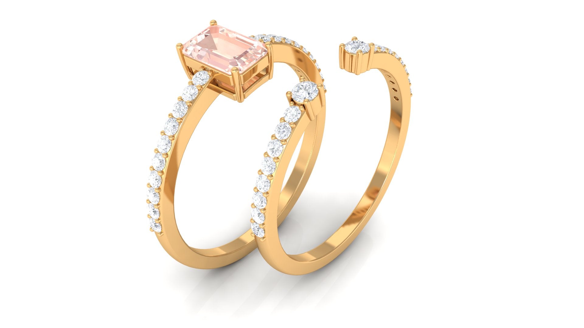 The delicate and romantic pink saturation of morganites enable our craftsmen to combine them with different colors of gold further helping us to curate fantastic morganite wedding band in white gold, yellow gold and rose gold. The great diversity in our engagement and wedding ring collection is achieved by different morganite shapes, settings and metal embellishments. Therefore, Rosec Jewels’ alluring collection of morganite wedding rings will best appeal to the women with an eye for delicate details and romantic pink hues.