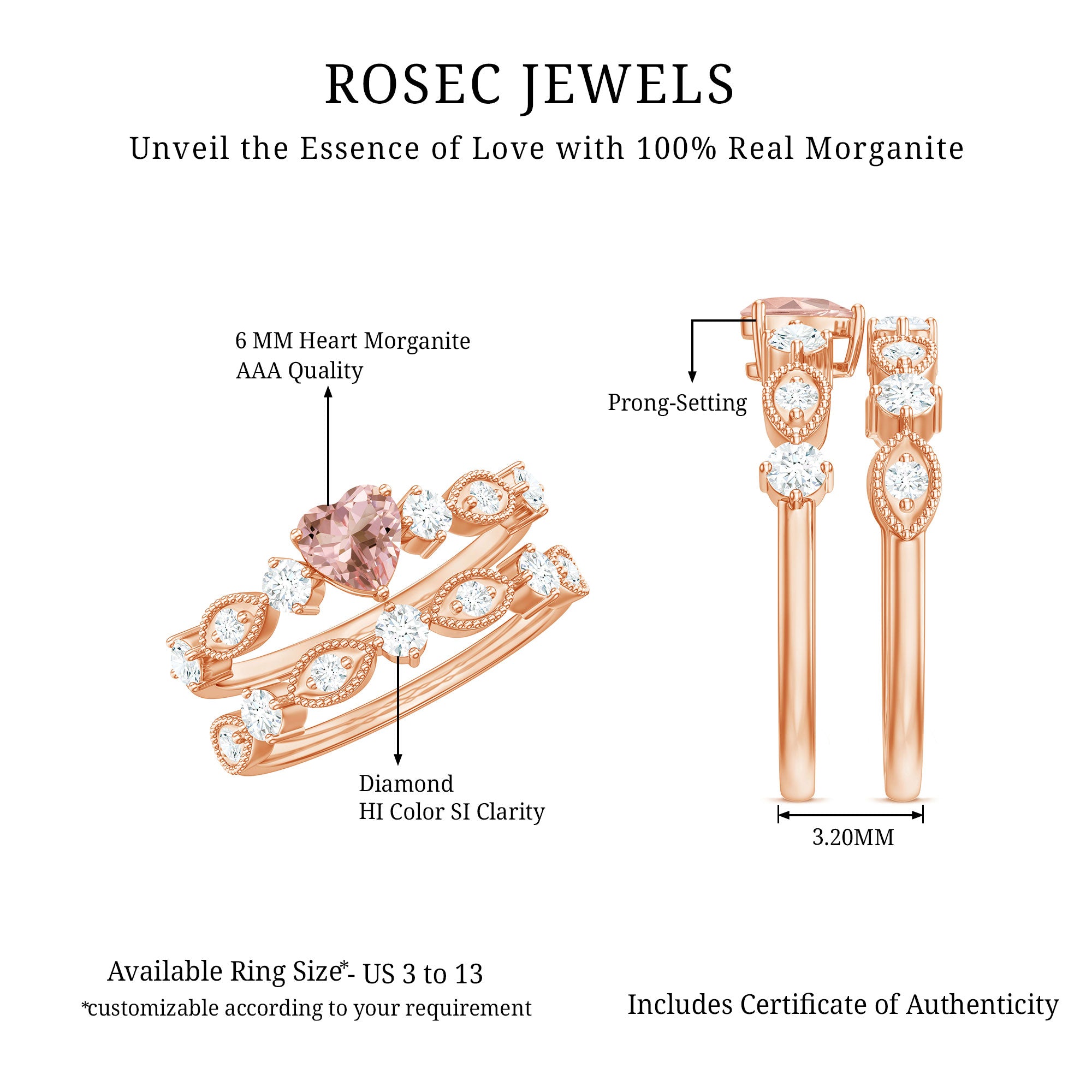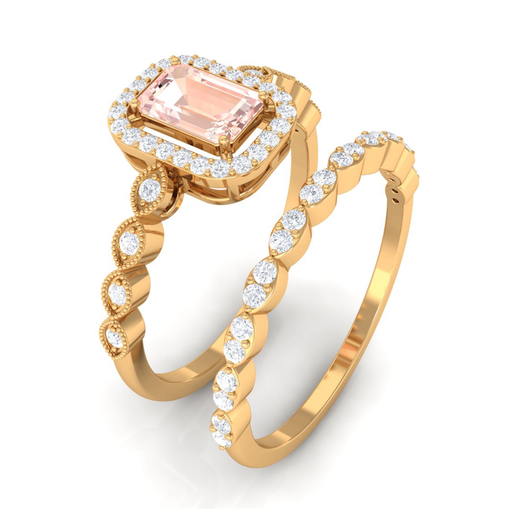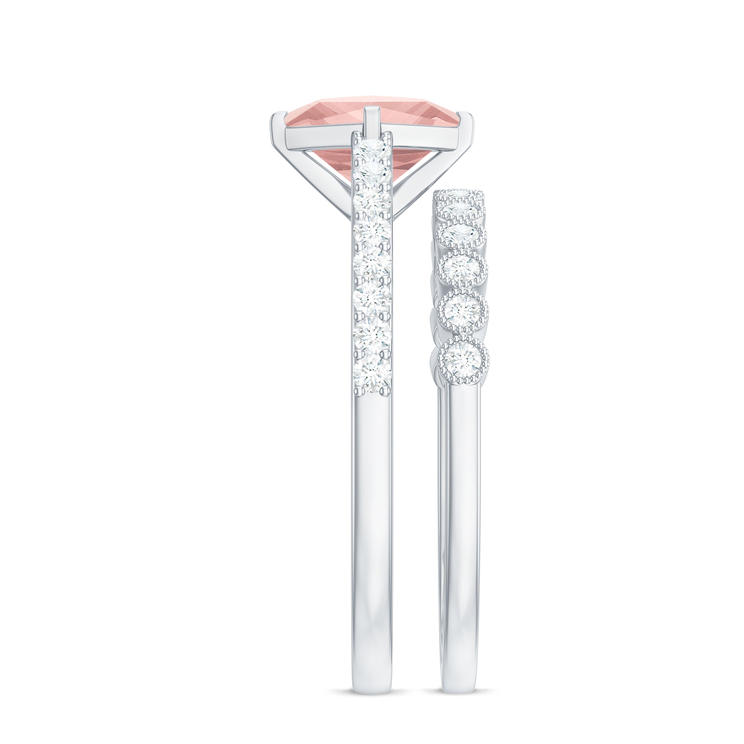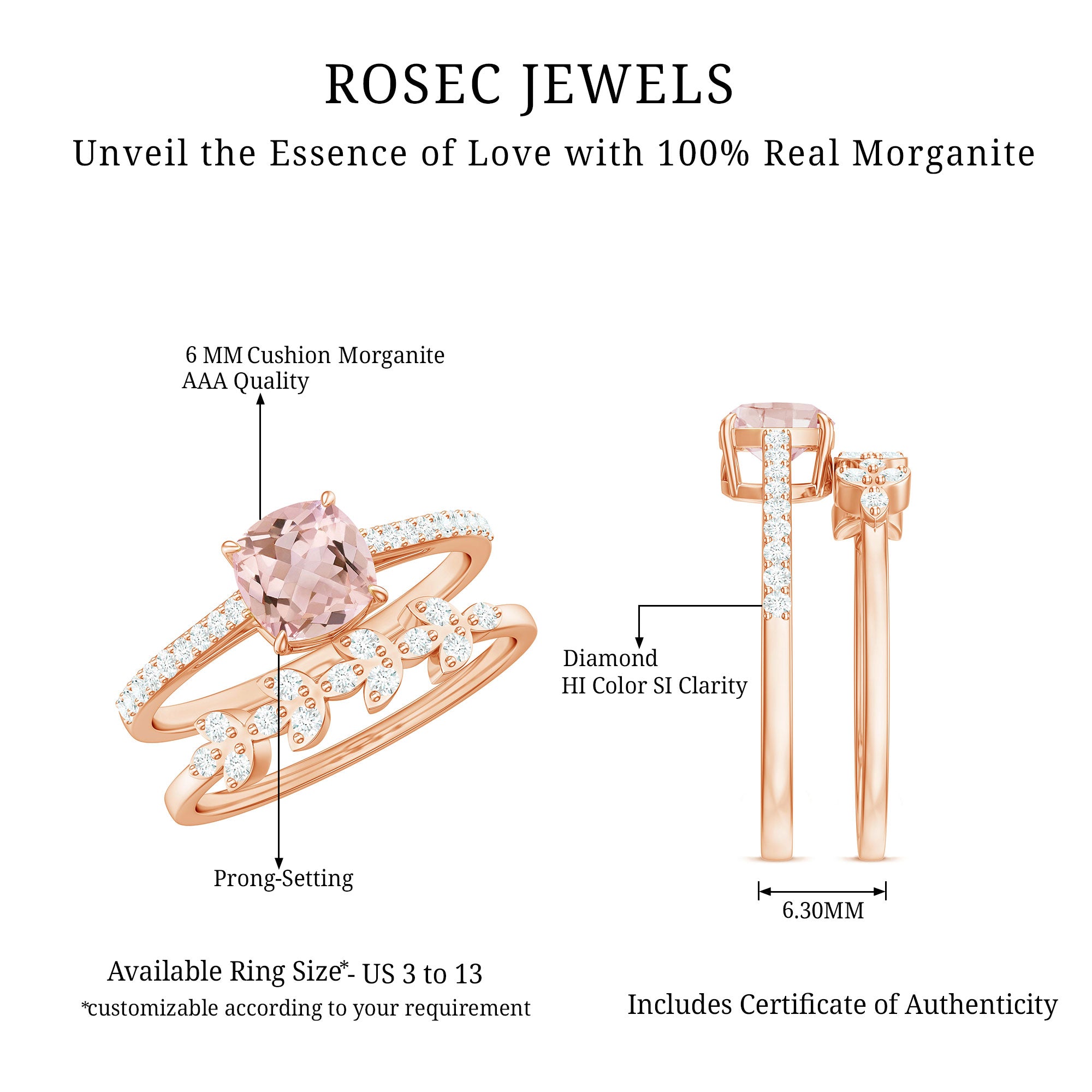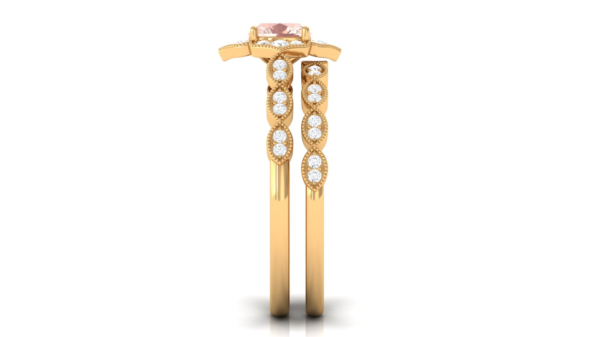 The delicate and romantic pink saturation of morganites enable our craftsmen to combine them with different colors of gold further helping us to curate fantastic morganite wedding band in white gold, yellow gold and rose gold. The great diversity in our engagement and wedding ring collection is achieved by different morganite shapes, settings and metal embellishments. Therefore, Rosec Jewels’ alluring collection of morganite wedding rings will best appeal to the women with an eye for delicate details and romantic pink hues.
