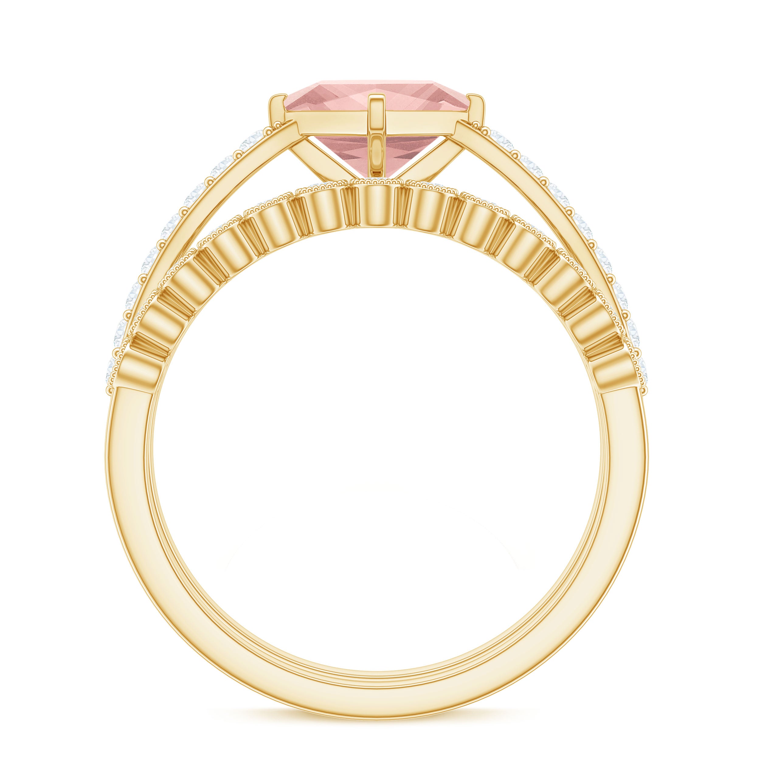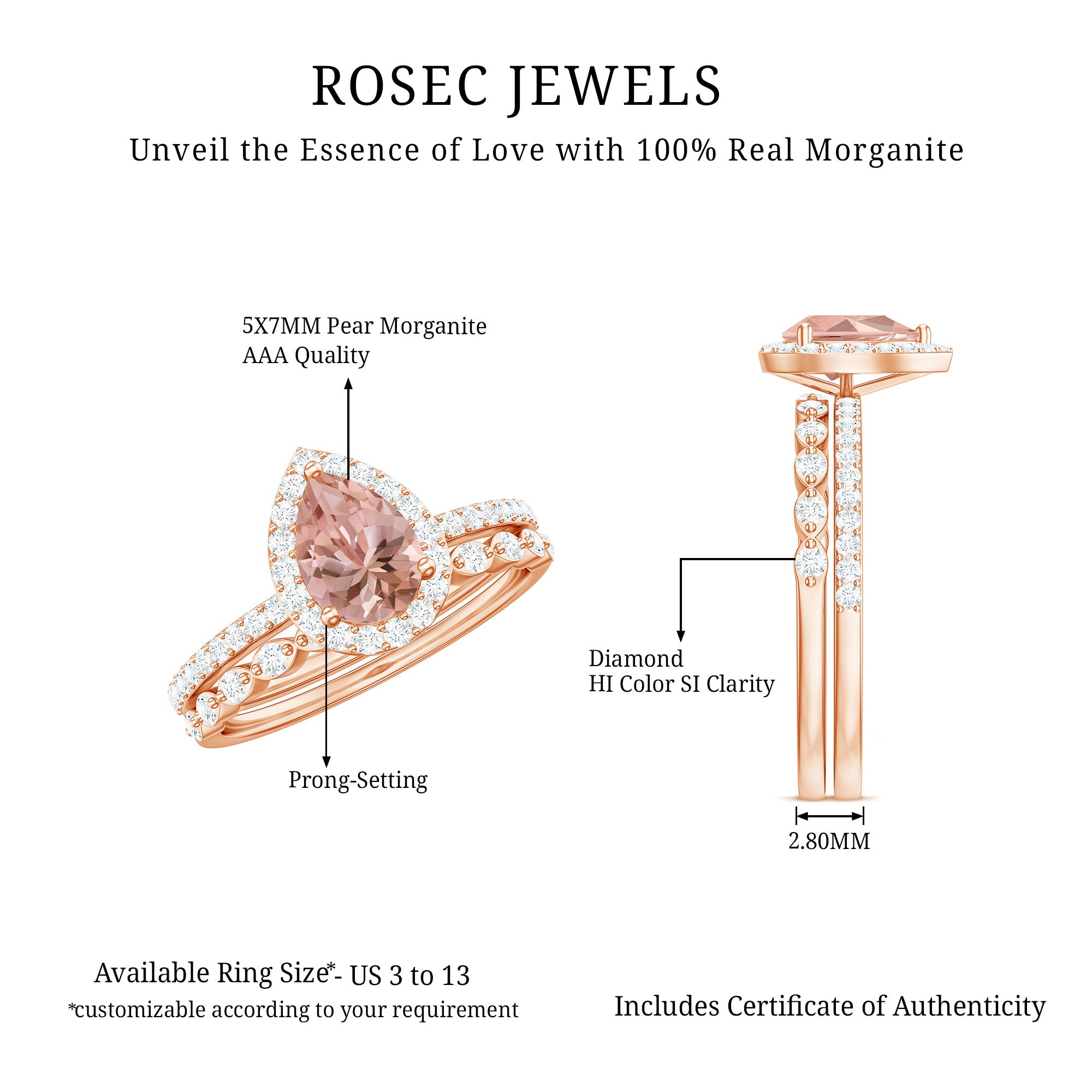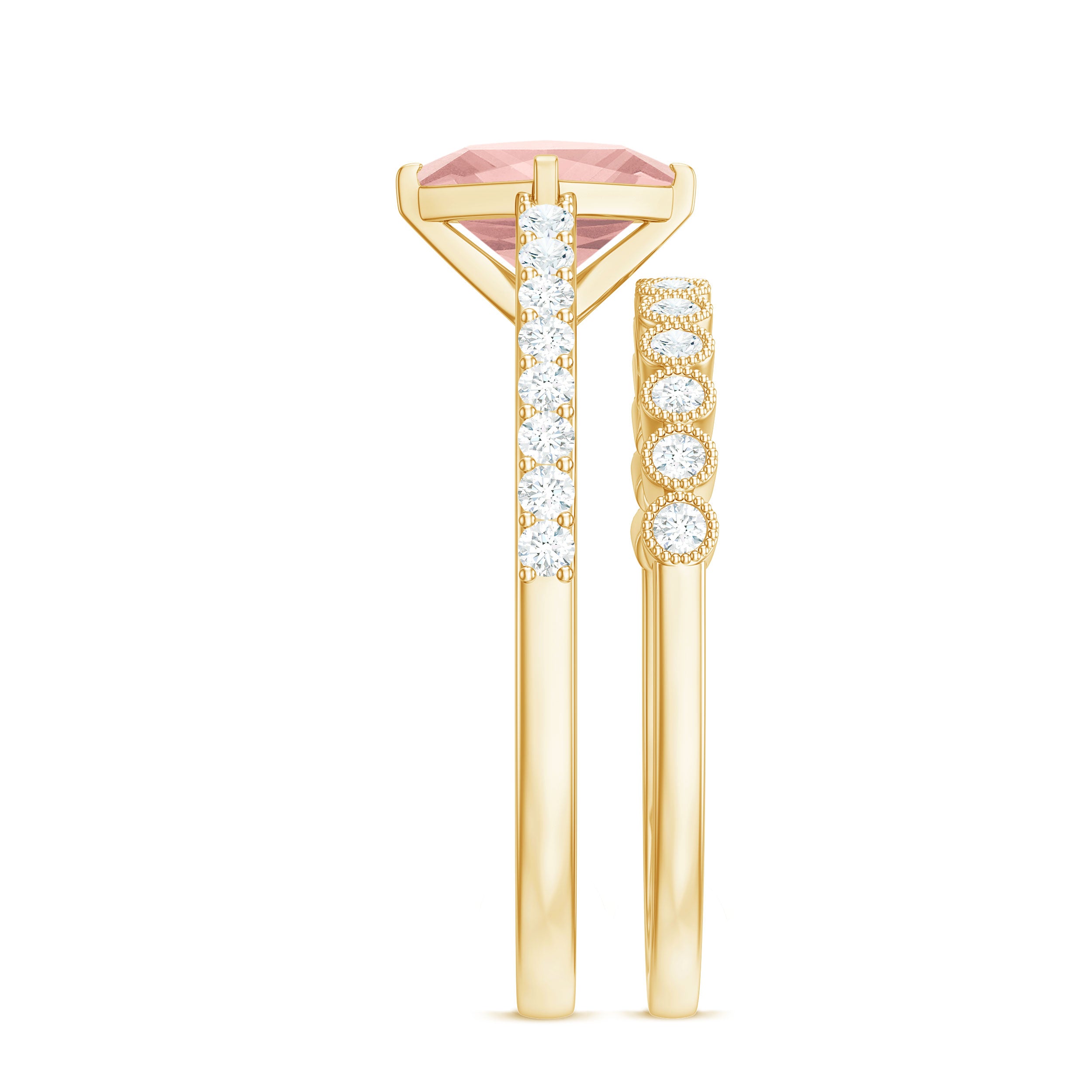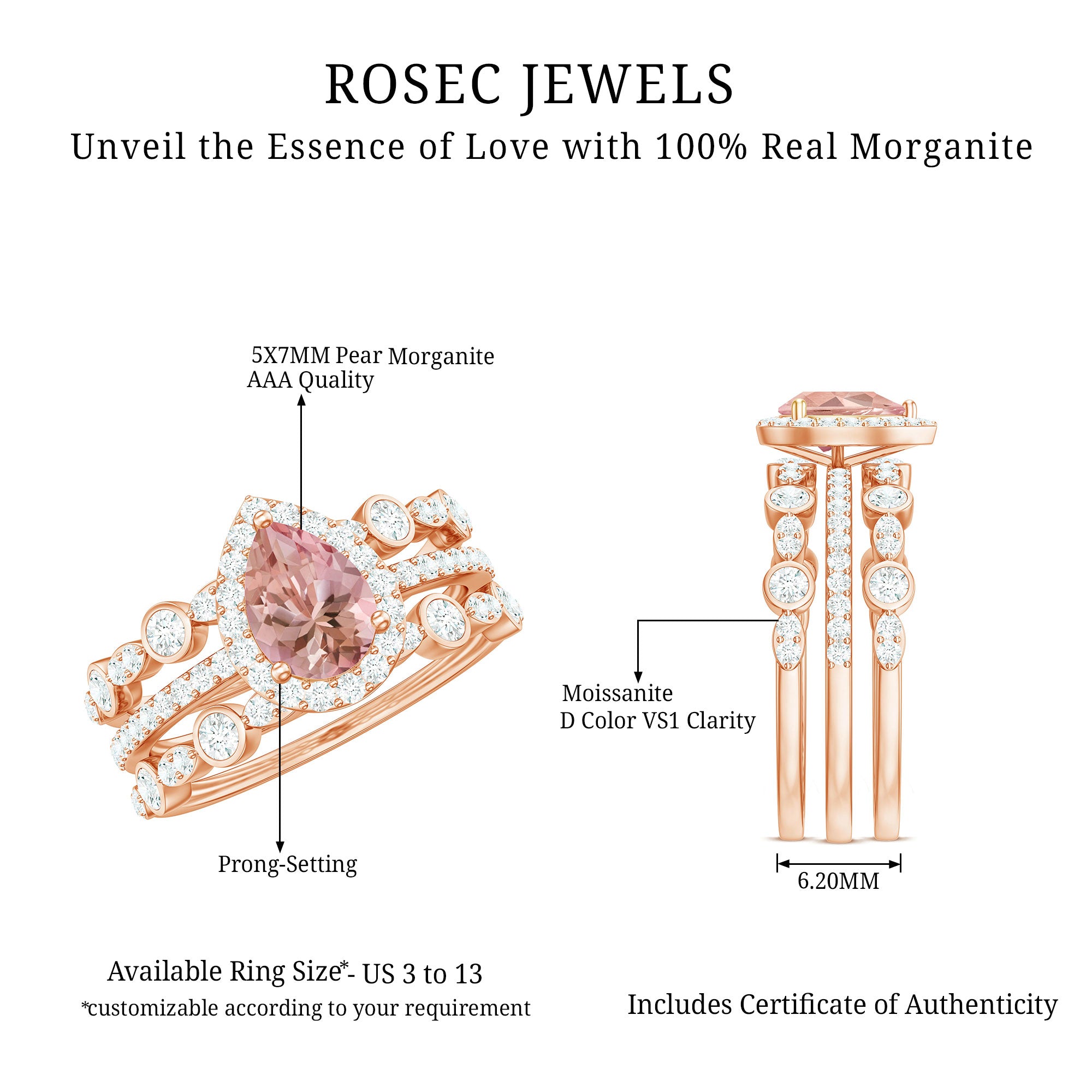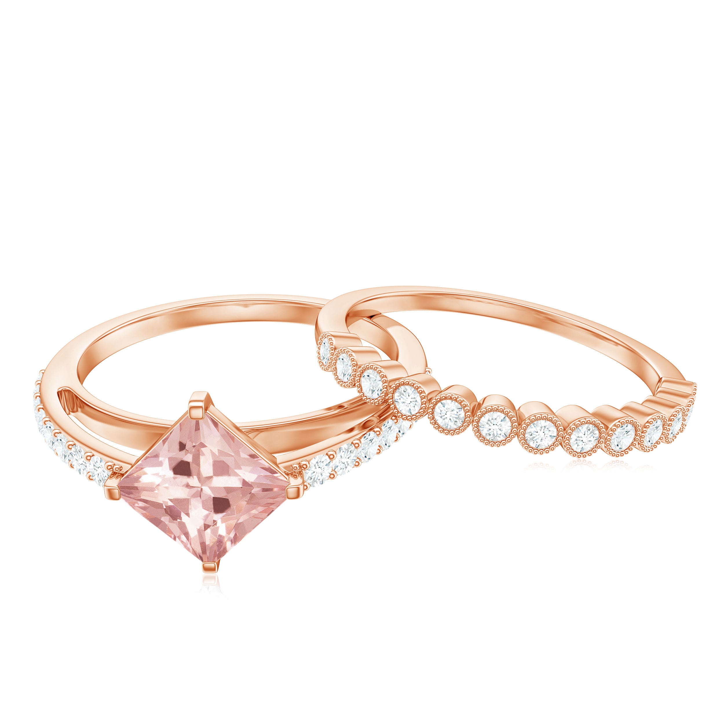 The delicate and romantic pink saturation of morganites enable our craftsmen to combine them with different colors of gold further helping us to curate fantastic morganite wedding band in white gold, yellow gold and rose gold. The great diversity in our engagement and wedding ring collection is achieved by different morganite shapes, settings and metal embellishments. Therefore, Rosec Jewels’ alluring collection of morganite wedding rings will best appeal to the women with an eye for delicate details and romantic pink hues.