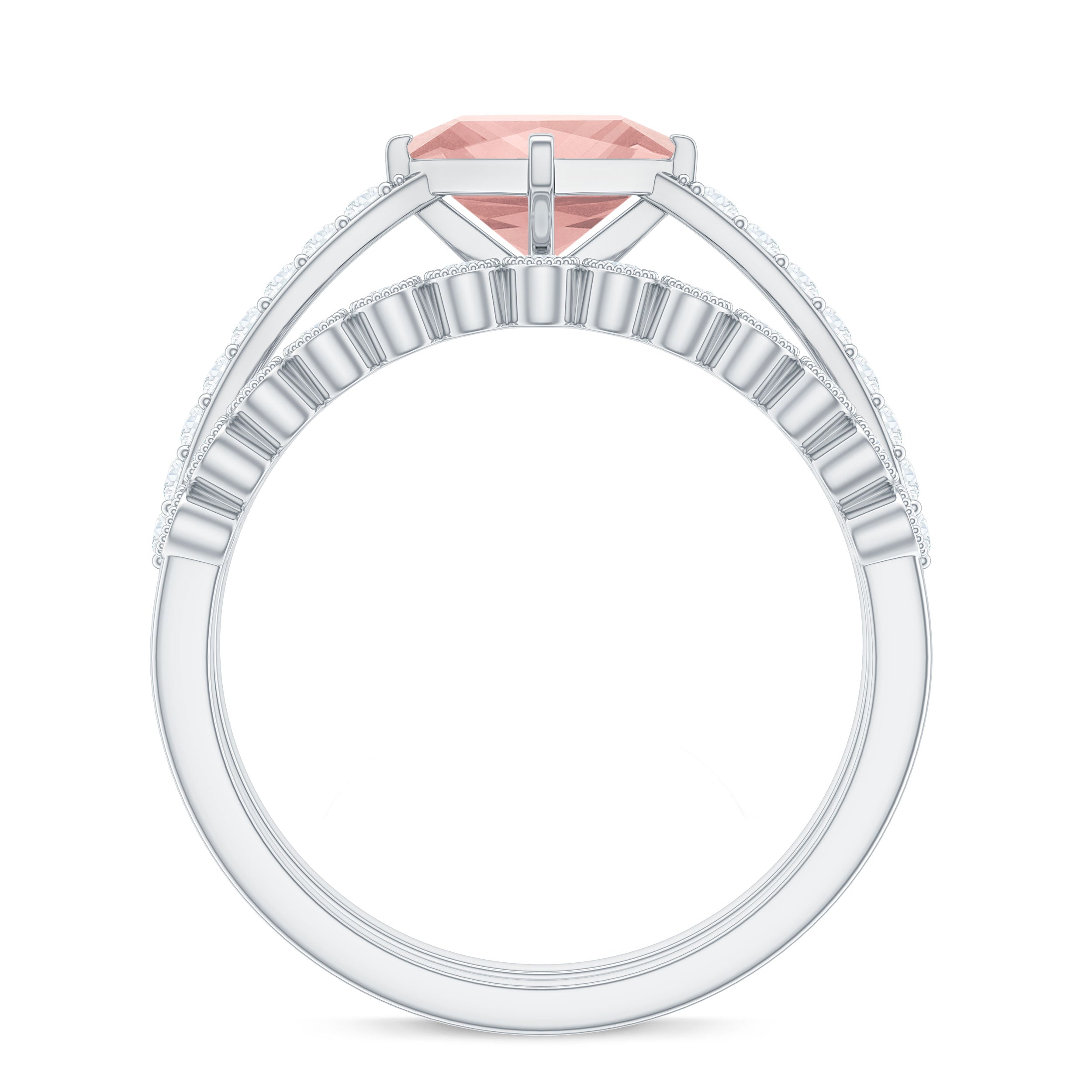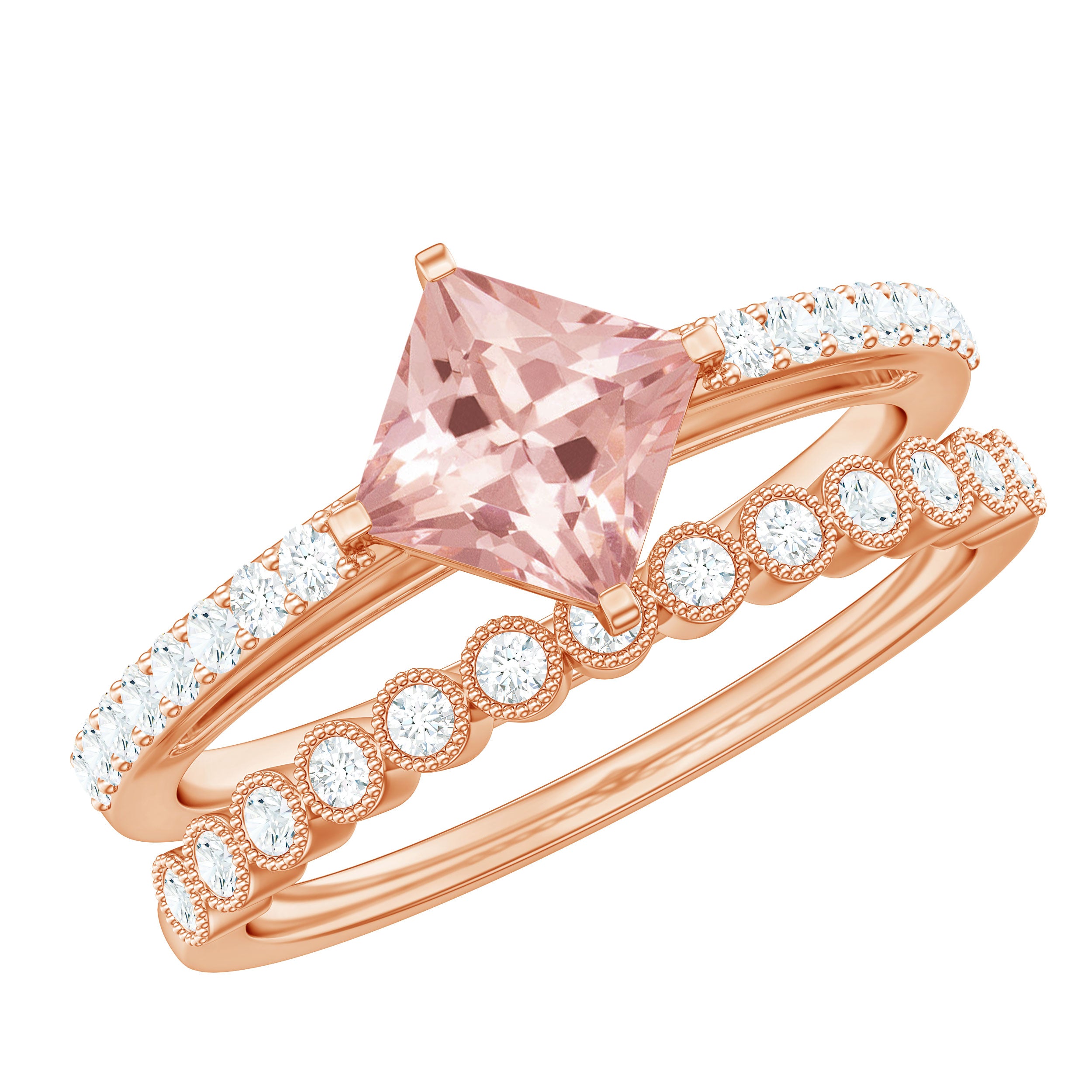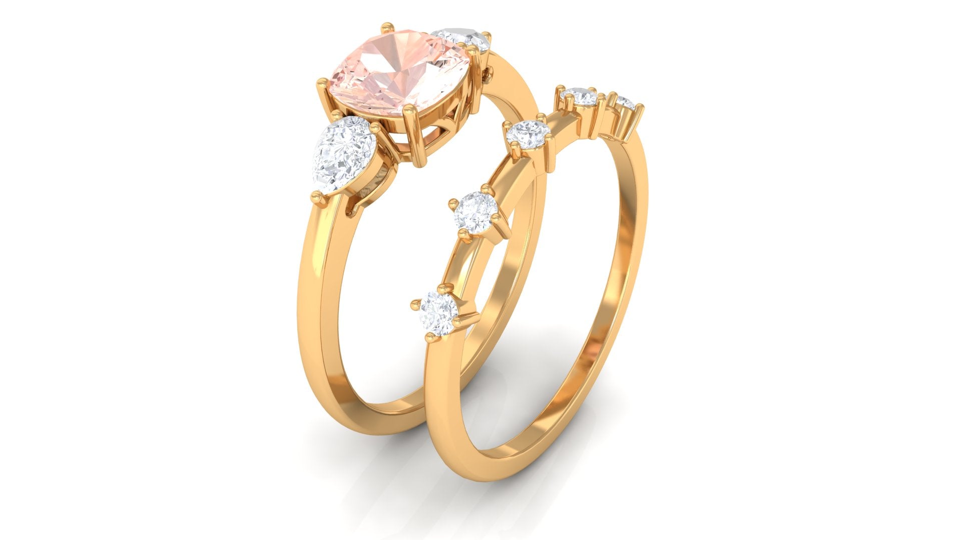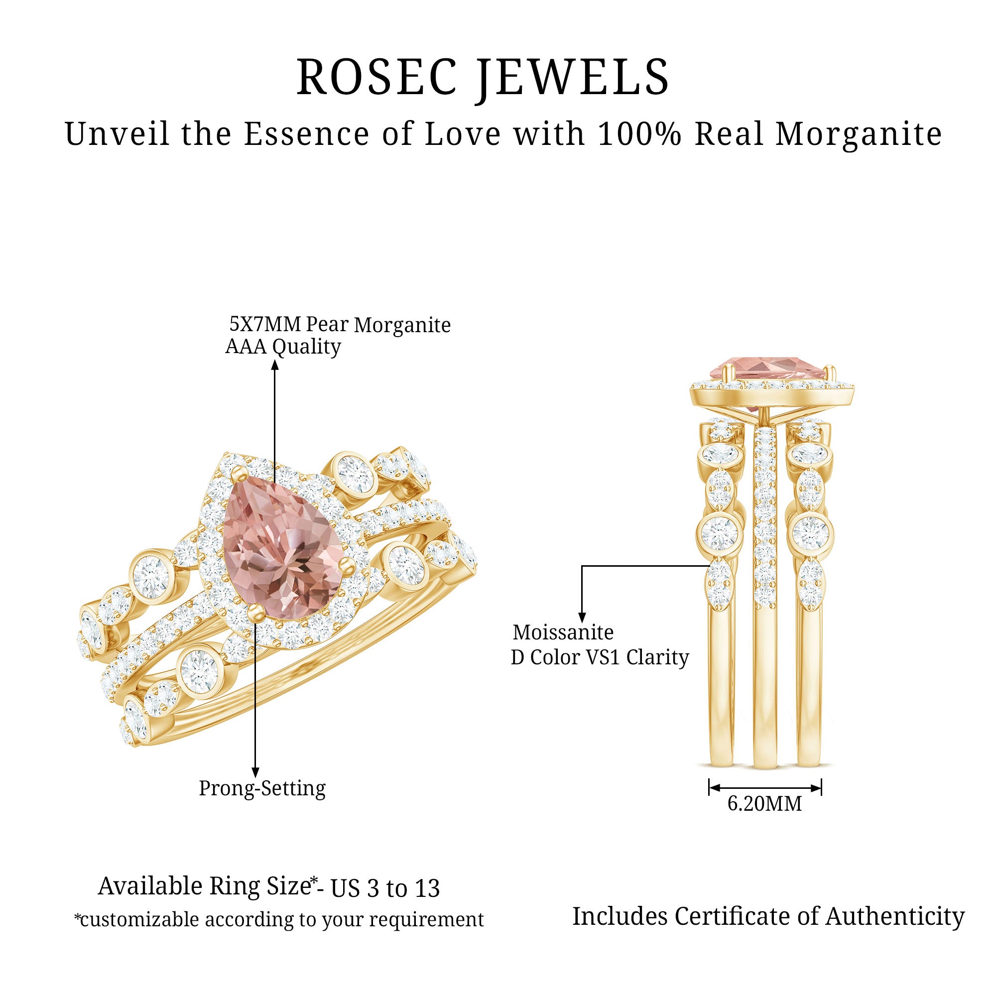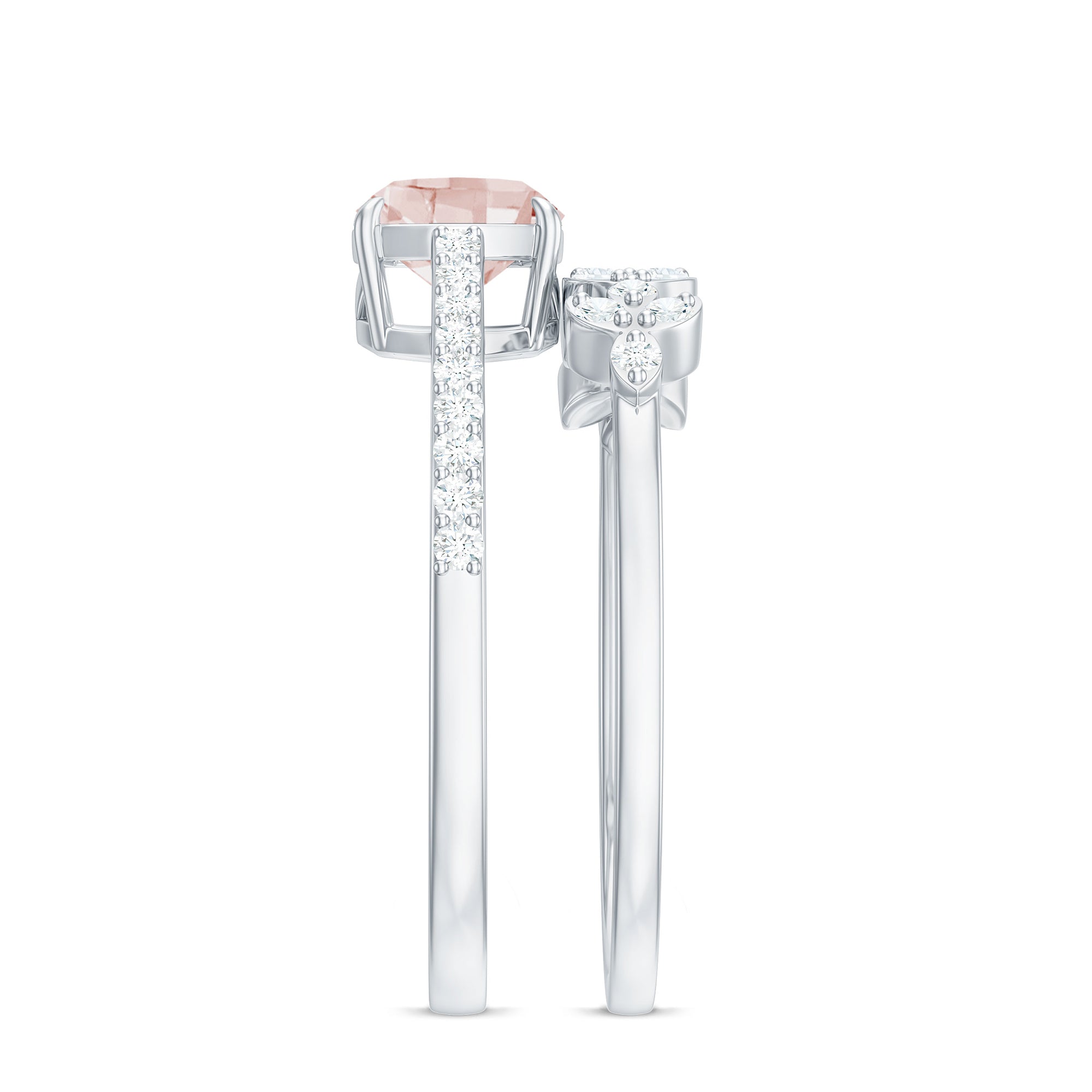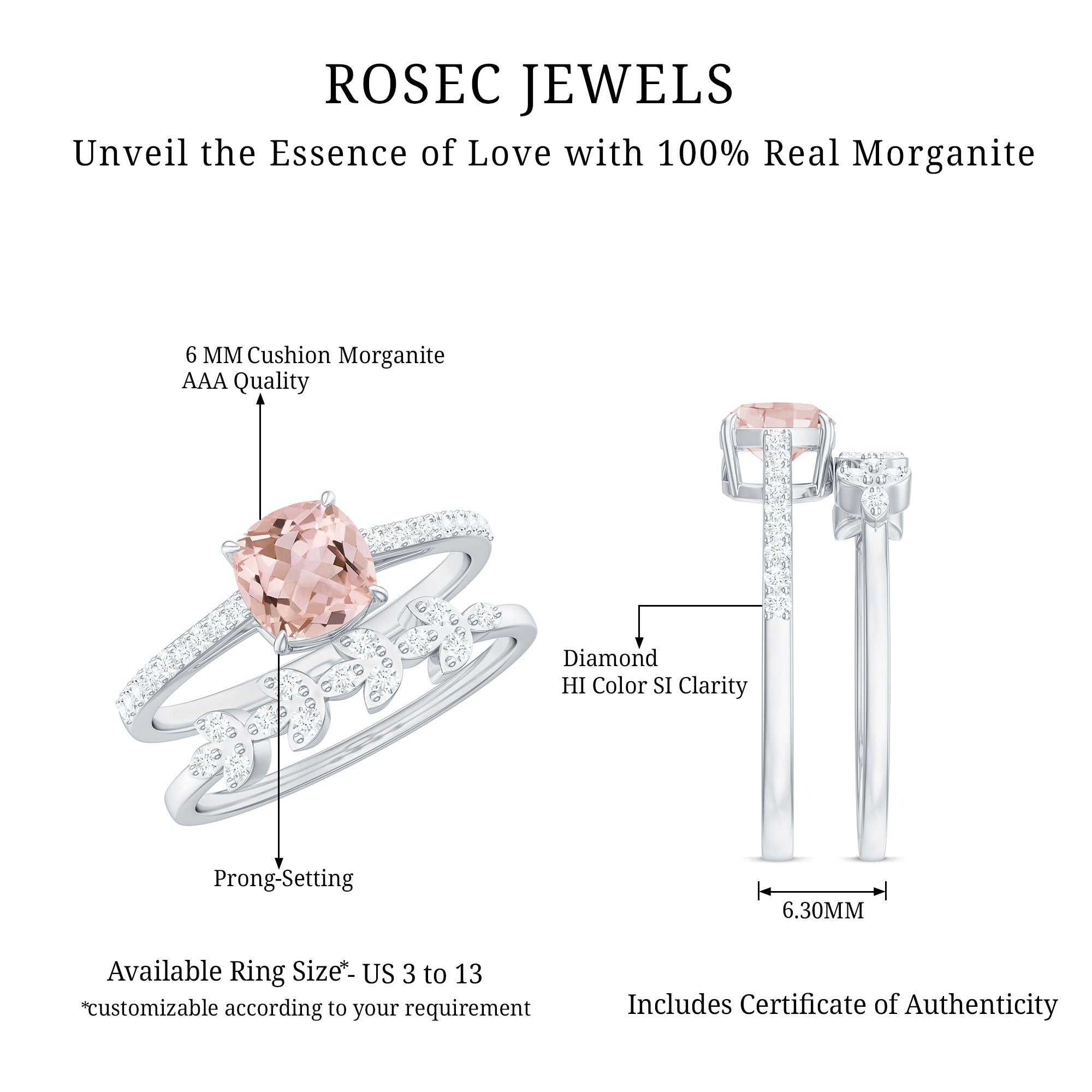The delicate and romantic pink saturation of morganites enable our craftsmen to combine them with different colors of gold further helping us to curate fantastic morganite wedding band in white gold, yellow gold and rose gold. The great diversity in our engagement and wedding ring collection is achieved by different morganite shapes, settings and metal embellishments. Therefore, Rosec Jewels’ alluring collection of morganite wedding rings will best appeal to the women with an eye for delicate details and romantic pink hues.
