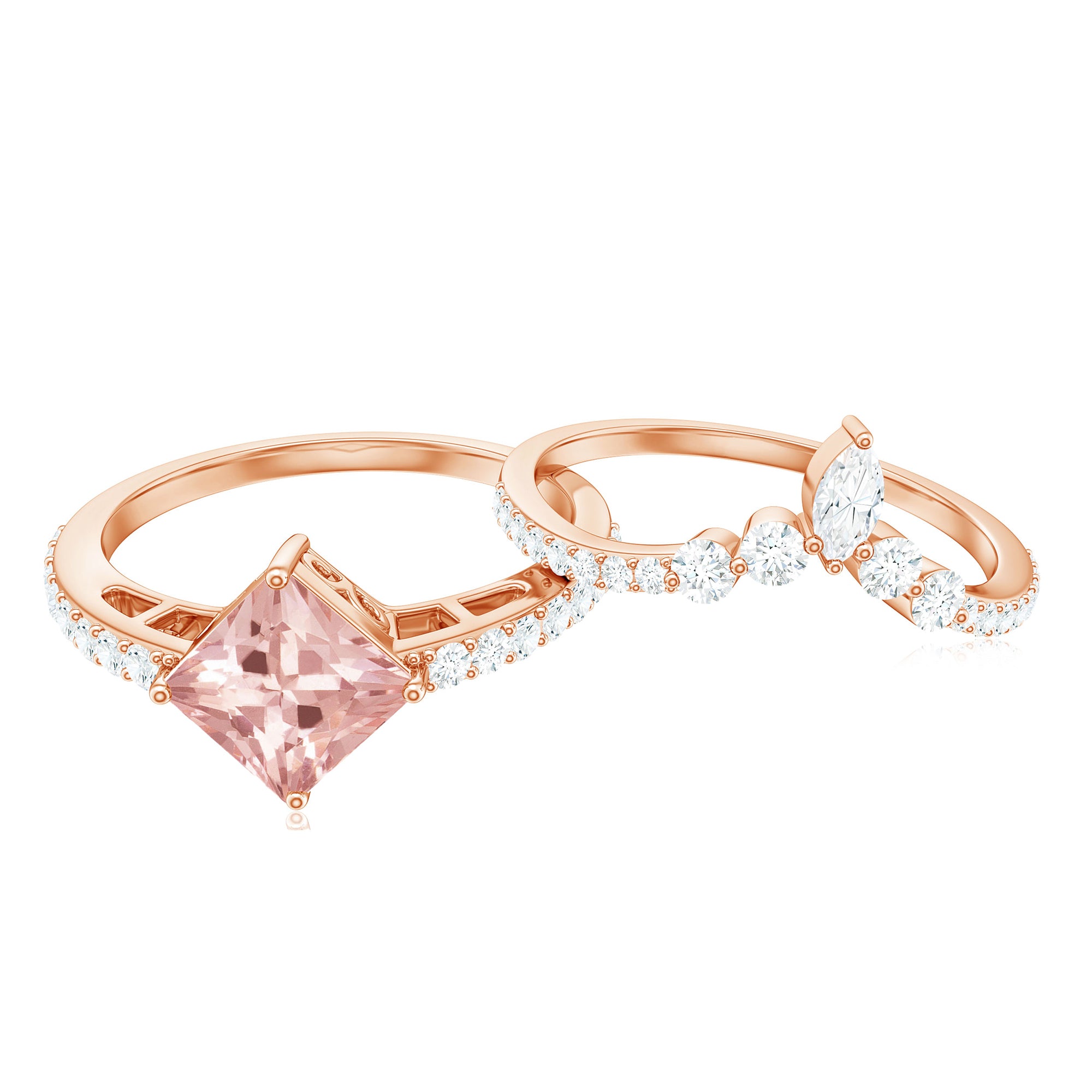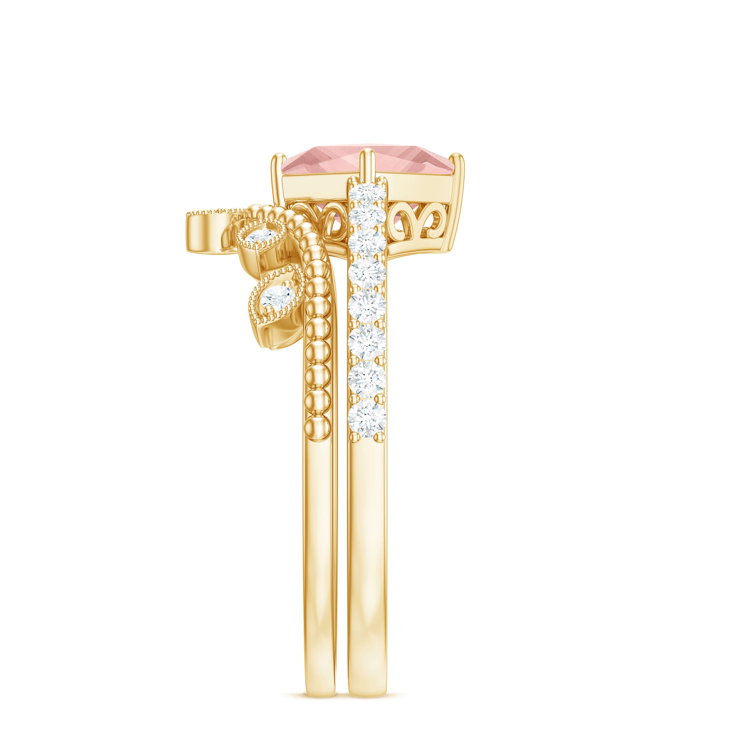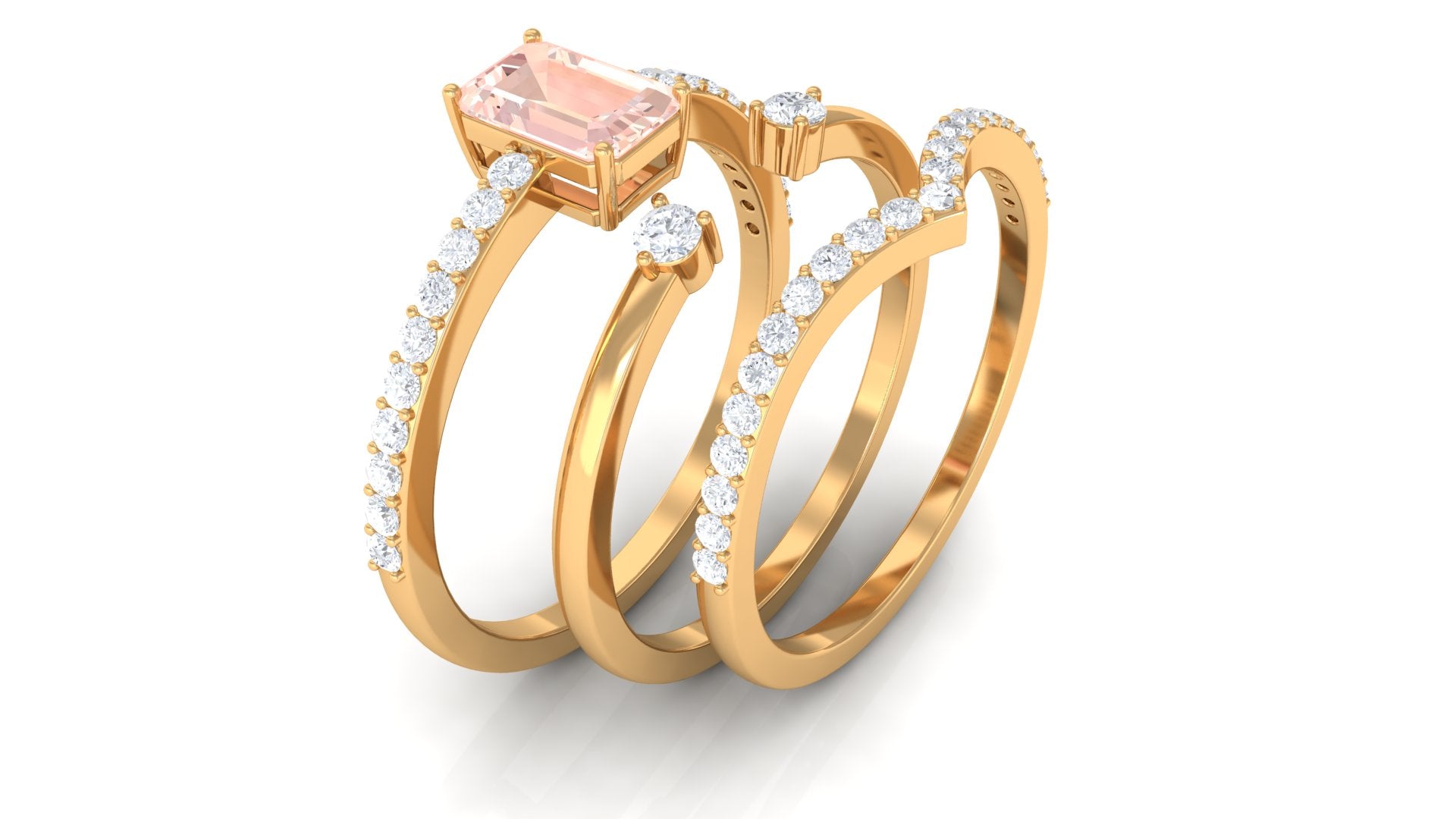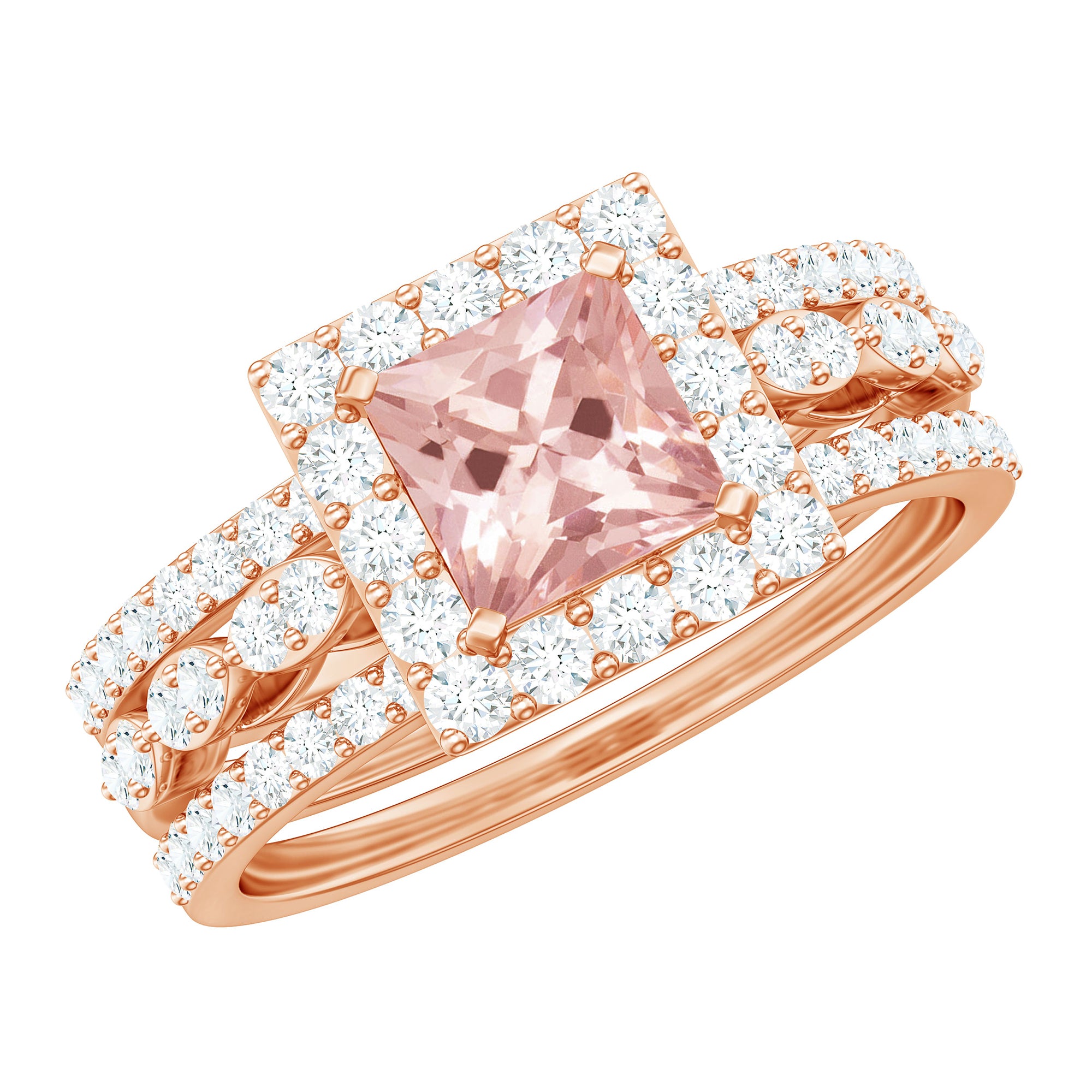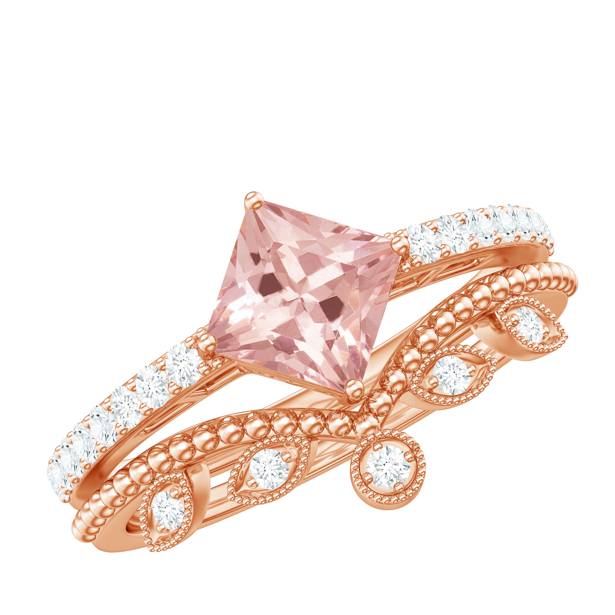 The delicate and romantic pink saturation of morganites enable our craftsmen to combine them with different colors of gold further helping us to curate fantastic morganite wedding band in white gold, yellow gold and rose gold. The great diversity in our engagement and wedding ring collection is achieved by different morganite shapes, settings and metal embellishments. Therefore, Rosec Jewels’ alluring collection of morganite wedding rings will best appeal to the women with an eye for delicate details and romantic pink hues.
