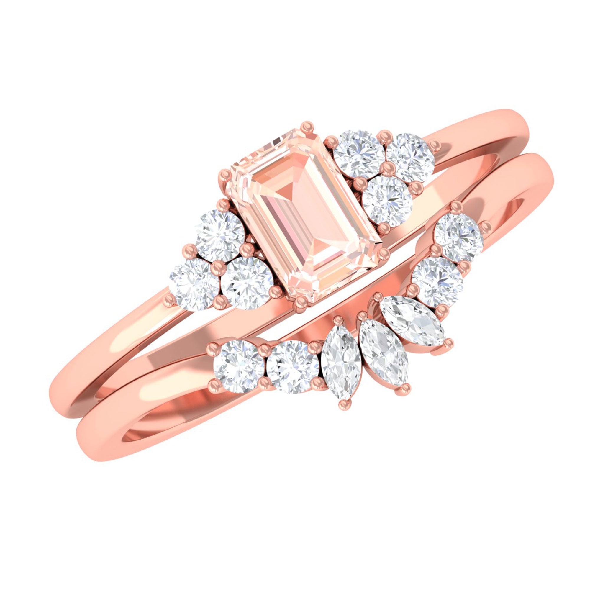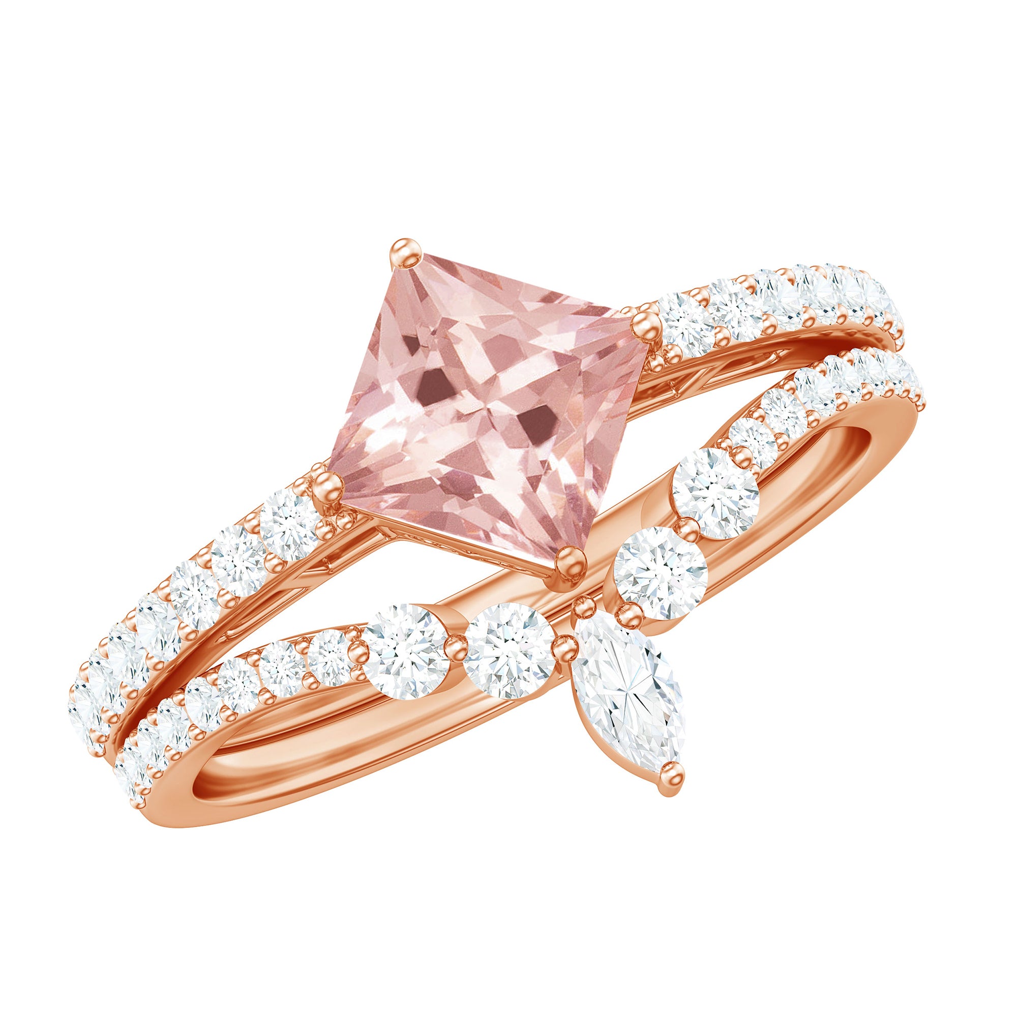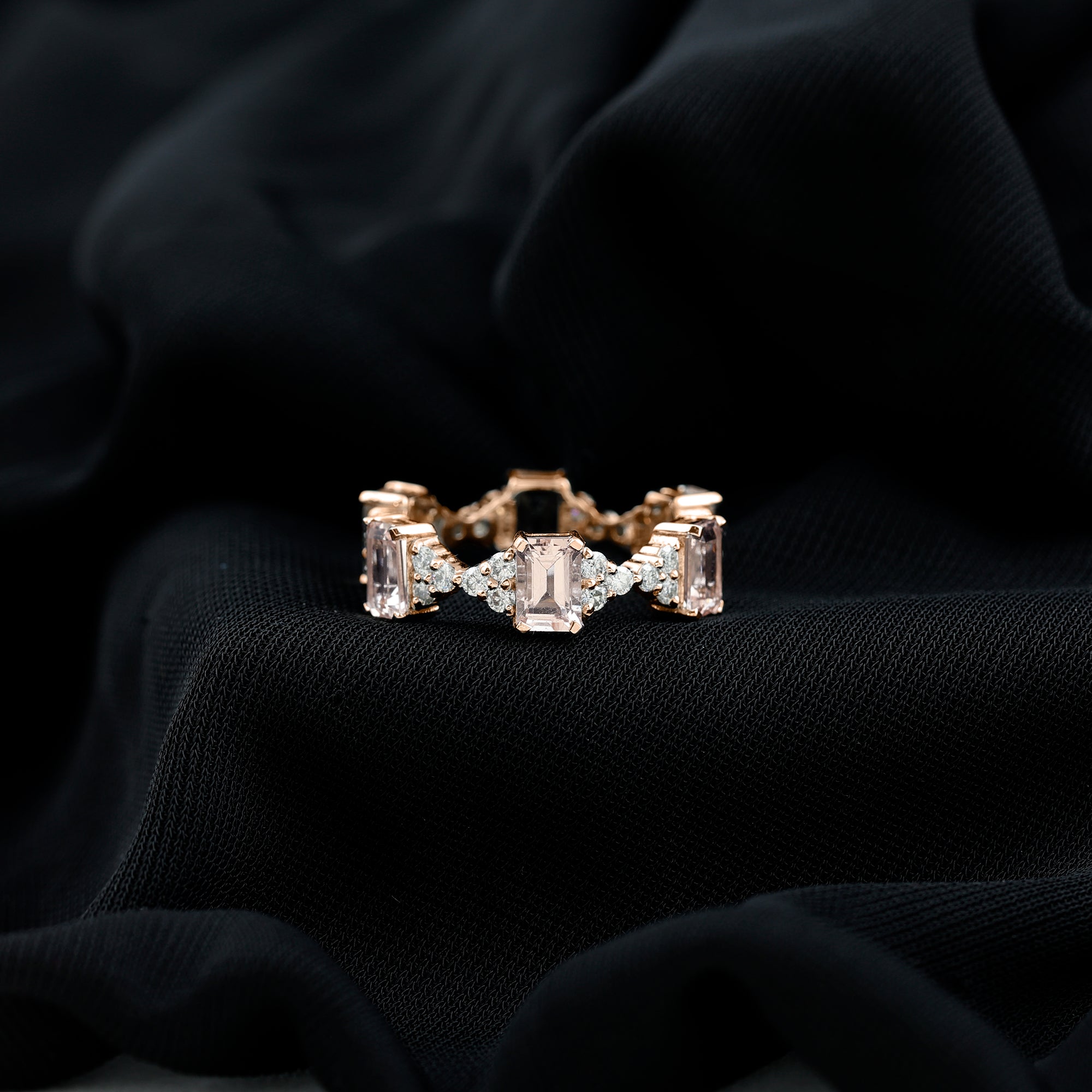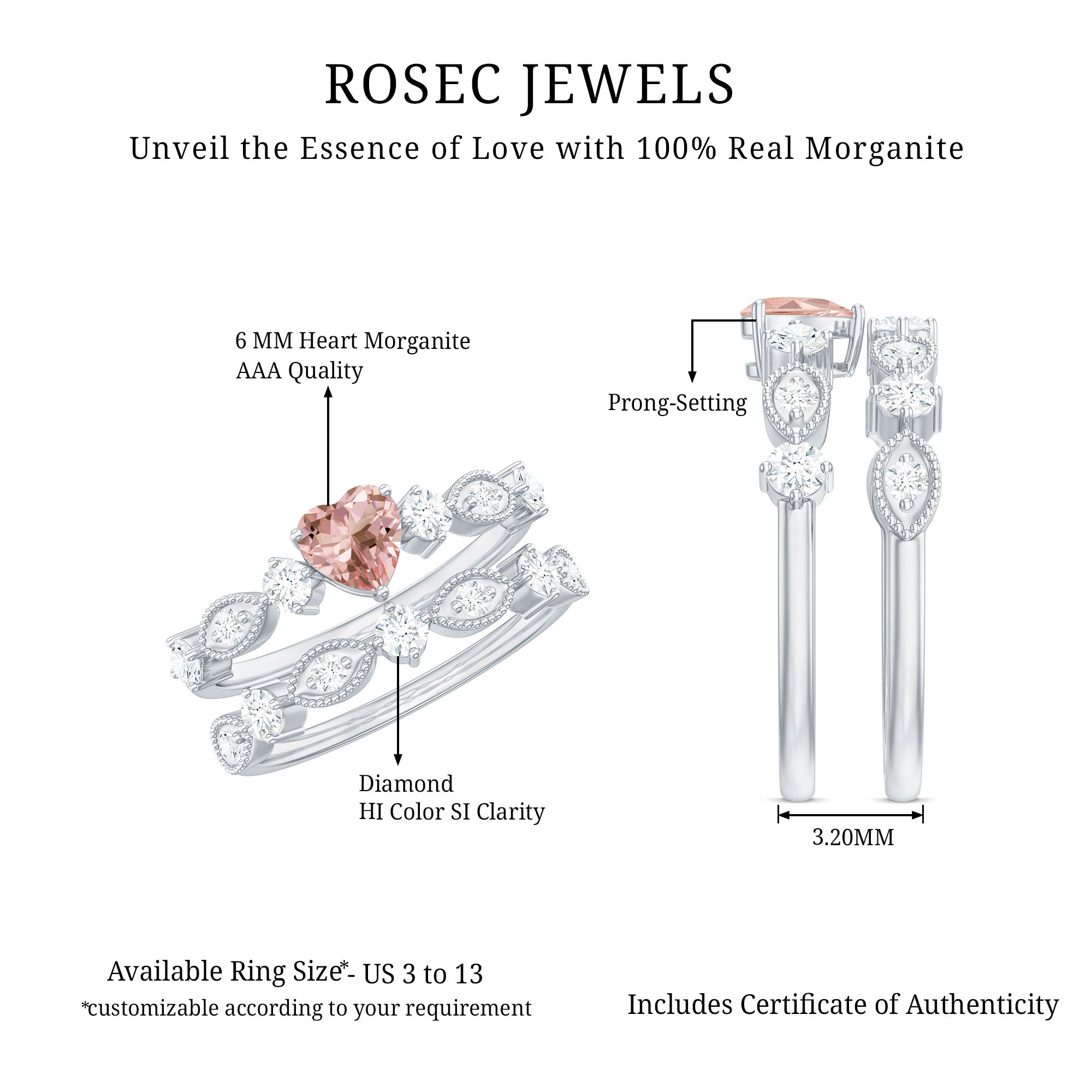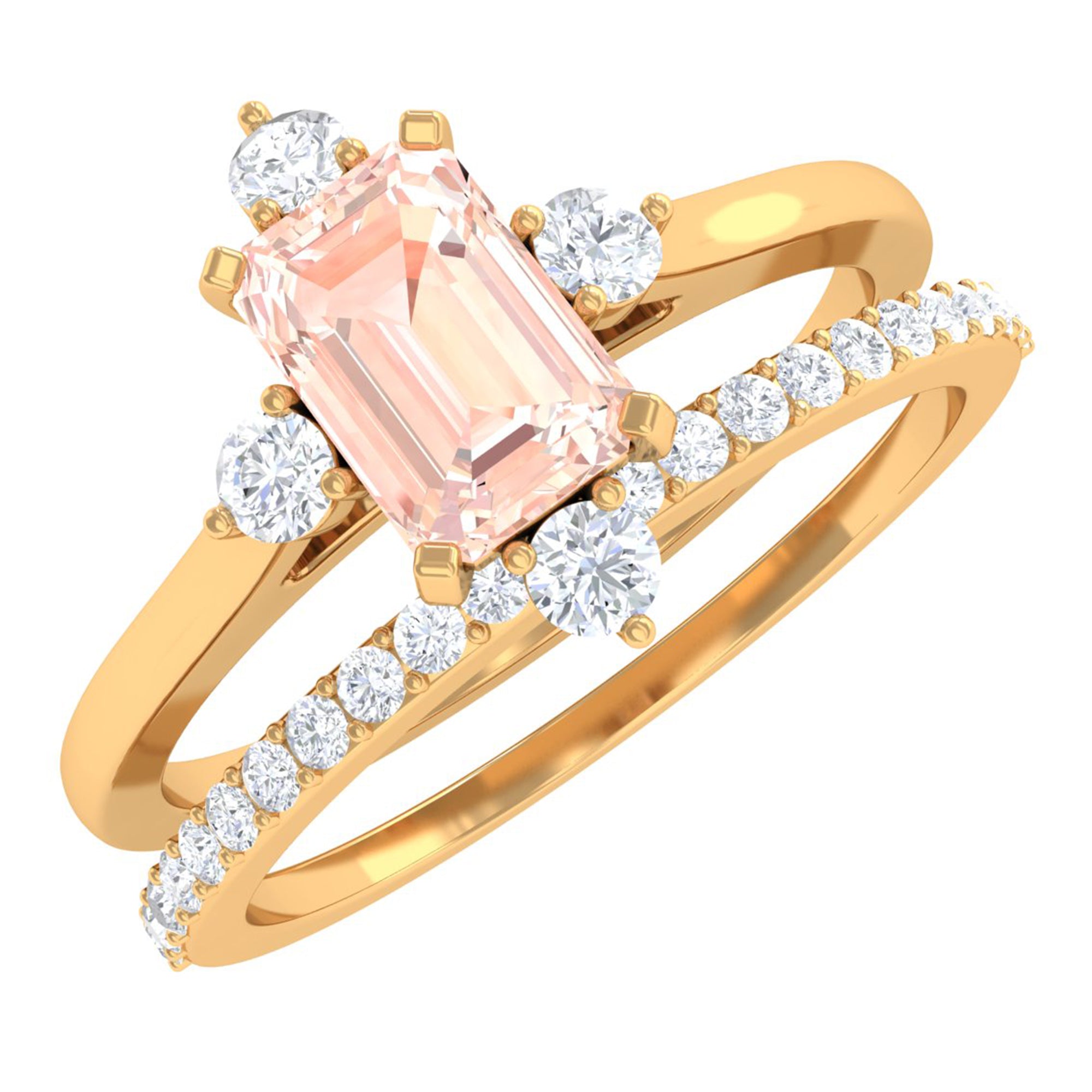 The delicate and romantic pink saturation of morganites enable our craftsmen to combine them with different colors of gold further helping us to curate fantastic morganite wedding band in white gold, yellow gold and rose gold. The great diversity in our engagement and wedding ring collection is achieved by different morganite shapes, settings and metal embellishments. Therefore, Rosec Jewels’ alluring collection of morganite wedding rings will best appeal to the women with an eye for delicate details and romantic pink hues.