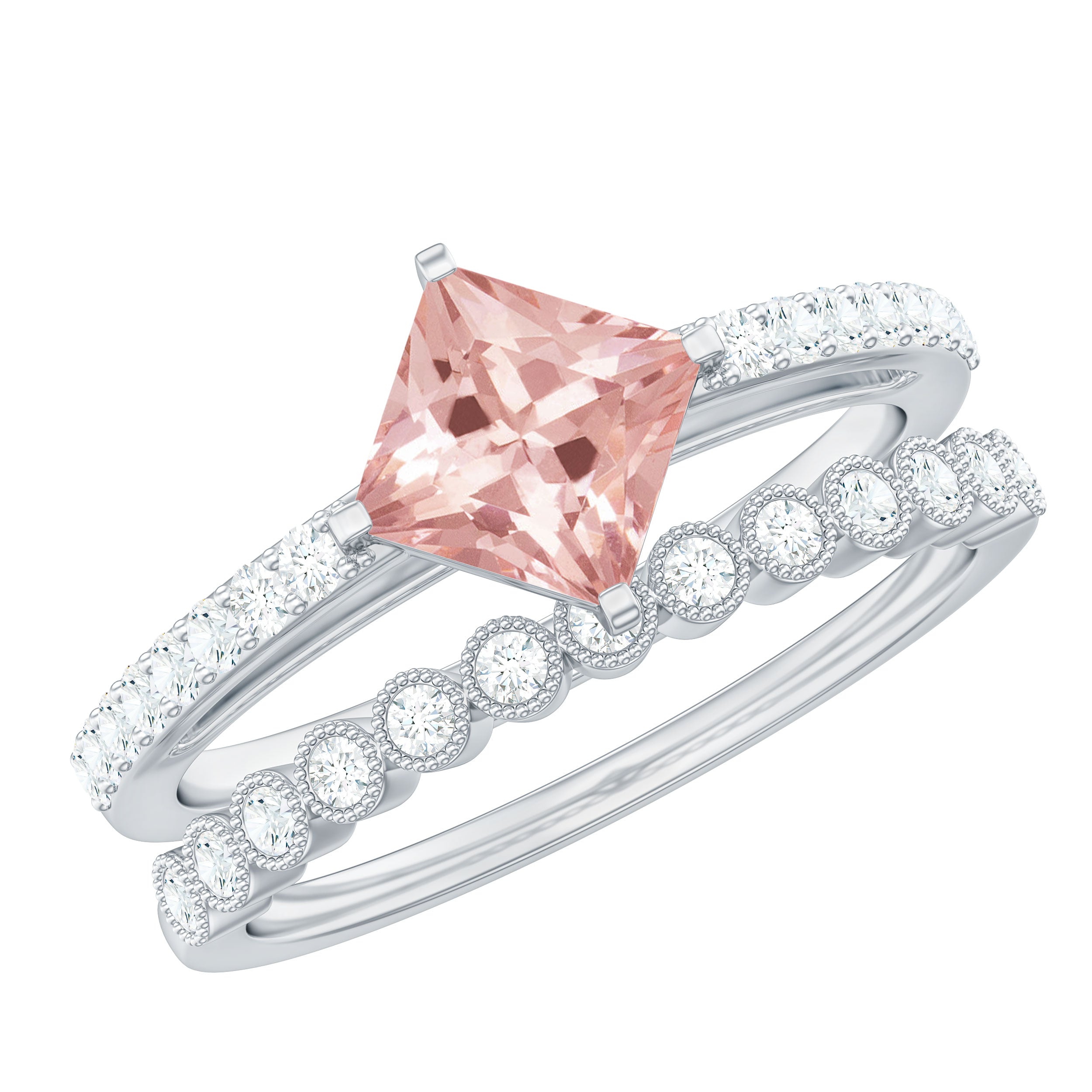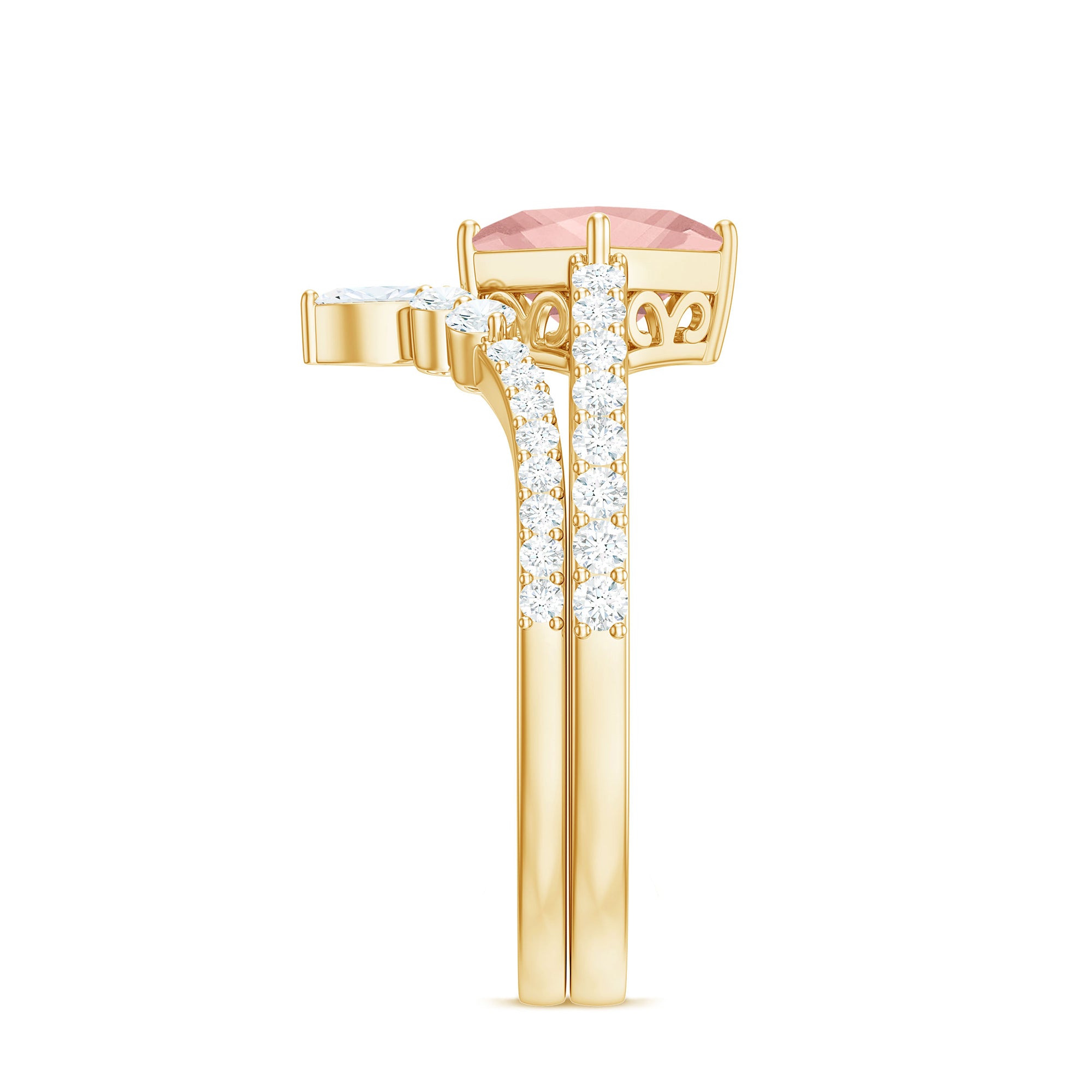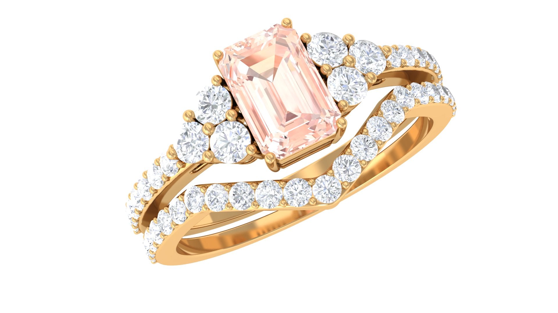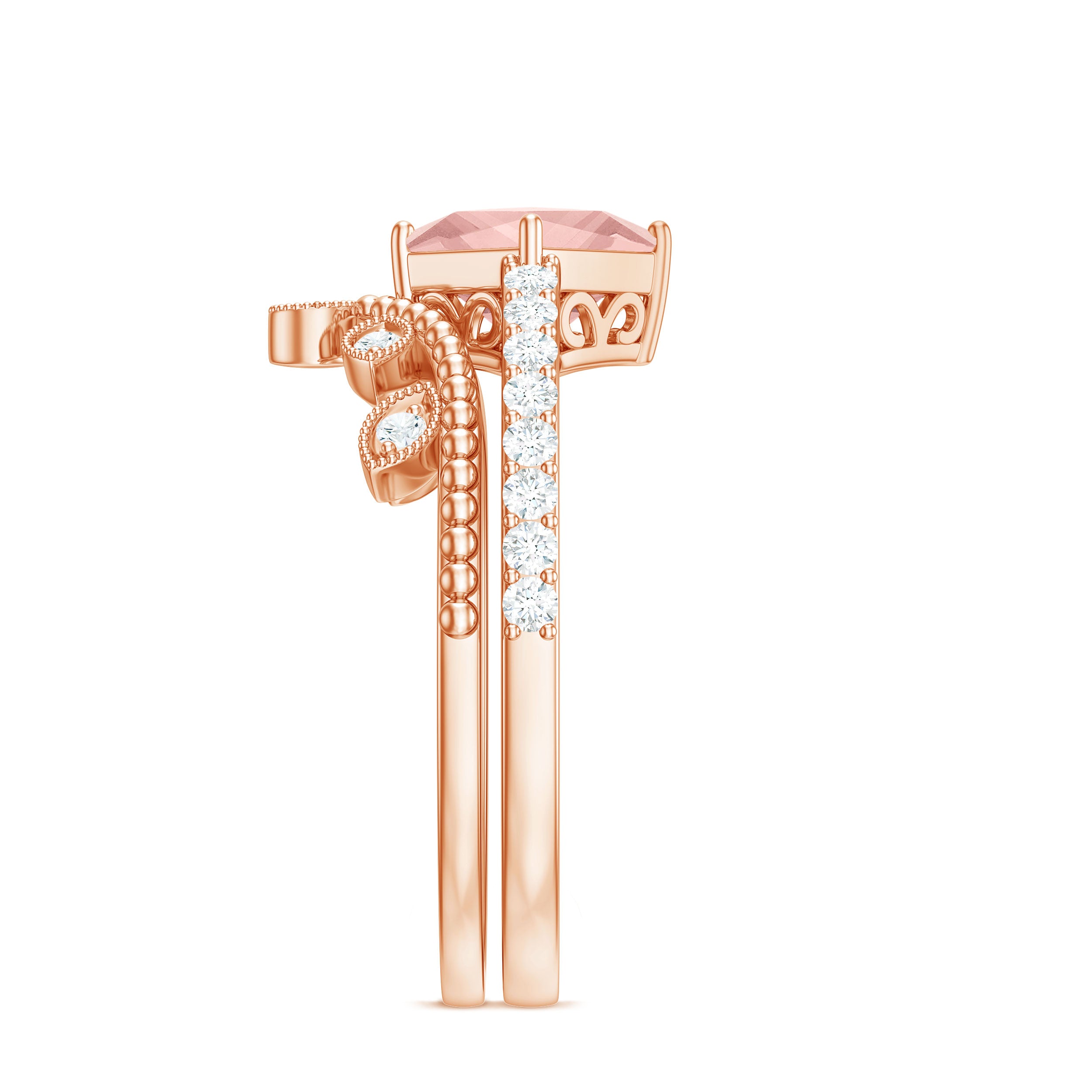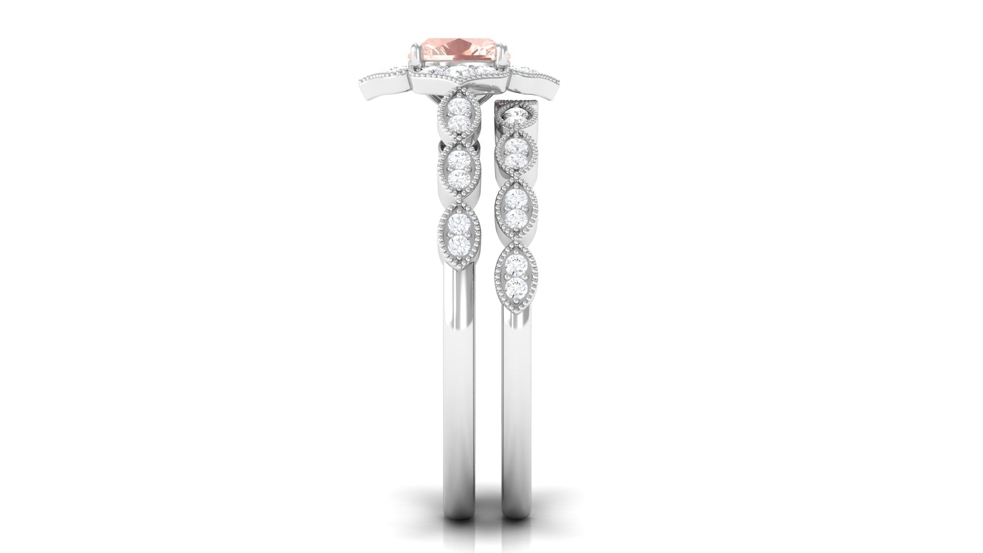 The delicate and romantic pink saturation of morganites enable our craftsmen to combine them with different colors of gold further helping us to curate fantastic morganite wedding band in white gold, yellow gold and rose gold. The great diversity in our engagement and wedding ring collection is achieved by different morganite shapes, settings and metal embellishments. Therefore, Rosec Jewels’ alluring collection of morganite wedding rings will best appeal to the women with an eye for delicate details and romantic pink hues.