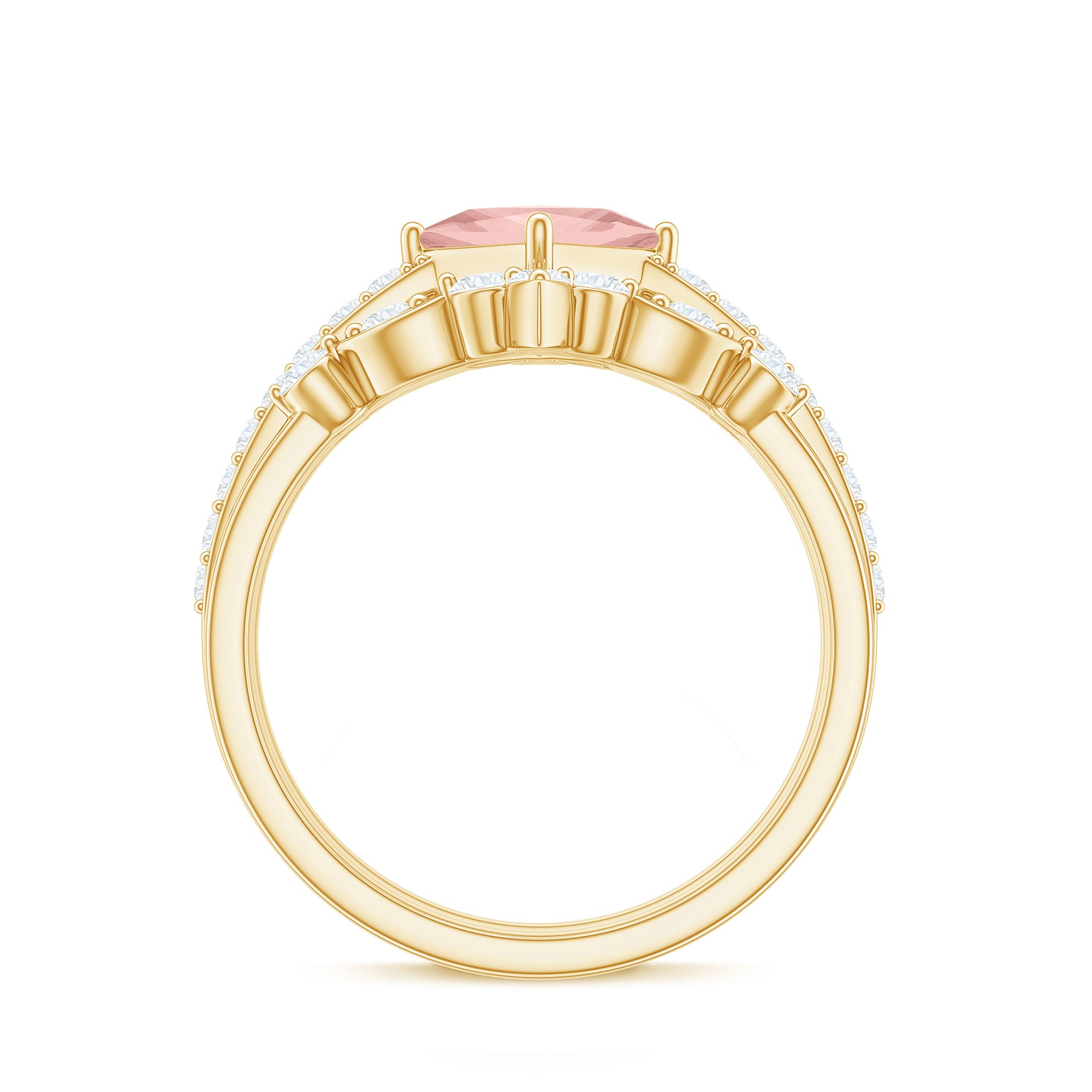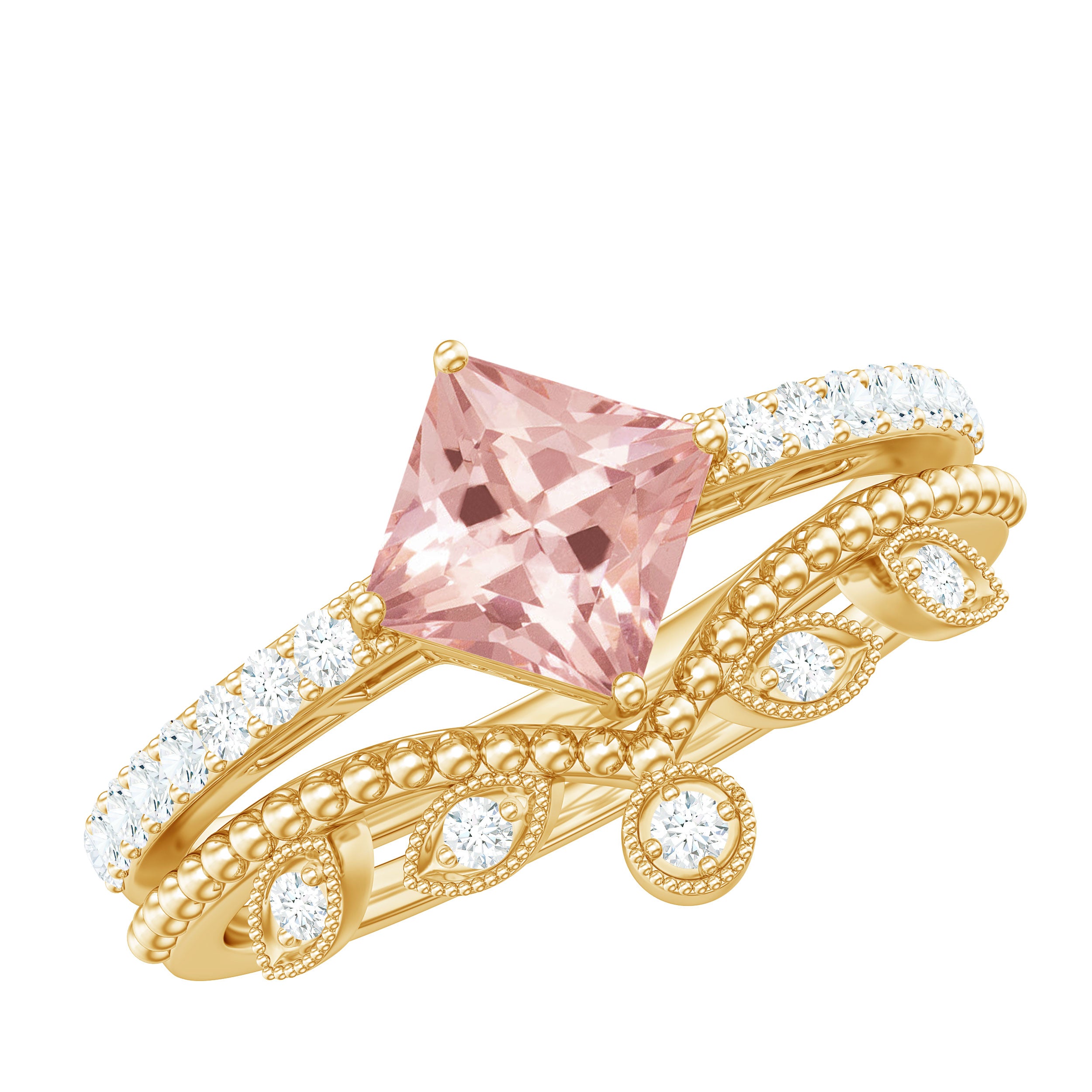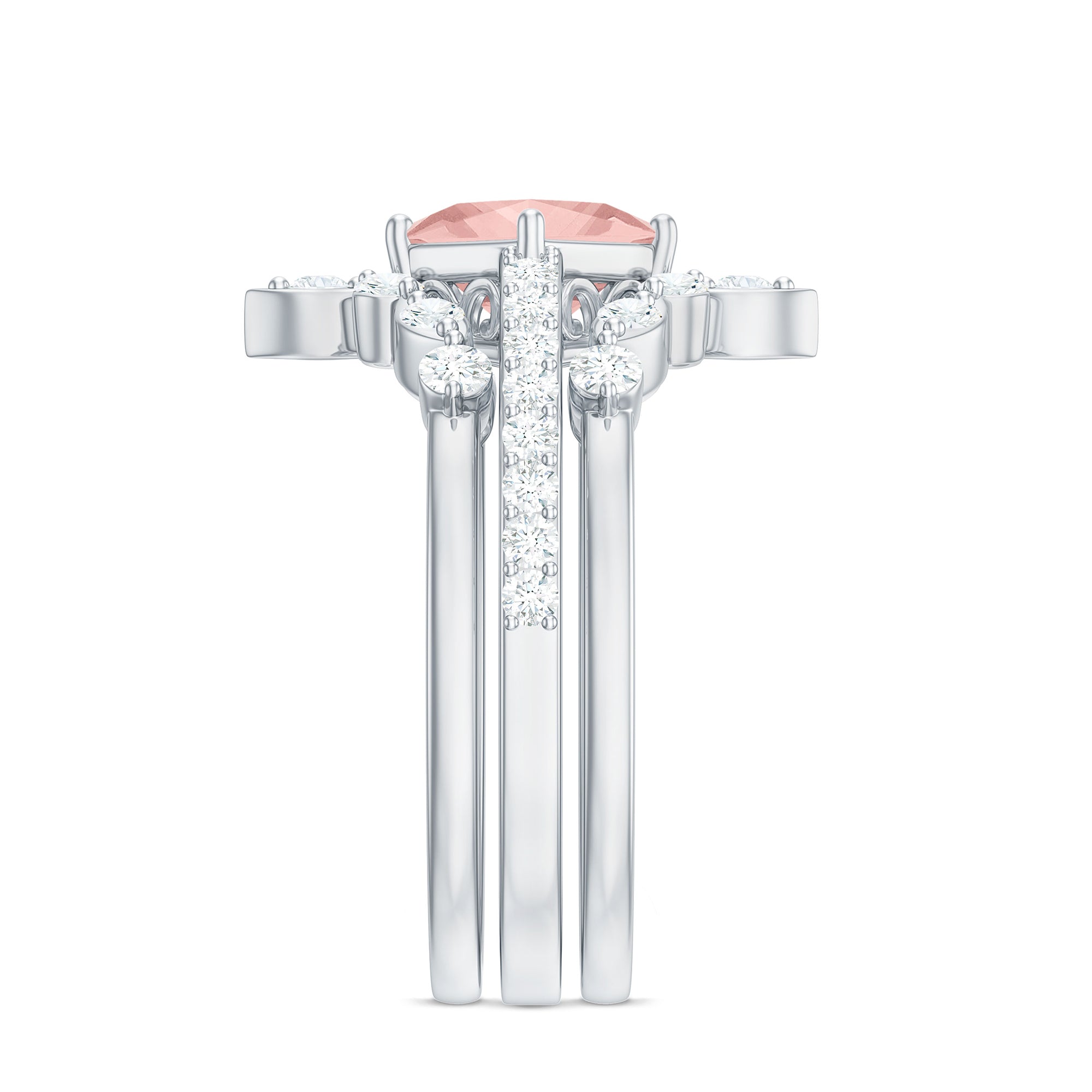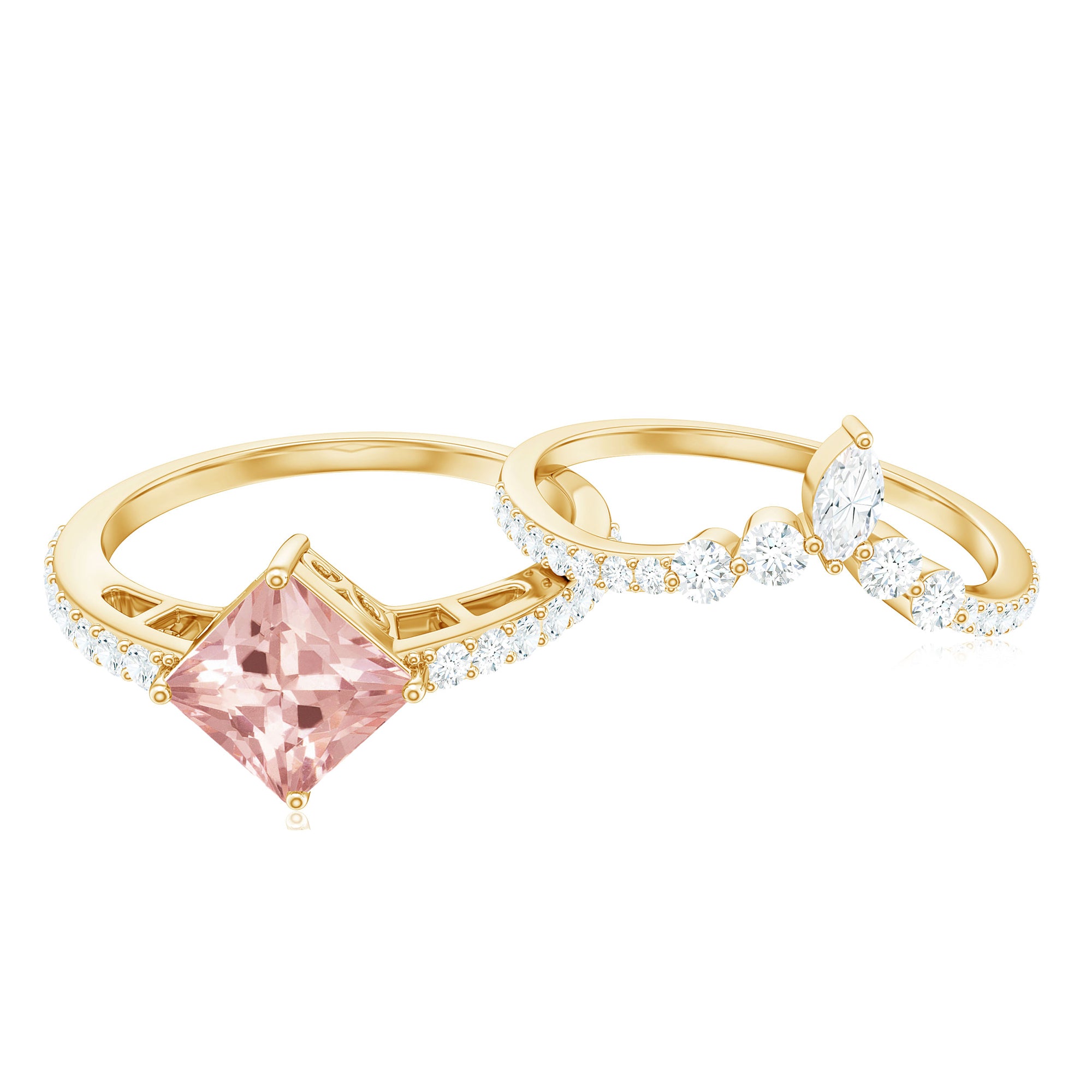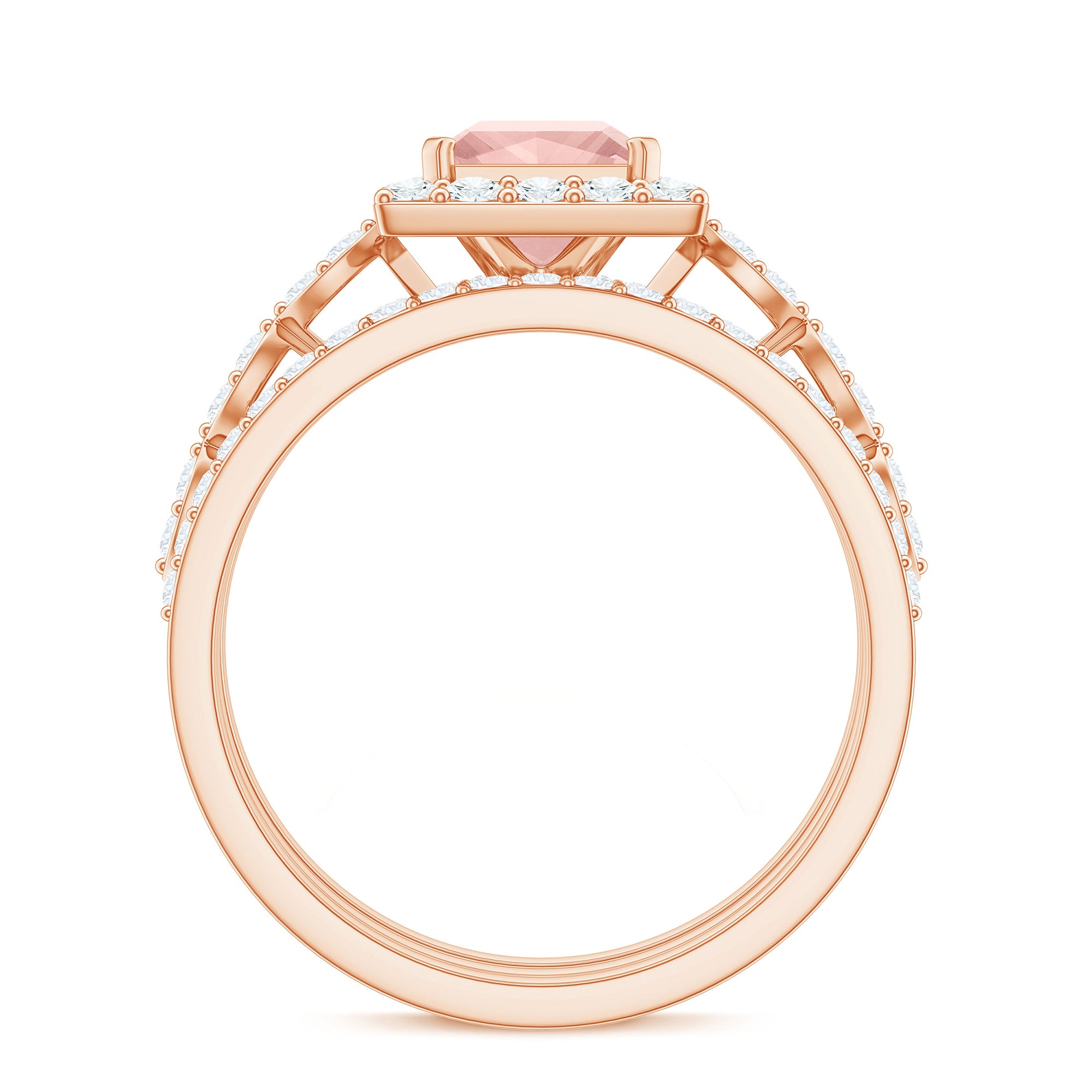 The delicate and romantic pink saturation of morganites enable our craftsmen to combine them with different colors of gold further helping us to curate fantastic morganite wedding band in white gold, yellow gold and rose gold. The great diversity in our engagement and wedding ring collection is achieved by different morganite shapes, settings and metal embellishments. Therefore, Rosec Jewels’ alluring collection of morganite wedding rings will best appeal to the women with an eye for delicate details and romantic pink hues.